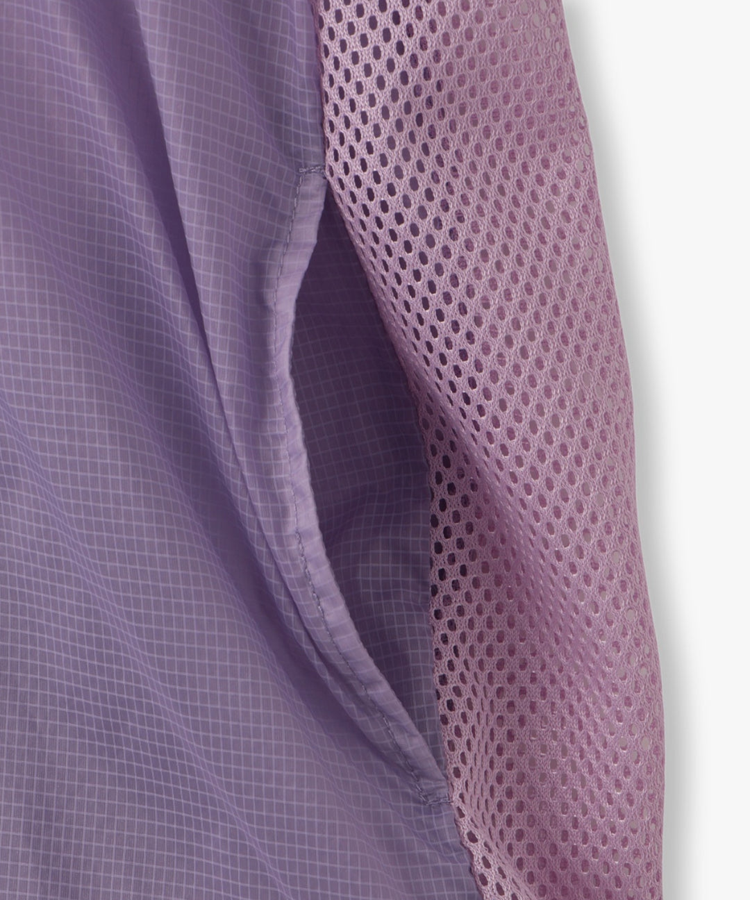 柔らかくなめらかなシアーナイロン素材。スポーティなのにオンナらしさを感じるのは柔らかく輪郭をぼかす、フロステッドシアーだから。素肌に触れても気持ちよく、風をふわっと通すエアリーな軽さ。背ヨークと袖下のメッシュで、着るだけで表情が生まれます。