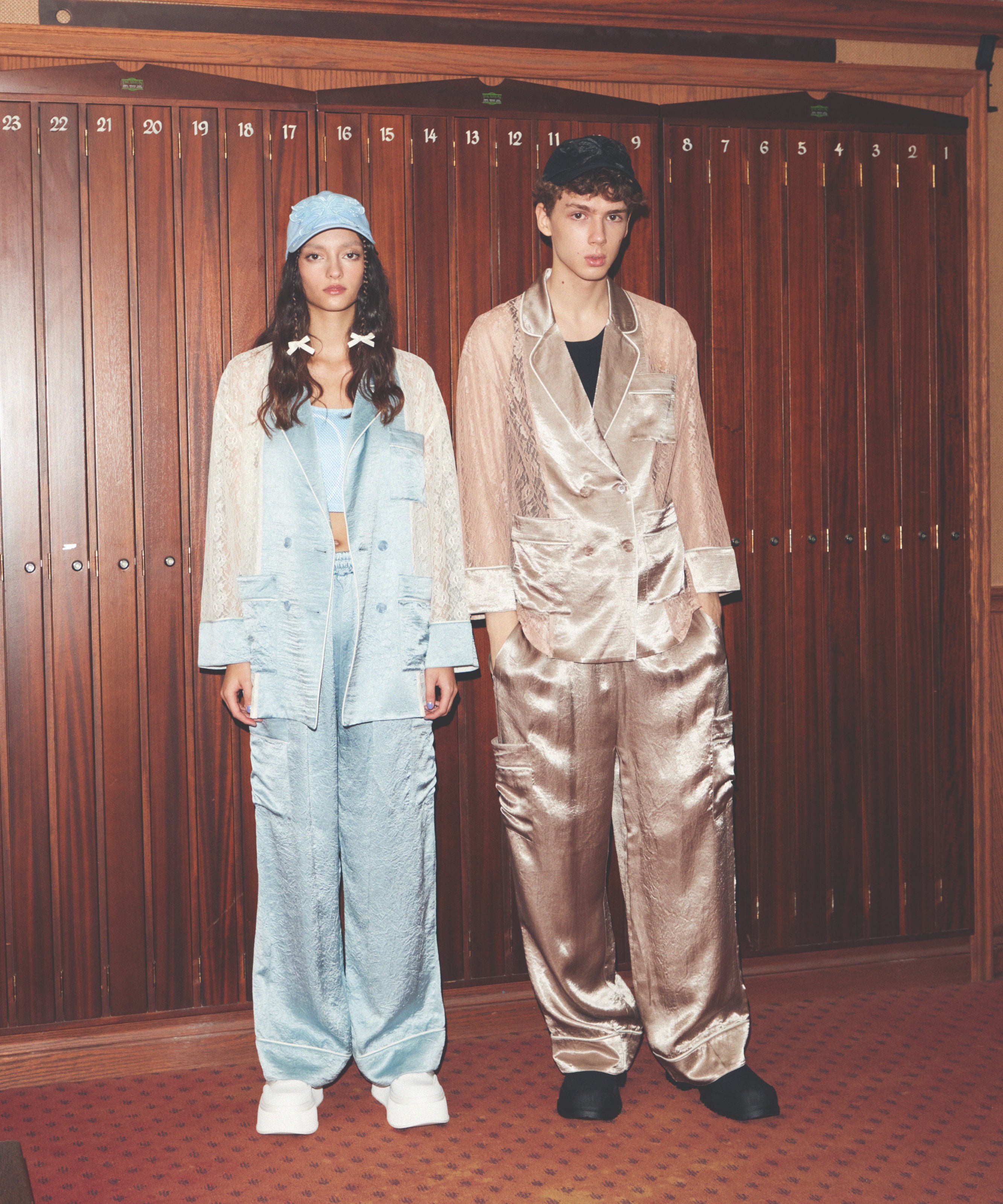 ヴィンテージライクなベースボールシャツからインスパイアされた直線的なフォルムとダブルジップ。そこにドッキングされたのは、意外性のあるフェミニンなレース。ベースはあくまで“スポーツカジュアル”。そこにほんの少しだけレースの透け感を効かせた、甘さを“後乗せ”する新しい感覚。