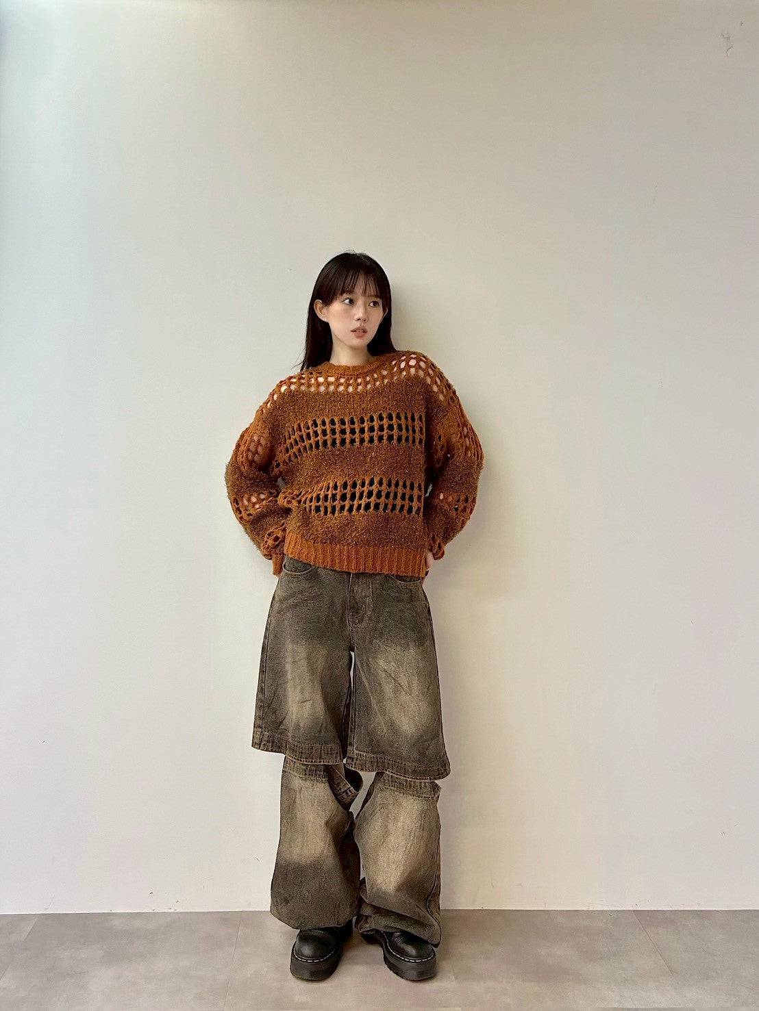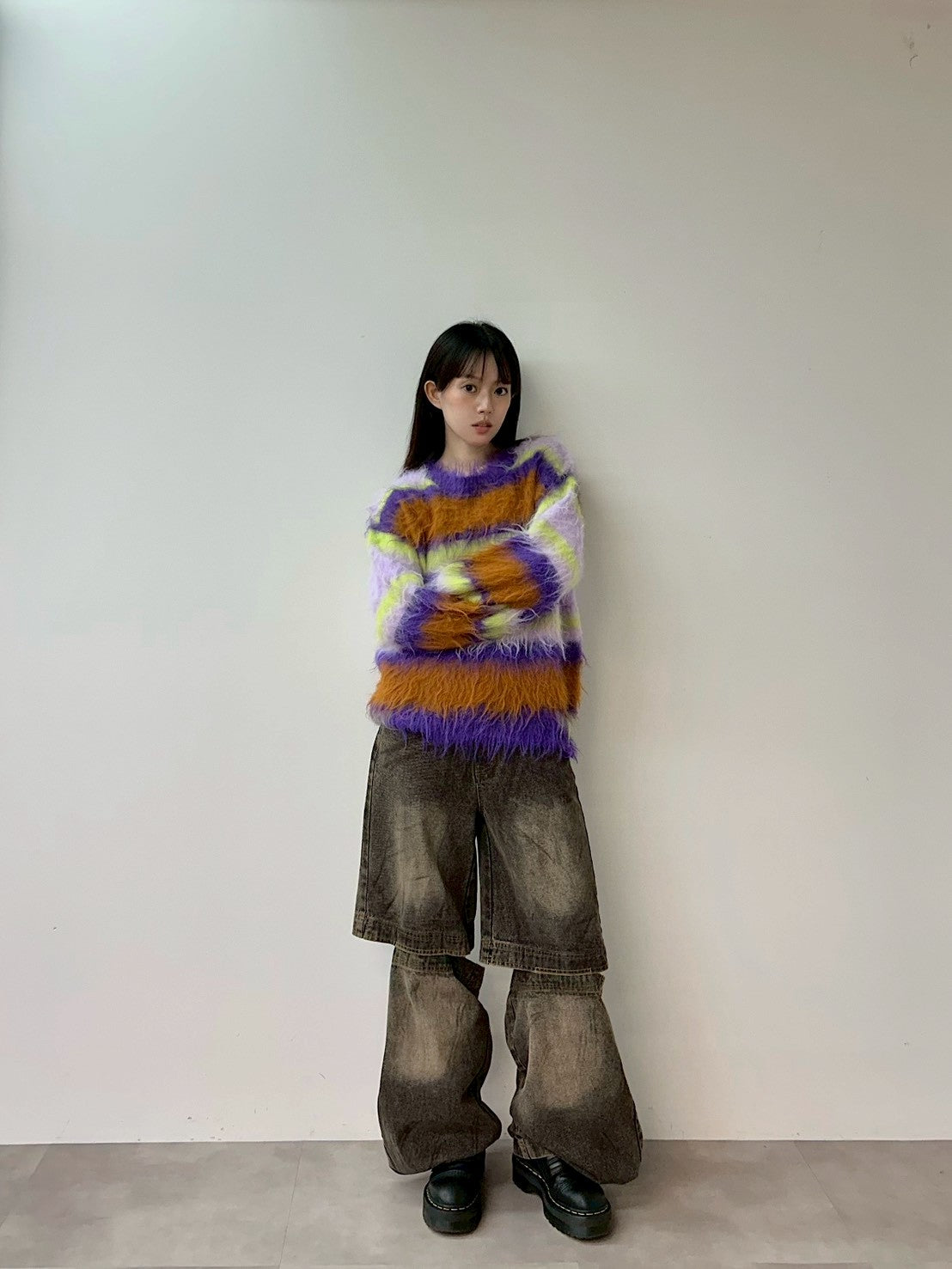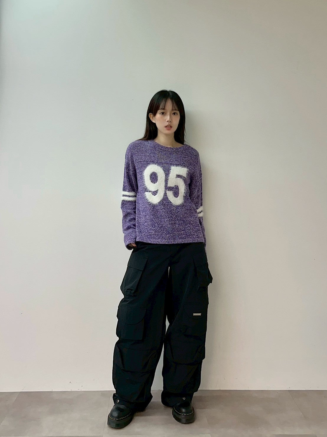 メランジ糸ならではの奥行きある色合いが魅力のニットトップス。フロントの大胆なナンバリングと袖のライン部分にはシャギー糸を使用し、ふんわりとした質感がシーズンムードを高めてくれます。スポーティなモチーフを取り入れながらも、メランジのニュアンスカラーによって大人っぽく着られるバランスに仕上げた一枚。デニムやスカートとの相性も良く、デイリースタイリングに取り入れやすいアイテムです。