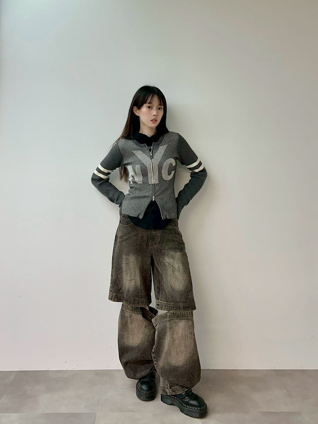 フロントいっぱいに「NYC」ロゴを大胆に配した、存在感抜群のジップカーディガン。アーム部分のラインデザインがスポーティなムードを引き立てつつ、ボディラインに寄り添うコンパクトなシルエットで女性らしいバランスに仕上げています。さらに、表糸と裏糸が織りなすさりげない配色が、単色では出せない奥ゆきのあるムードに。