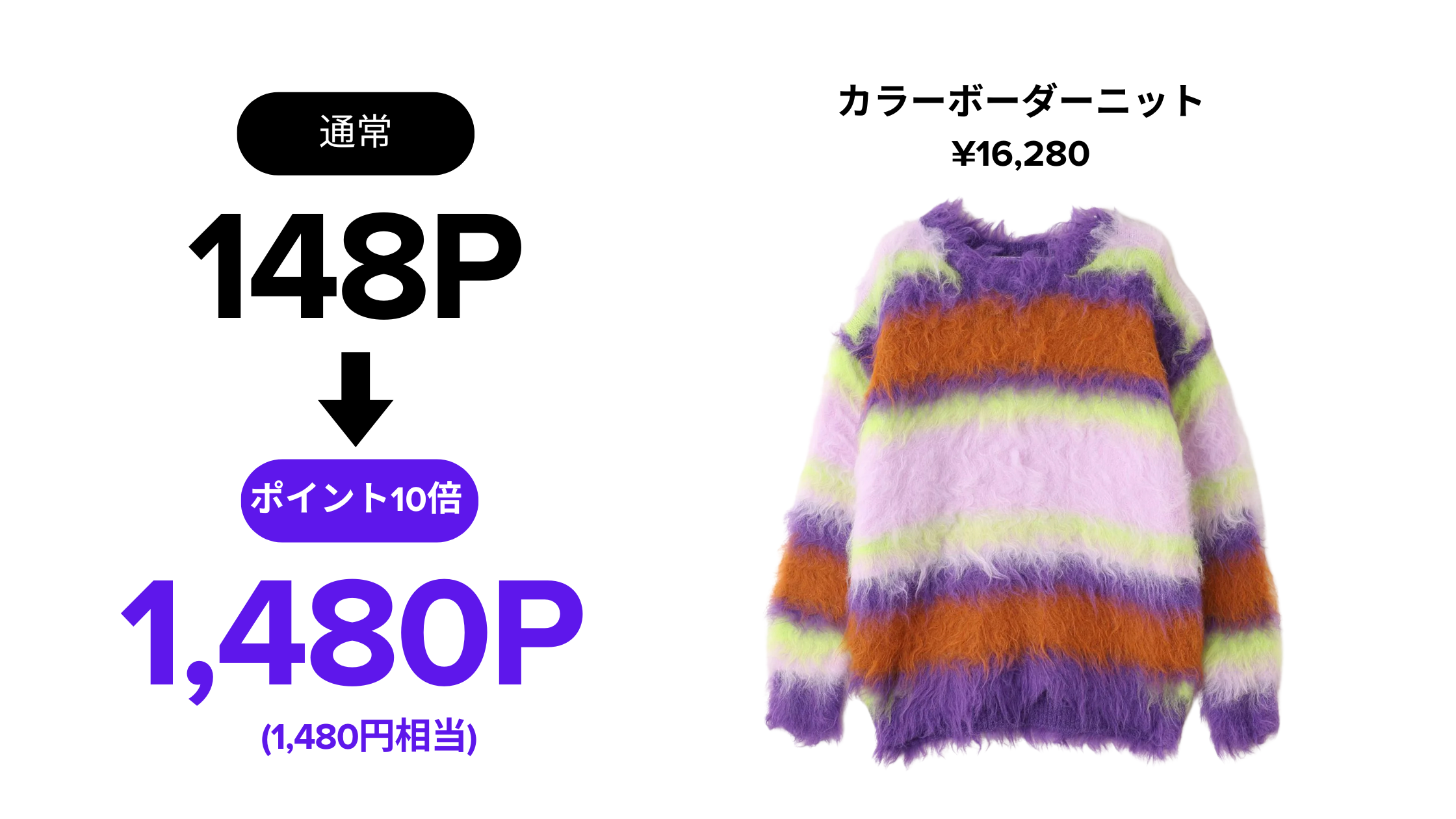 期間中、対象のニットをご購入いただくと、ポイント倍率がなんと「10倍」に!