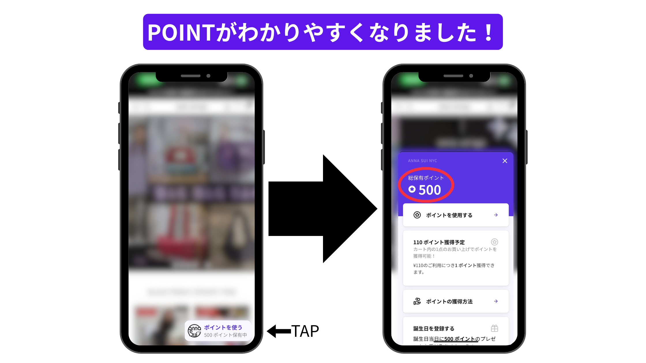 お客様が保有しているポイントを確認する場合は、下記の画像手順からご確認いただけます。