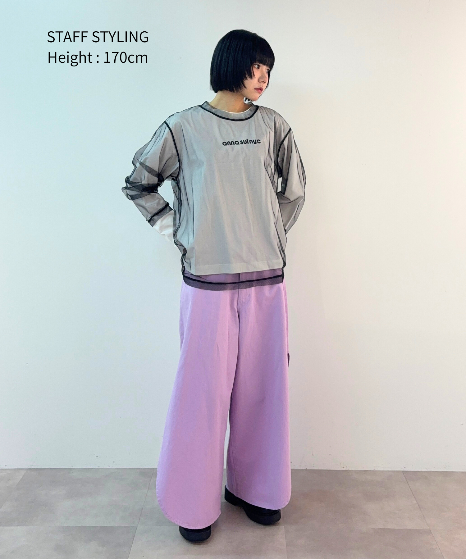 メッシュトップスとロゴTシャツがセットになった、着回し力抜群のレイヤードロングTシャツ。 ほどよい透け感が、重たくなりがちな春のレイヤードを軽やかな印象にアップデートしてくれます。