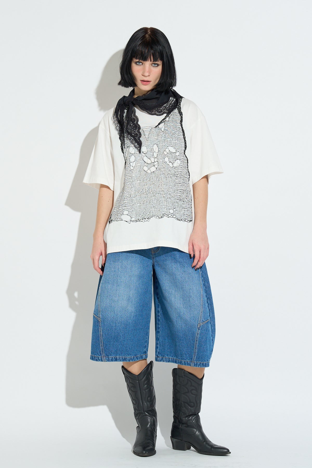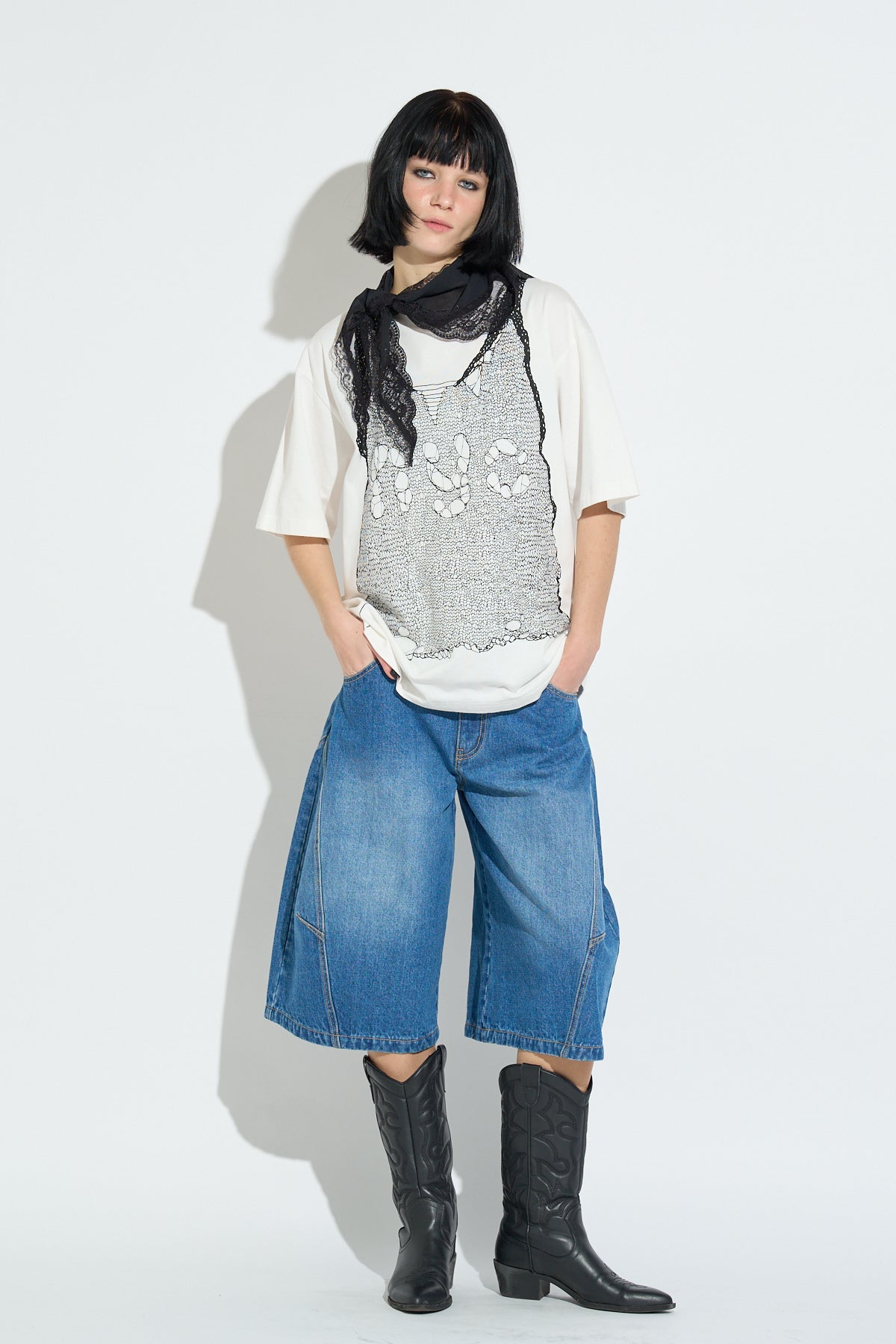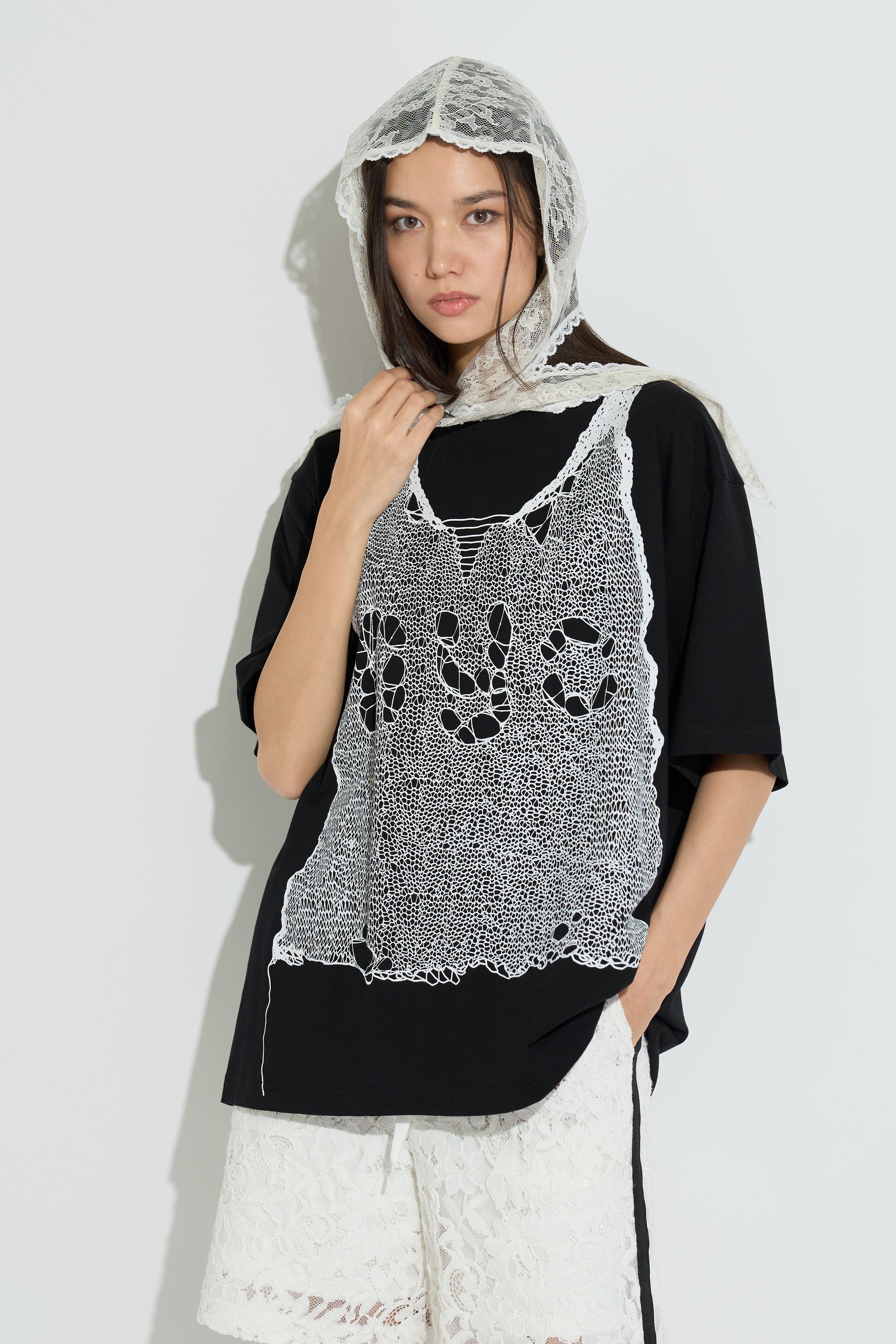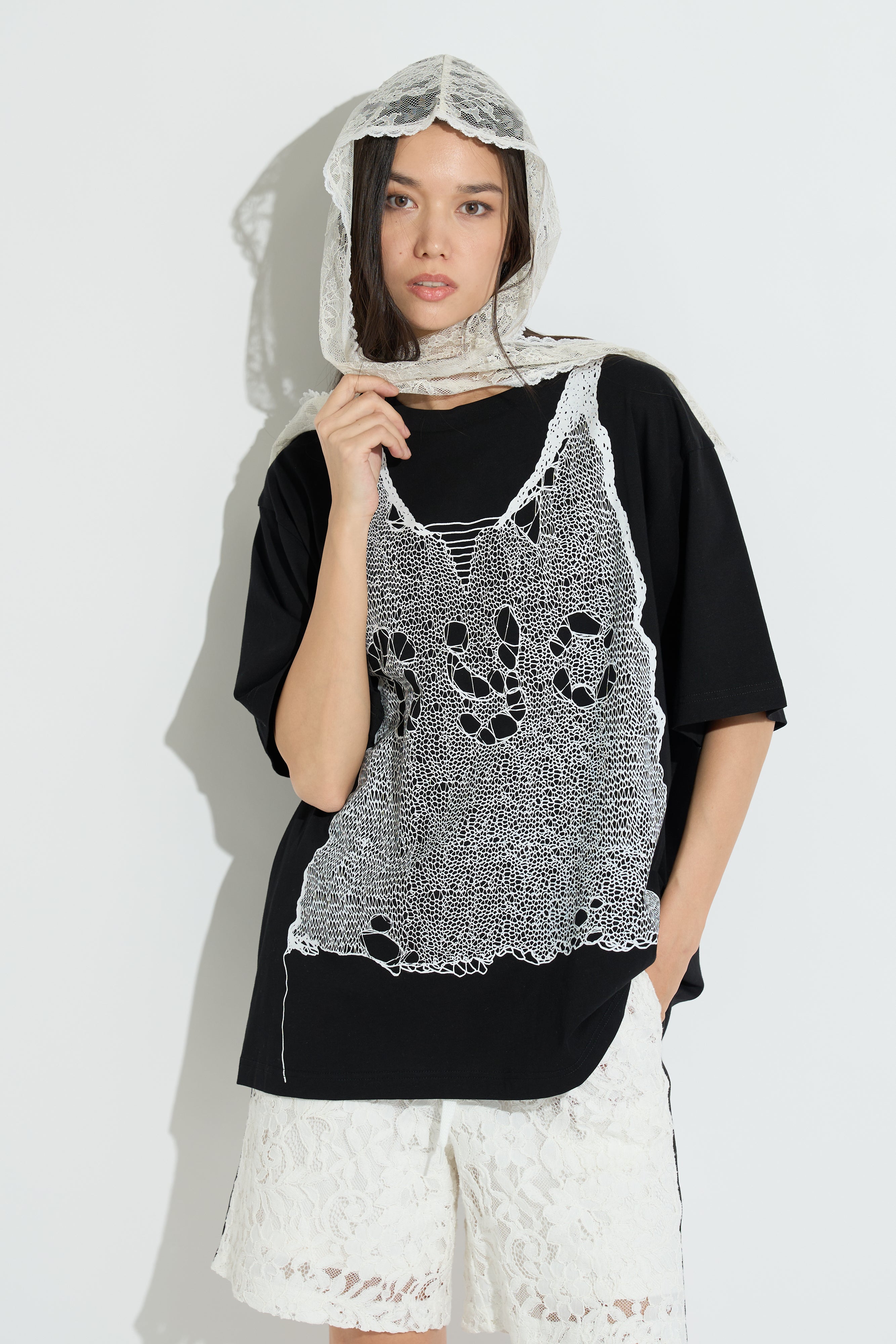 メッシュトップスとインナーのロングTシャツが別々に着用可能なマルチウェイアイテム。
