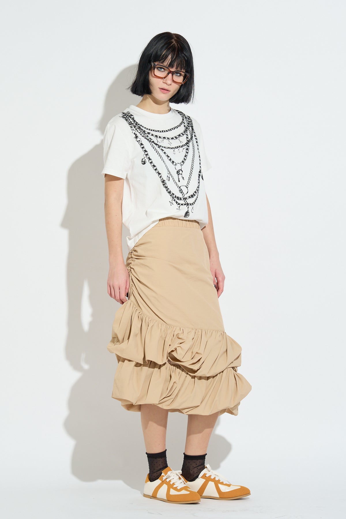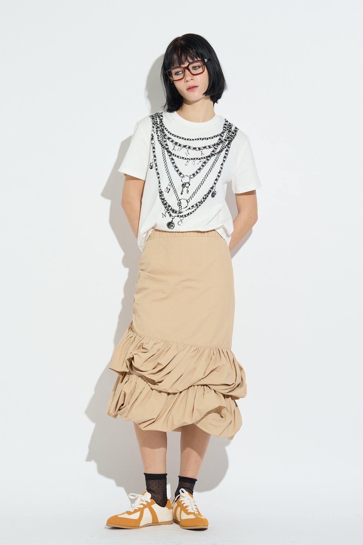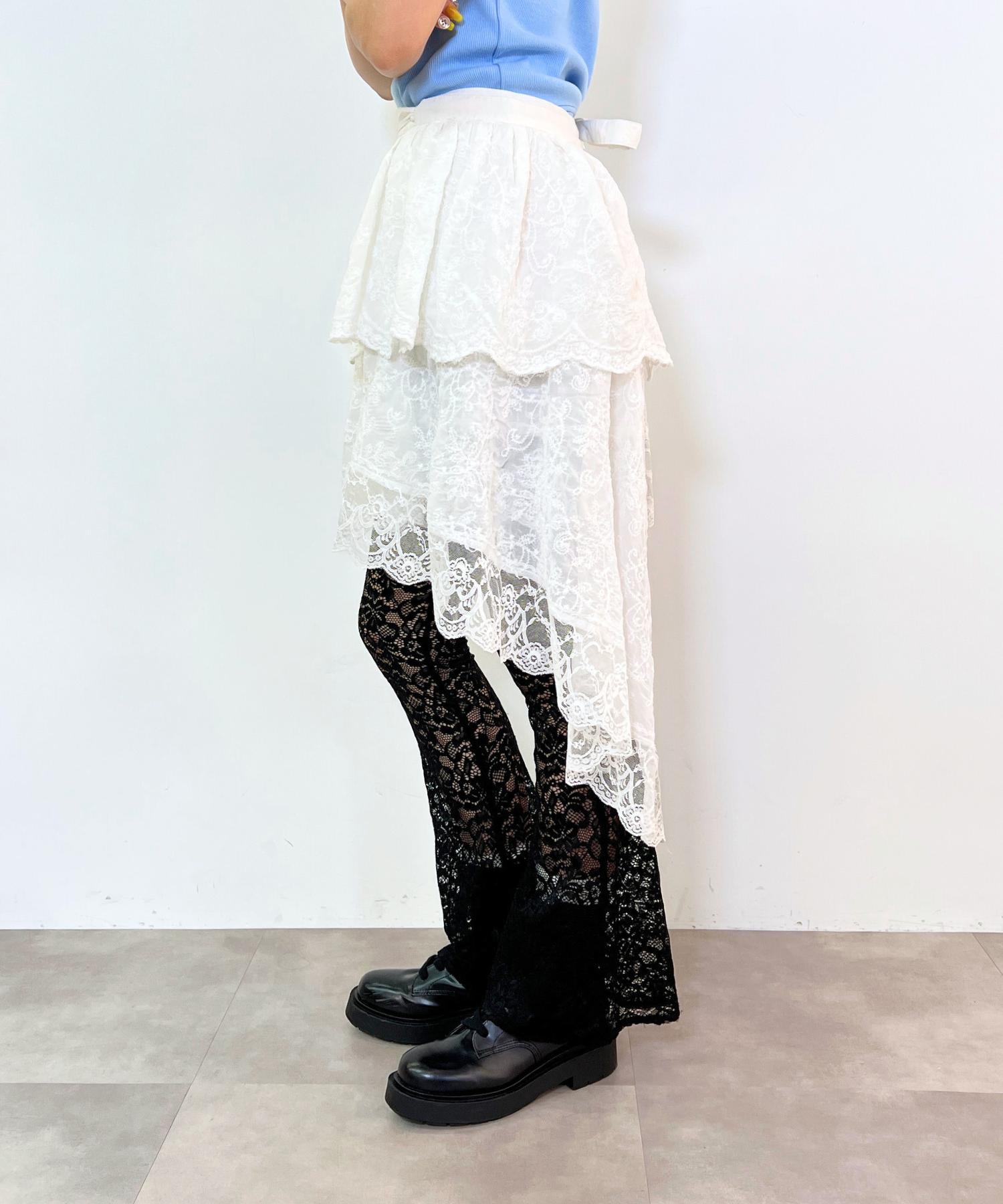 スカートとしての着用だけでなく、様々な方法で着用可能な変幻自在なレーススカート。