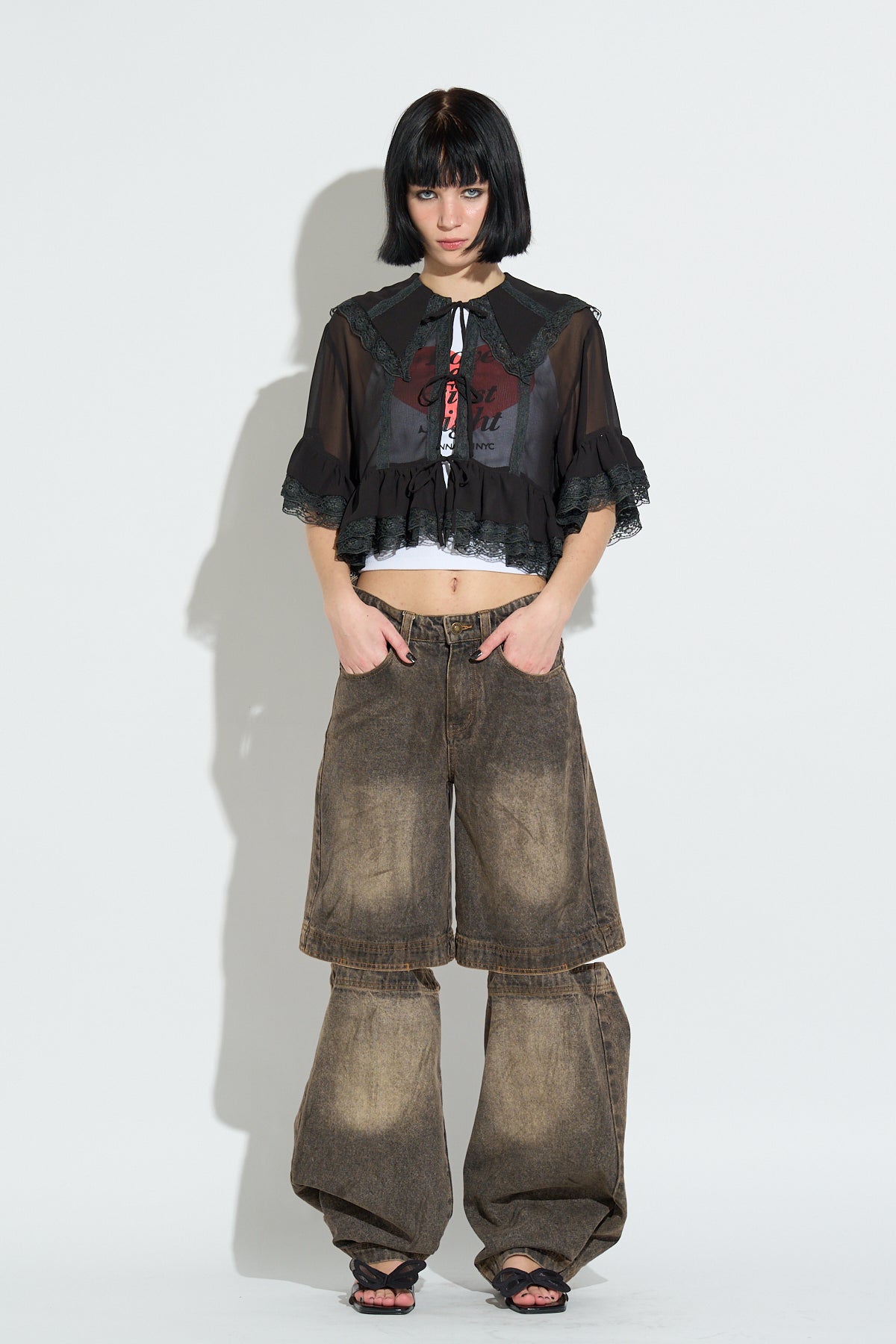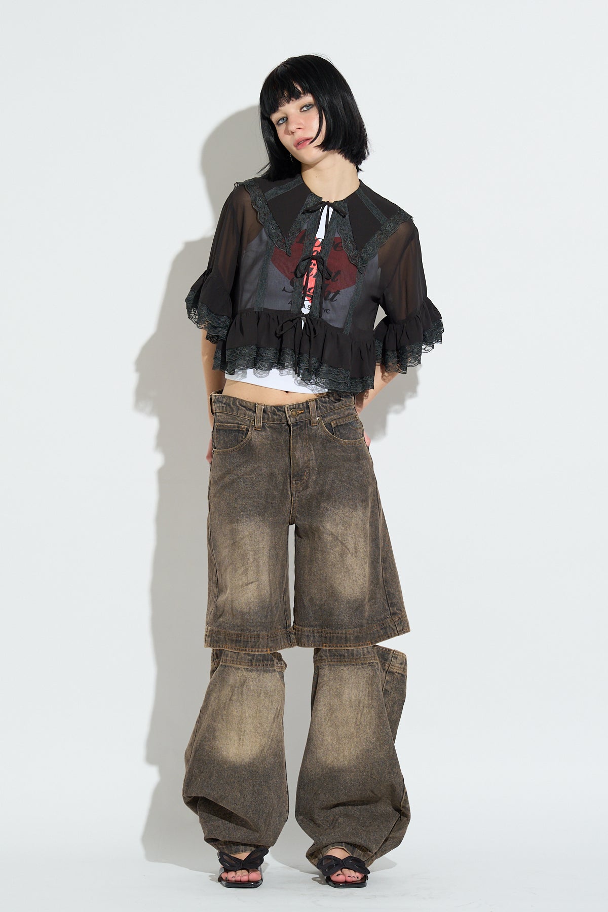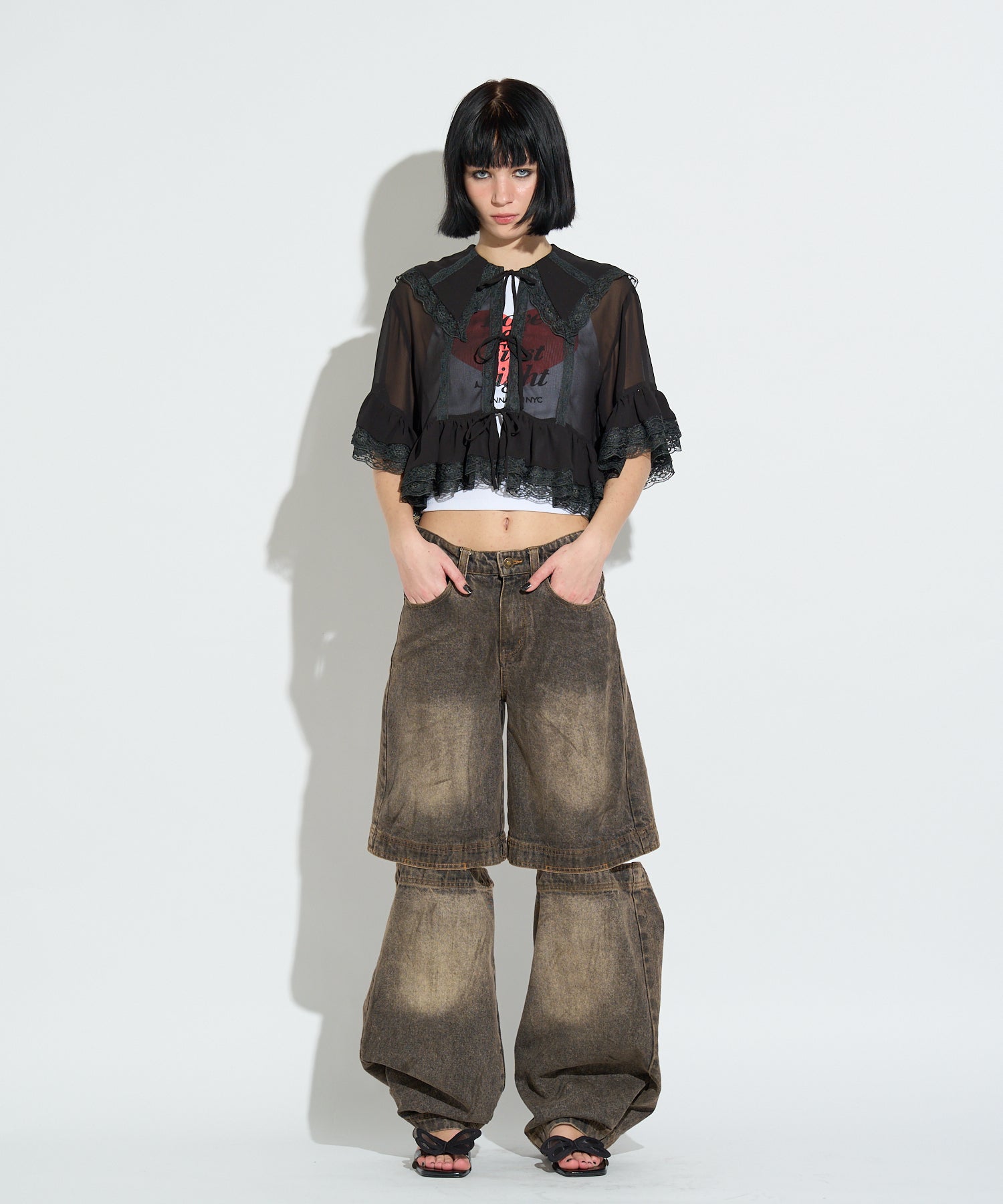 スカートとしての着用だけでなく、様々な方法で着用可能な変幻自在なレーススカート。