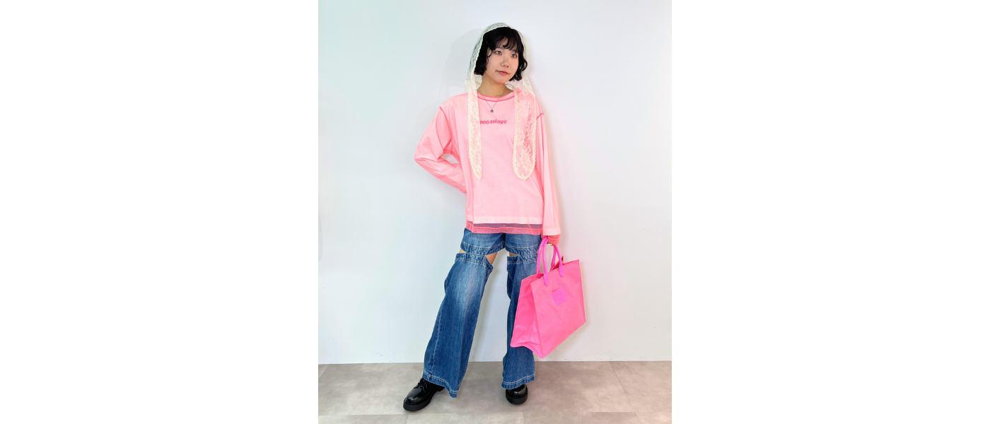 メッシュレイヤードロングTシャツ定価 ¥12,100PURPLE PINK BLACK
