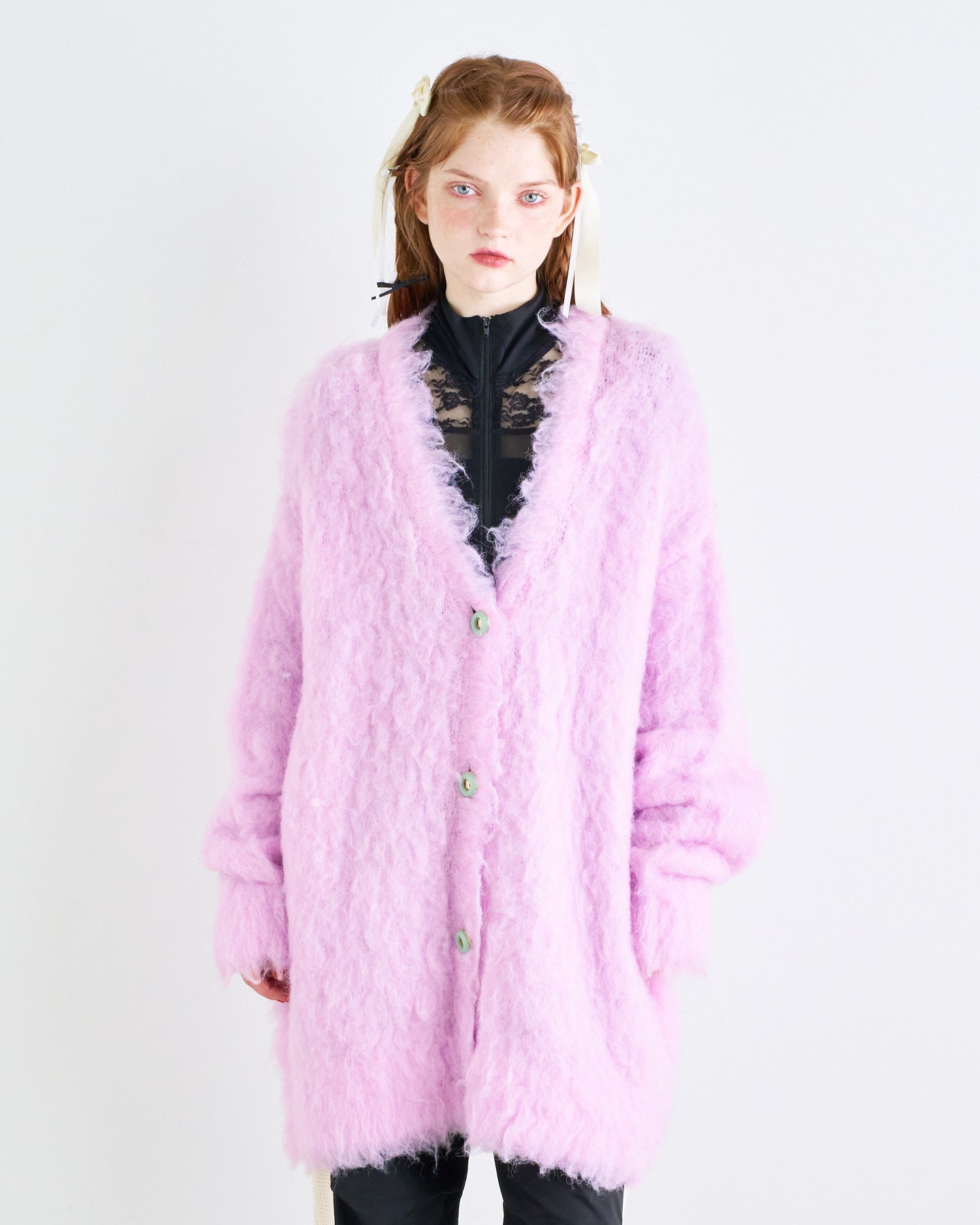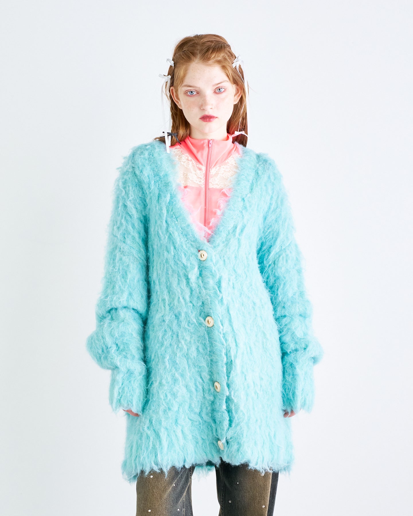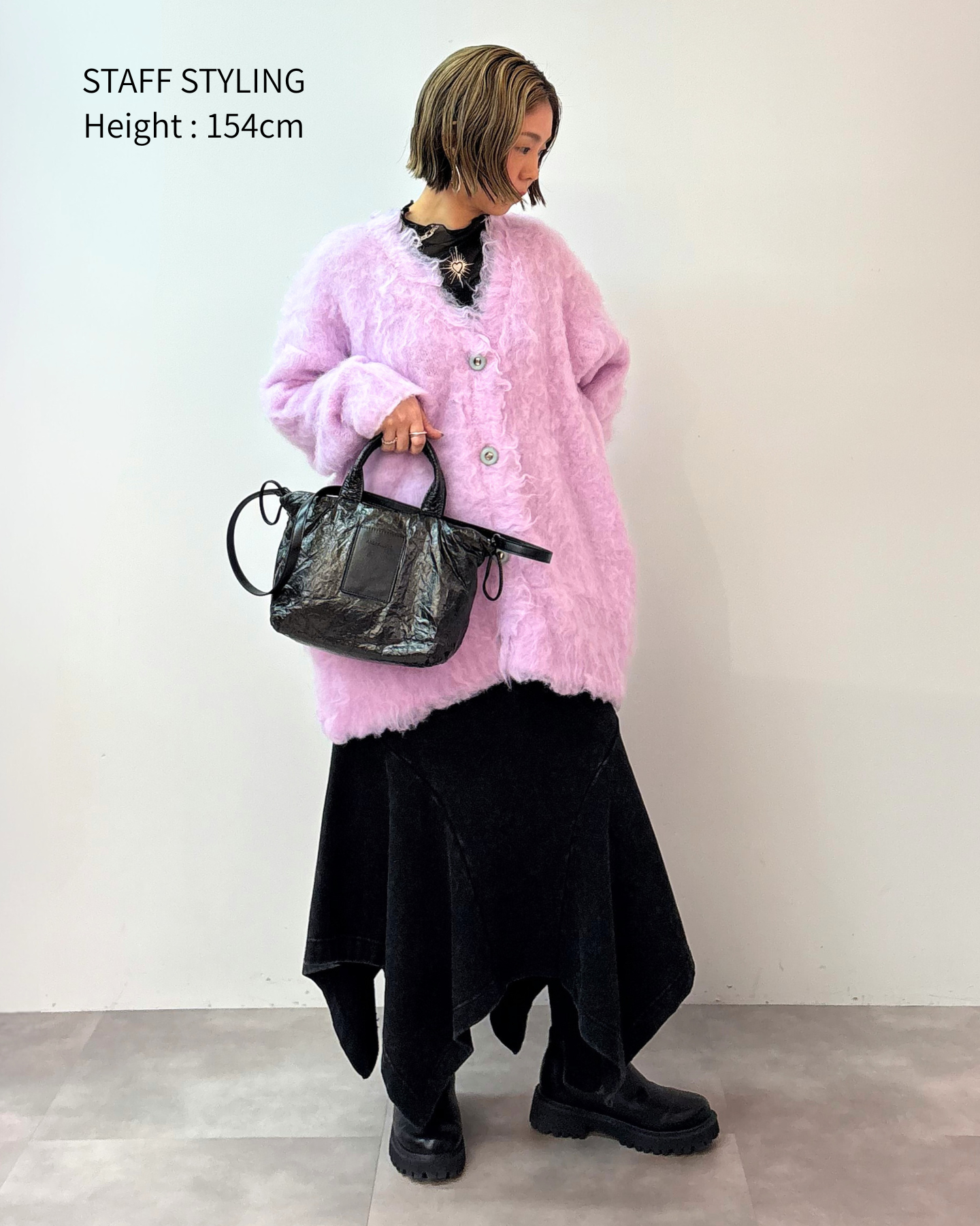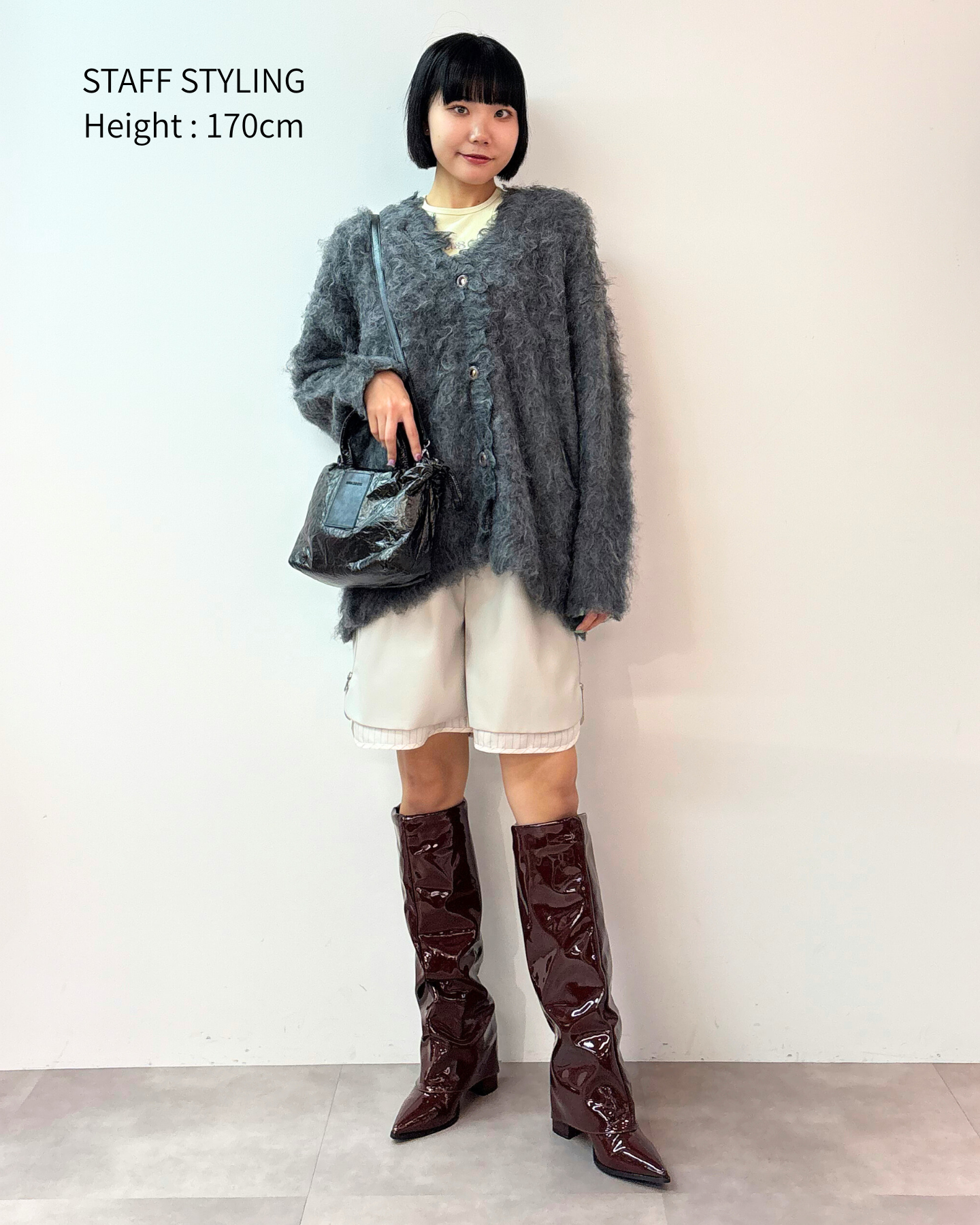 カーディガンのファスナーはダブルジップで、スタイリングに合わせて開けたり閉めたり、自由自在に開きのバランスを調節していただけます。