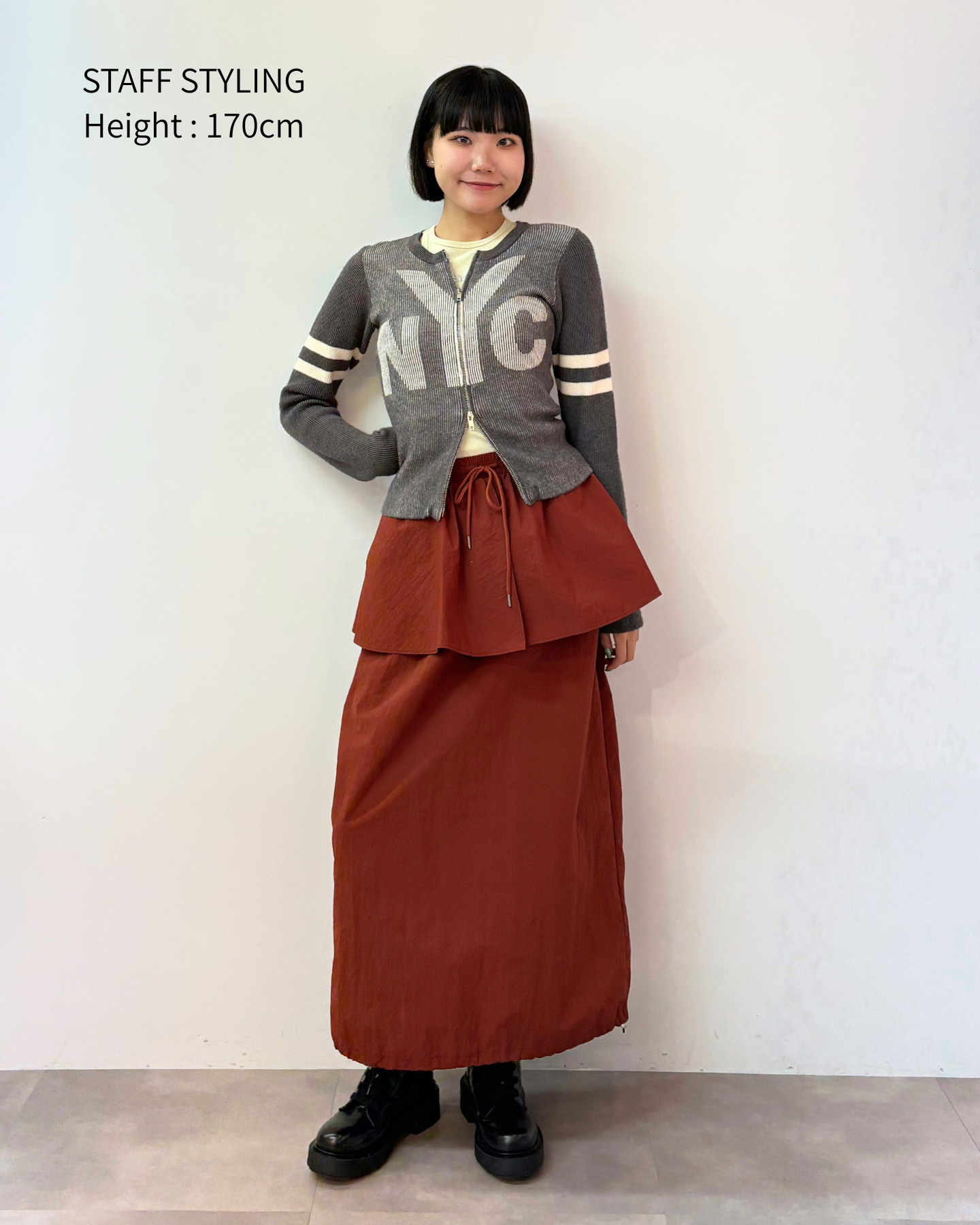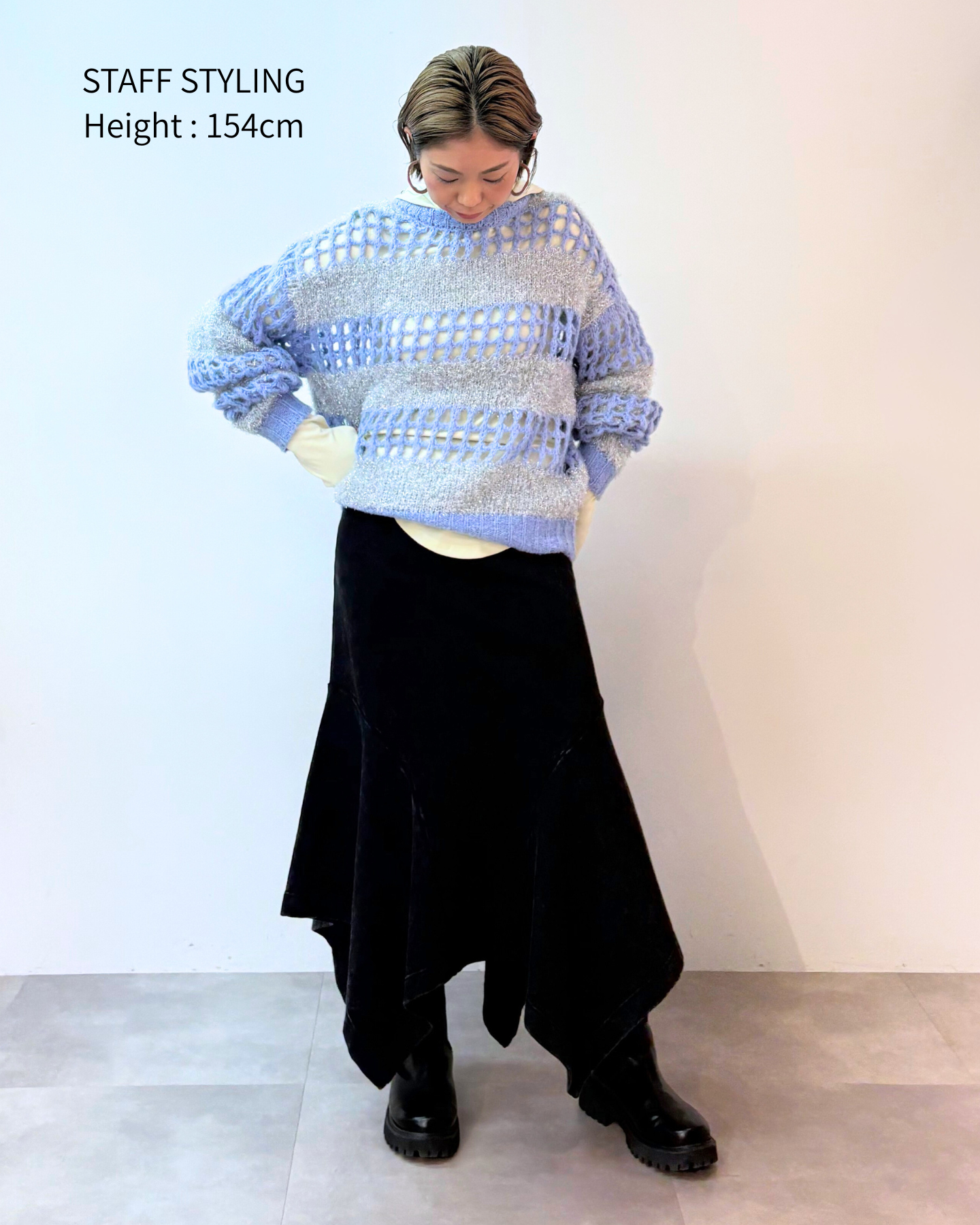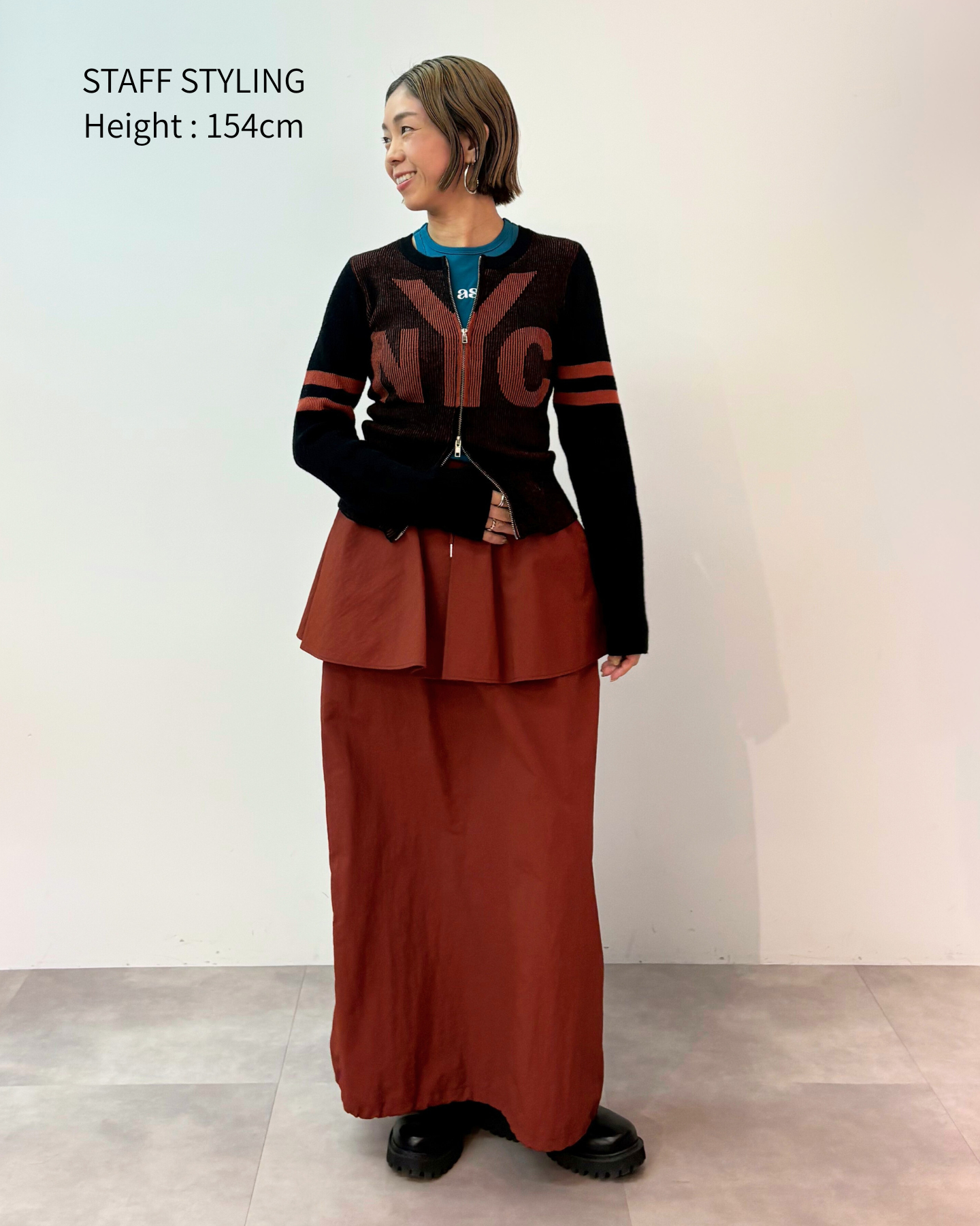 薄く軽い素材でインで着ても良し、裾のランウンド形状を活かしてアウトで着るのも可愛い優秀なアイテムです。