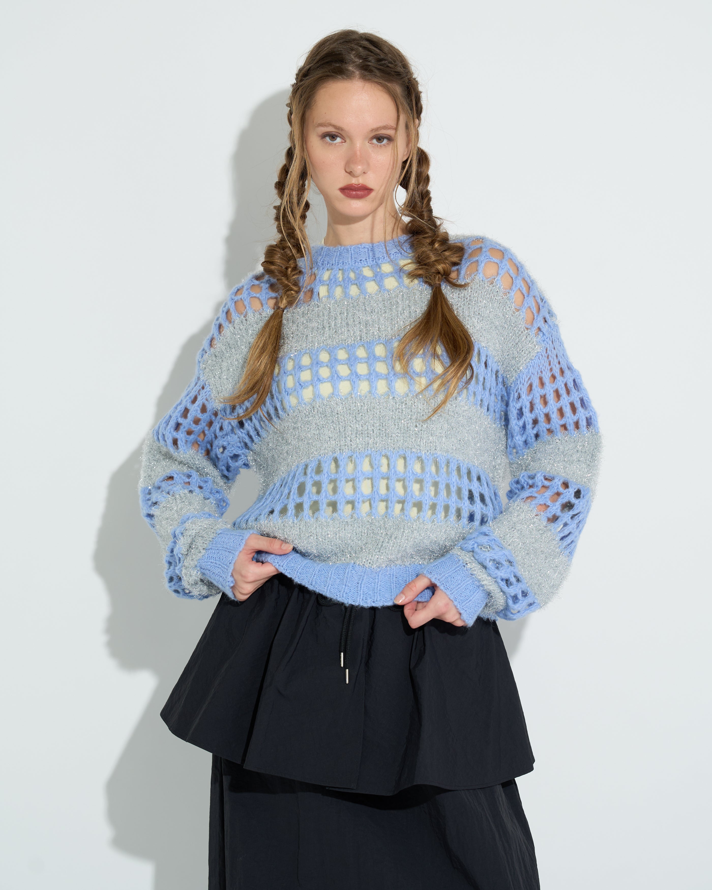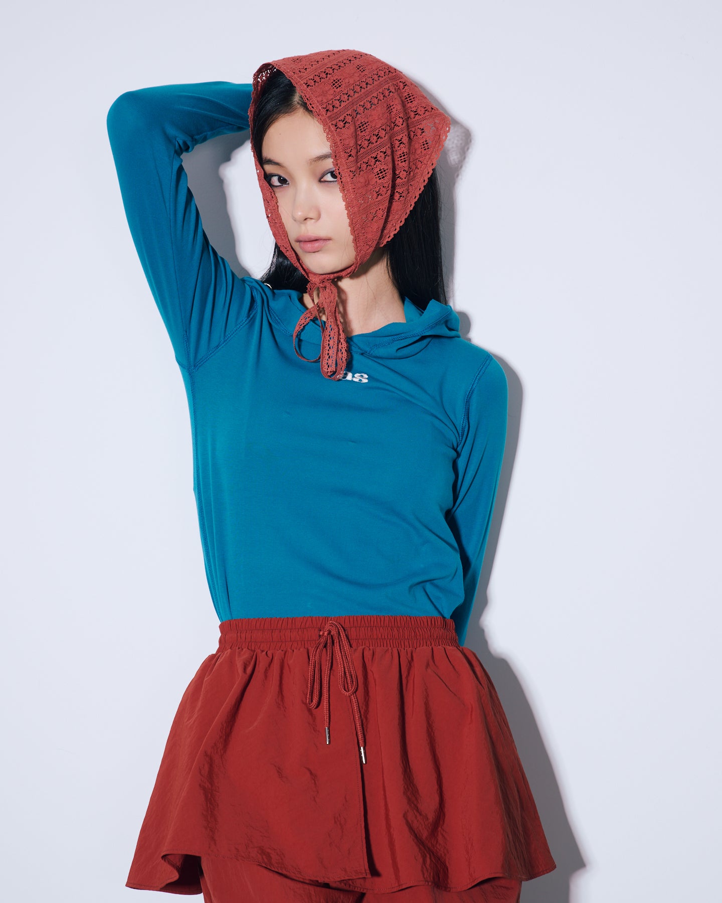 スポーティーな印象のメッシュ素材と女性らしいレース素材のコントラストが新鮮な印象を与えてくれます。