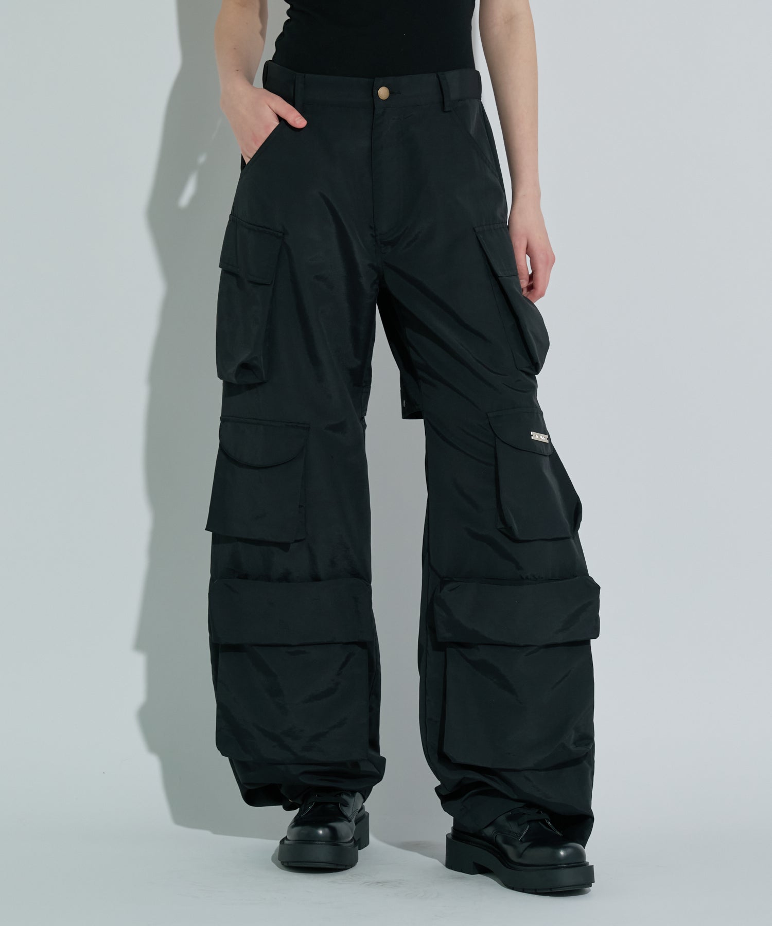 立体的なポケットワークが目を惹くカーゴパンツ。大胆に配された形の異なる3種類のポケットは、視覚的なボリュームを生み出しながらも、全体のラインをバランスよく構築。ミリタリー由来の無骨さを残しつつも、モードに落とし込んだ存在感のある一本です。