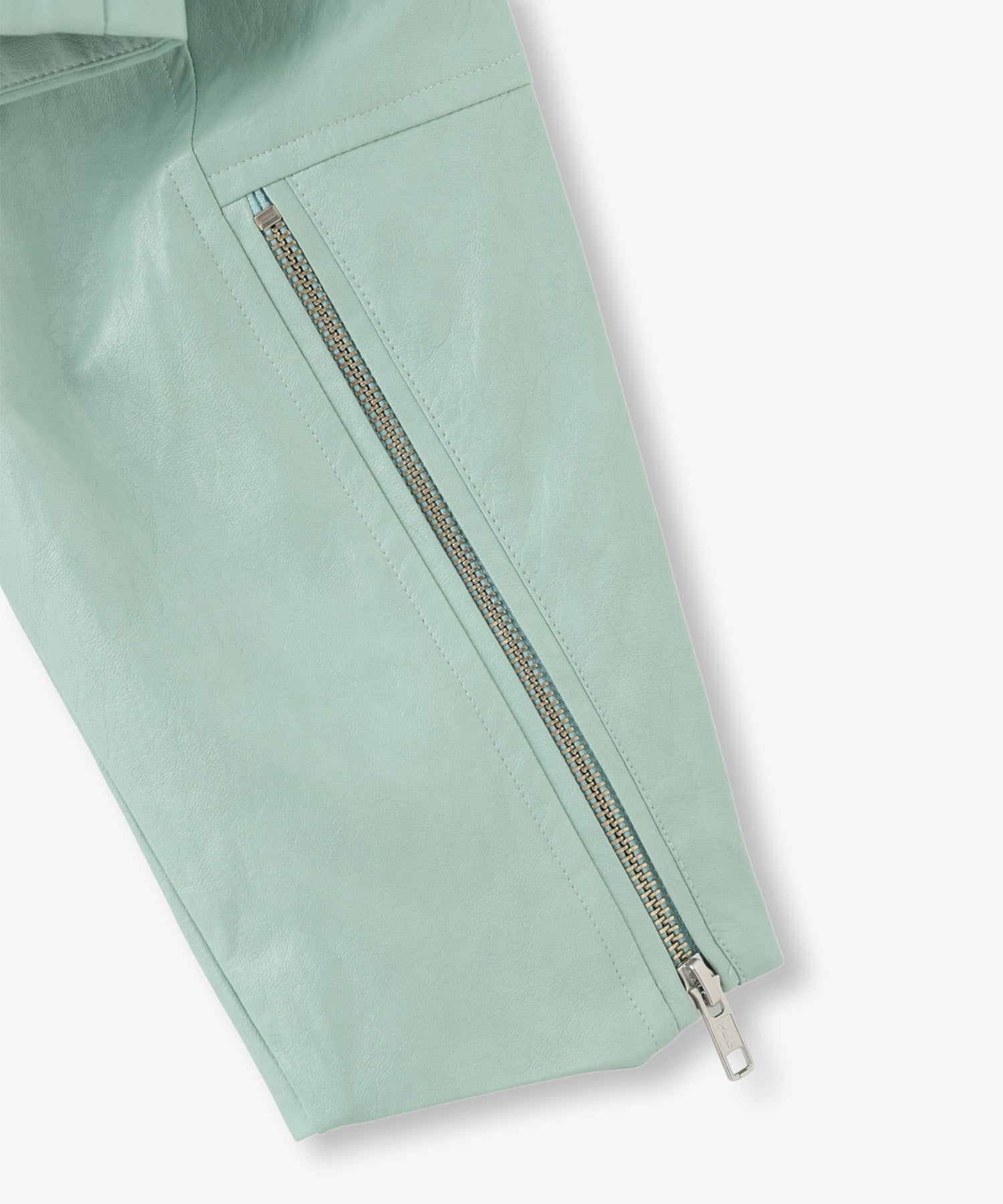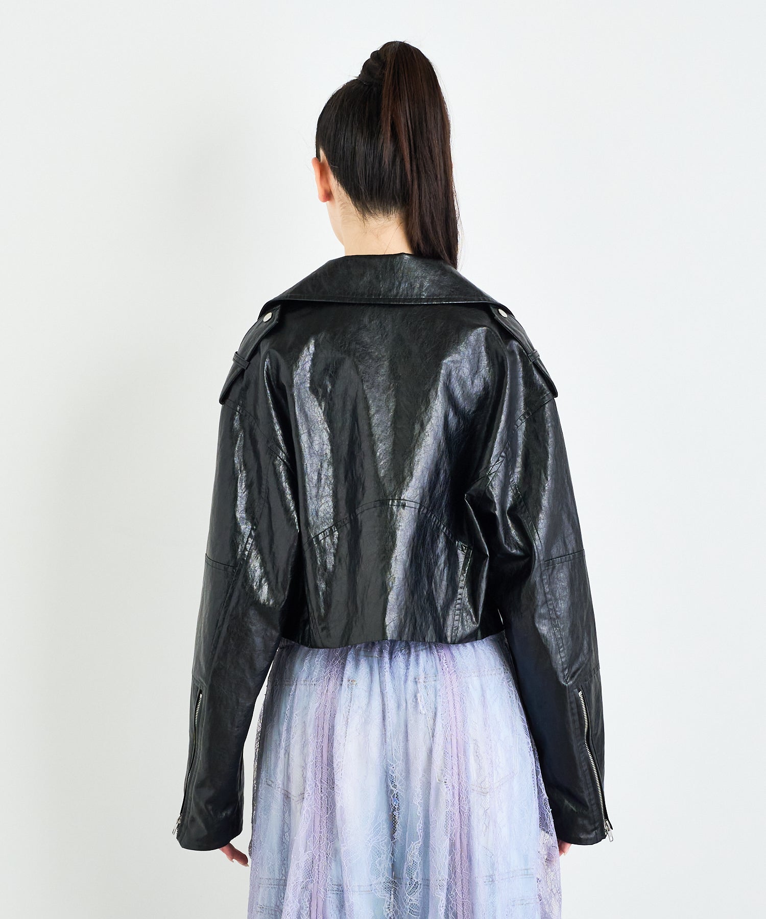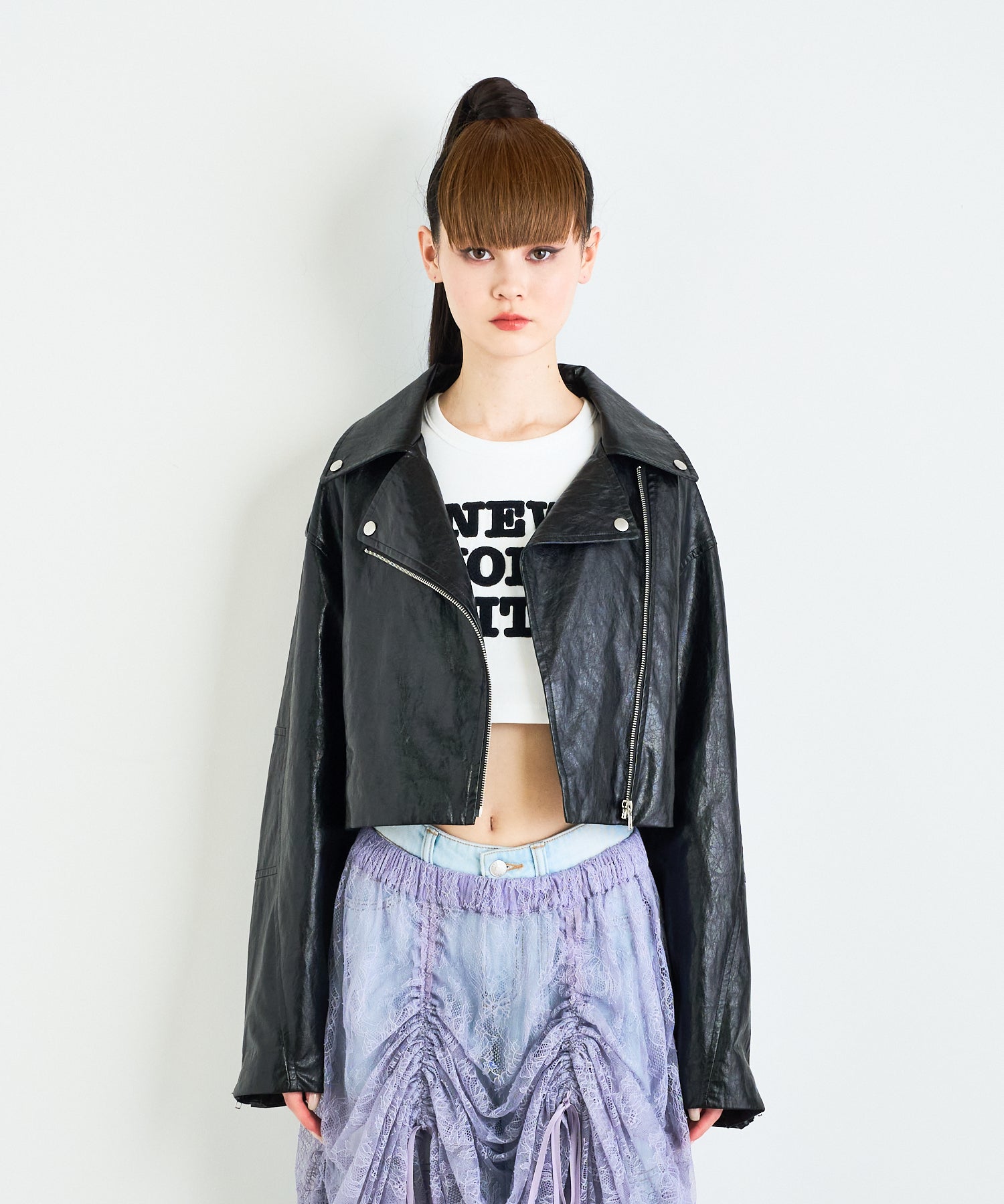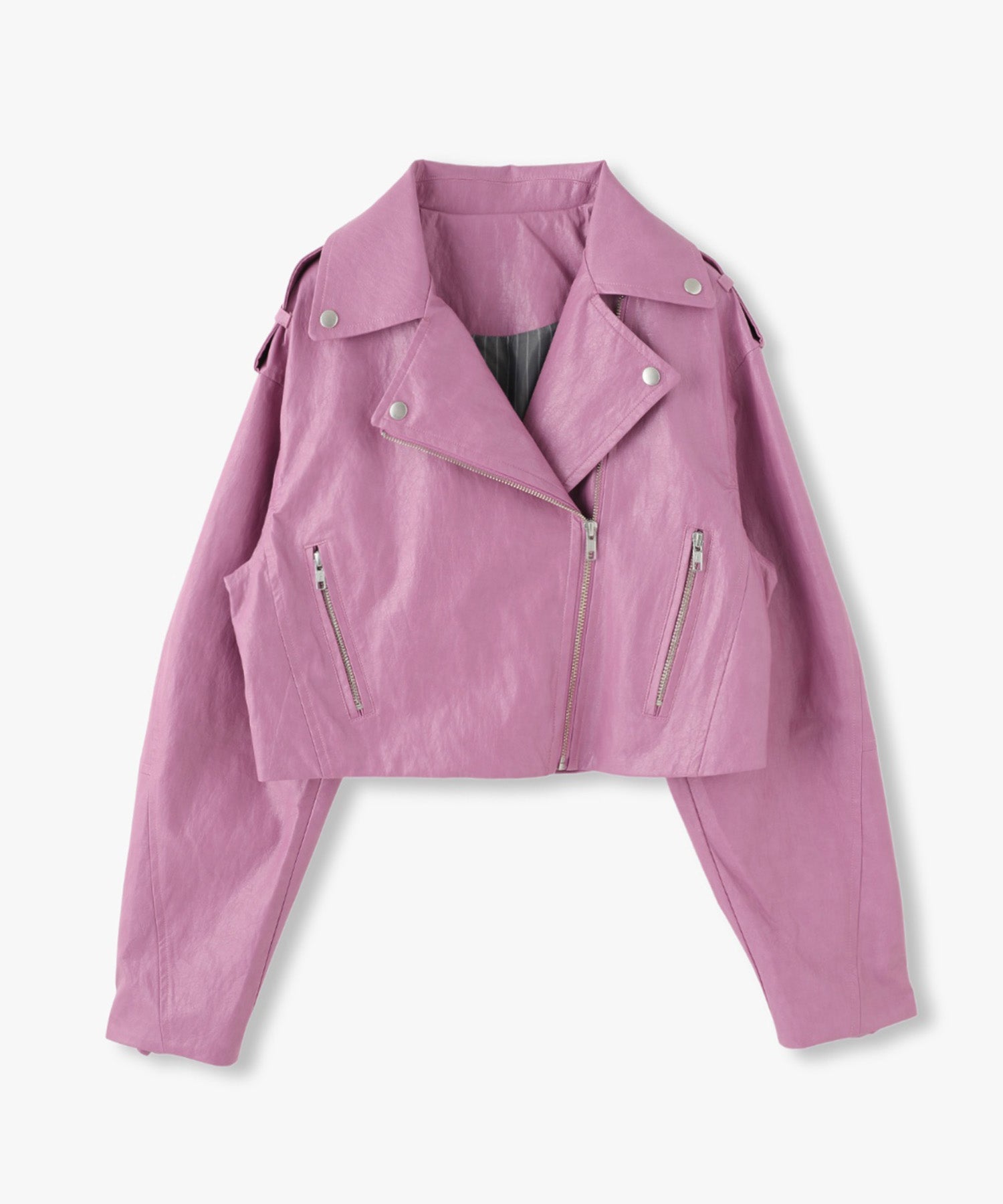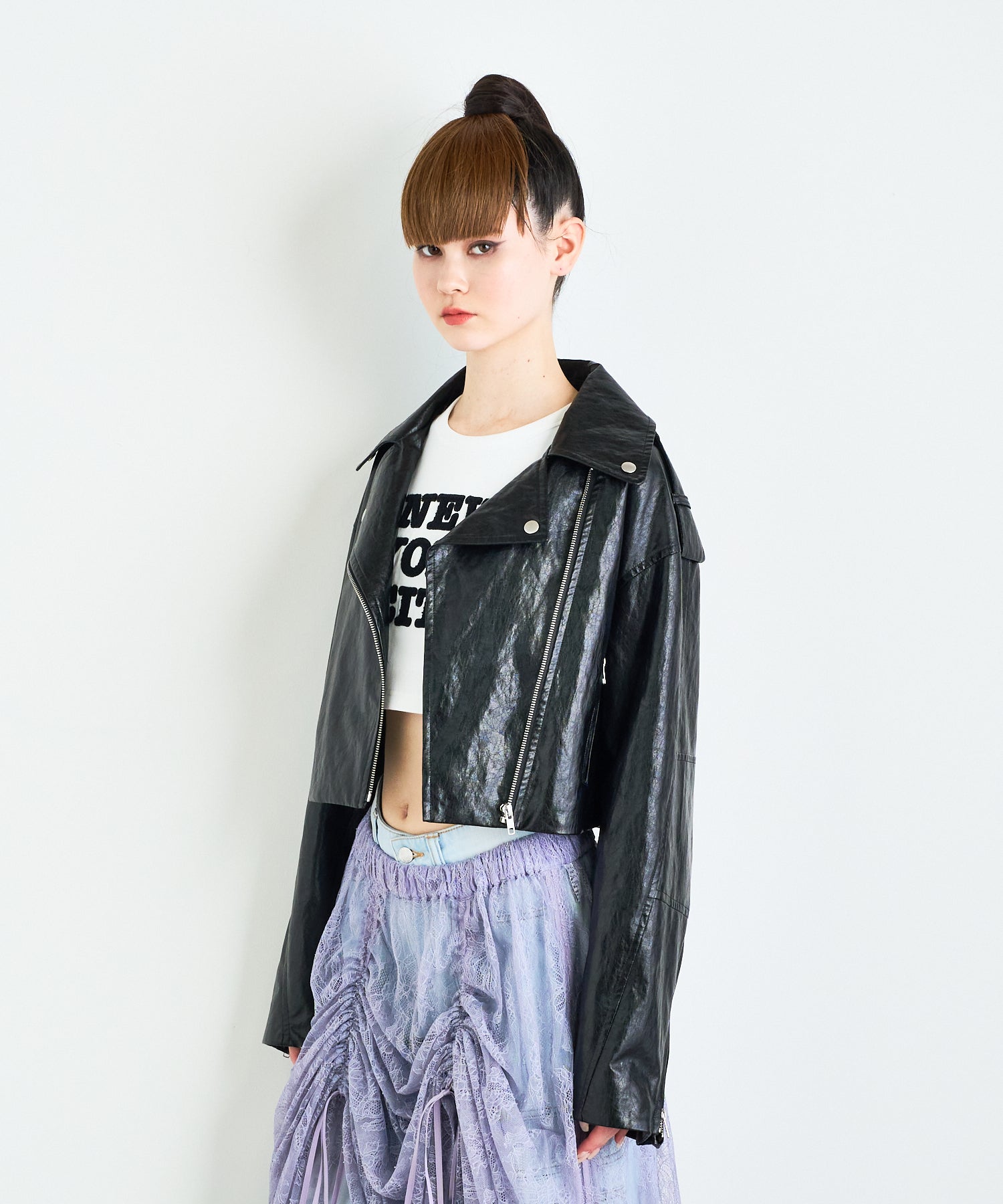 ハードなイメージのダブルライダースジャケットをANNA SUI NYCらしいシルエットに昇華させ、今っぽいPOPな印象に!こなれた雰囲気を出してくれる生地のシワ感や他にないカラーバリエーションでコーデの主役に◎