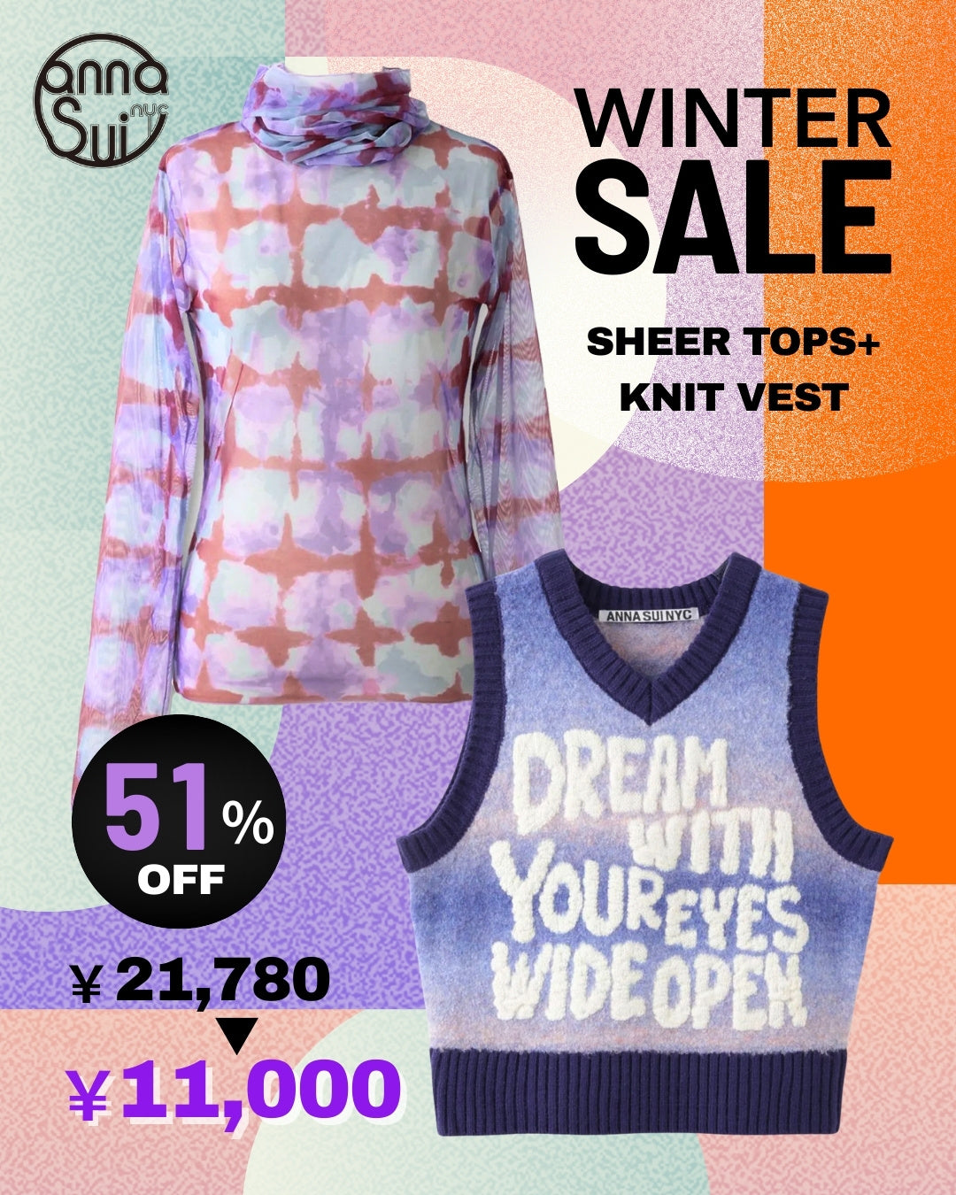 ただいまメールマガジンにご登録いただくと、500ポイントプレゼント!ANNA SUI NYCの最新情報やお得なキャンペーンを配信します。