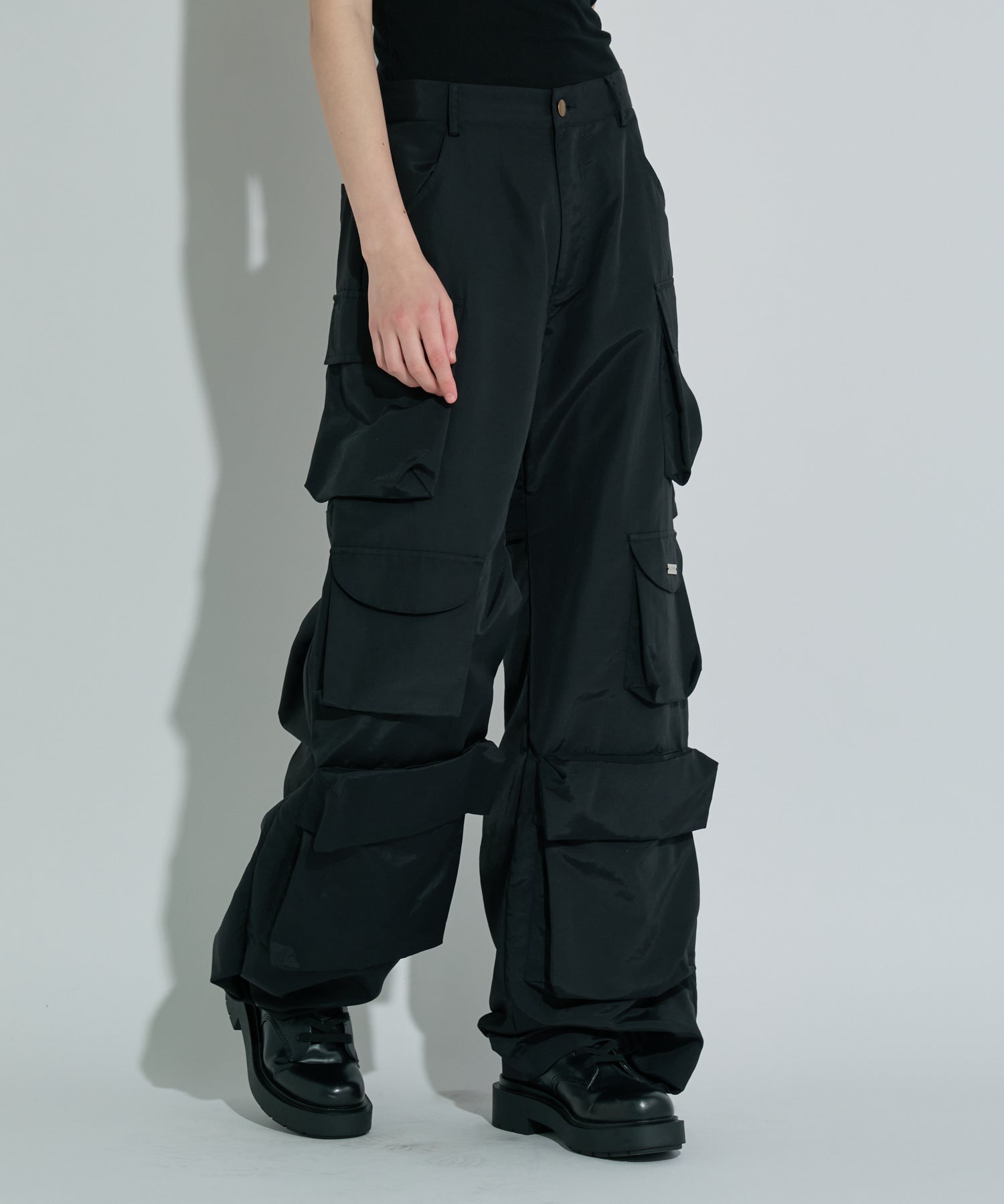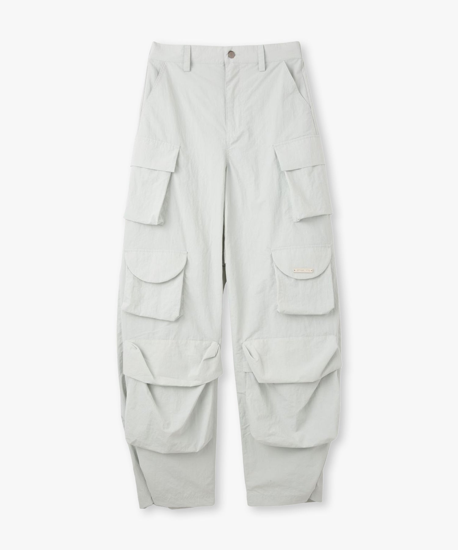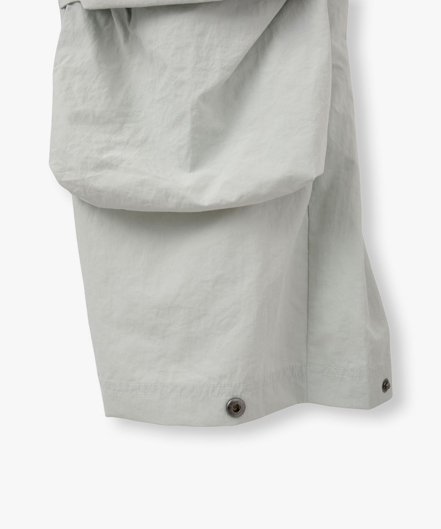 立体的なポケットワークが目を惹くカーゴパンツ。大胆に配された形の異なる3種類のポケットは、視覚的なボリュームを生み出しながらも、全体のラインをバランスよく構築。ミリタリー由来の無骨さを残しつつも、モードに落とし込んだ存在感のある一本です。程よいハリ感のある素材を使用することで、ワイドシルエットながら重たさを感じさせず、動くたびに立体的な陰影が際立ちます。裾にはボタンを配置し、シルエット変化も楽しめる仕様に。さらに膝裏にはスナップ開閉のディテールをプラス。留めればシルエットをキープ、開ければ大胆な肌見せスタイルに。気分やシーンによって、スタイリングに合わせたアレンジが可能です。セットアップで着用できる同素材の”マットオーバージャンパー”と合わせれば、都会的で洗練されたミリタリースタイルが完成。シンプルなトップスと合わせるだけでもインパクトのあるスタイルを完成させてくれる、主役級カーゴパンツです。