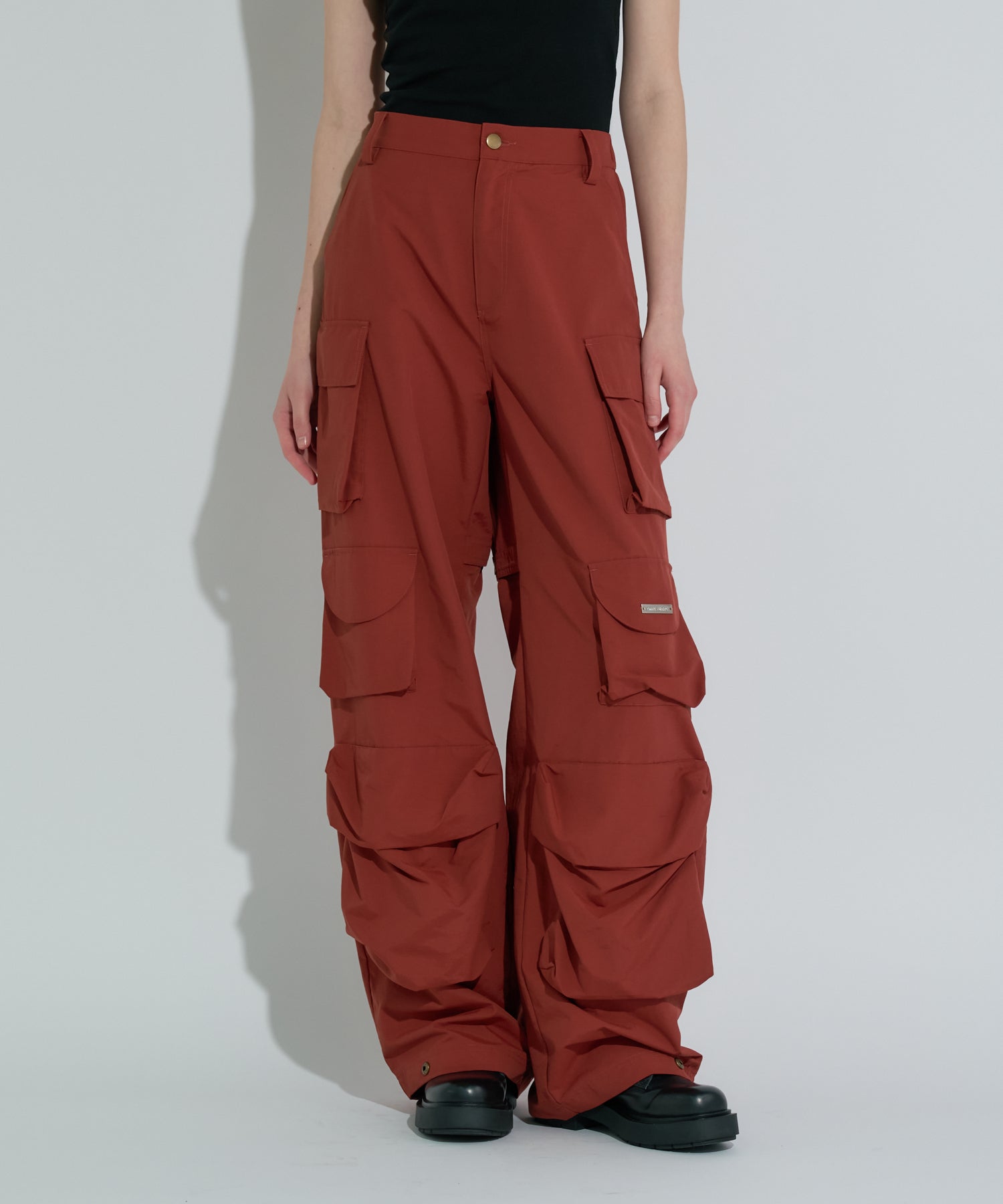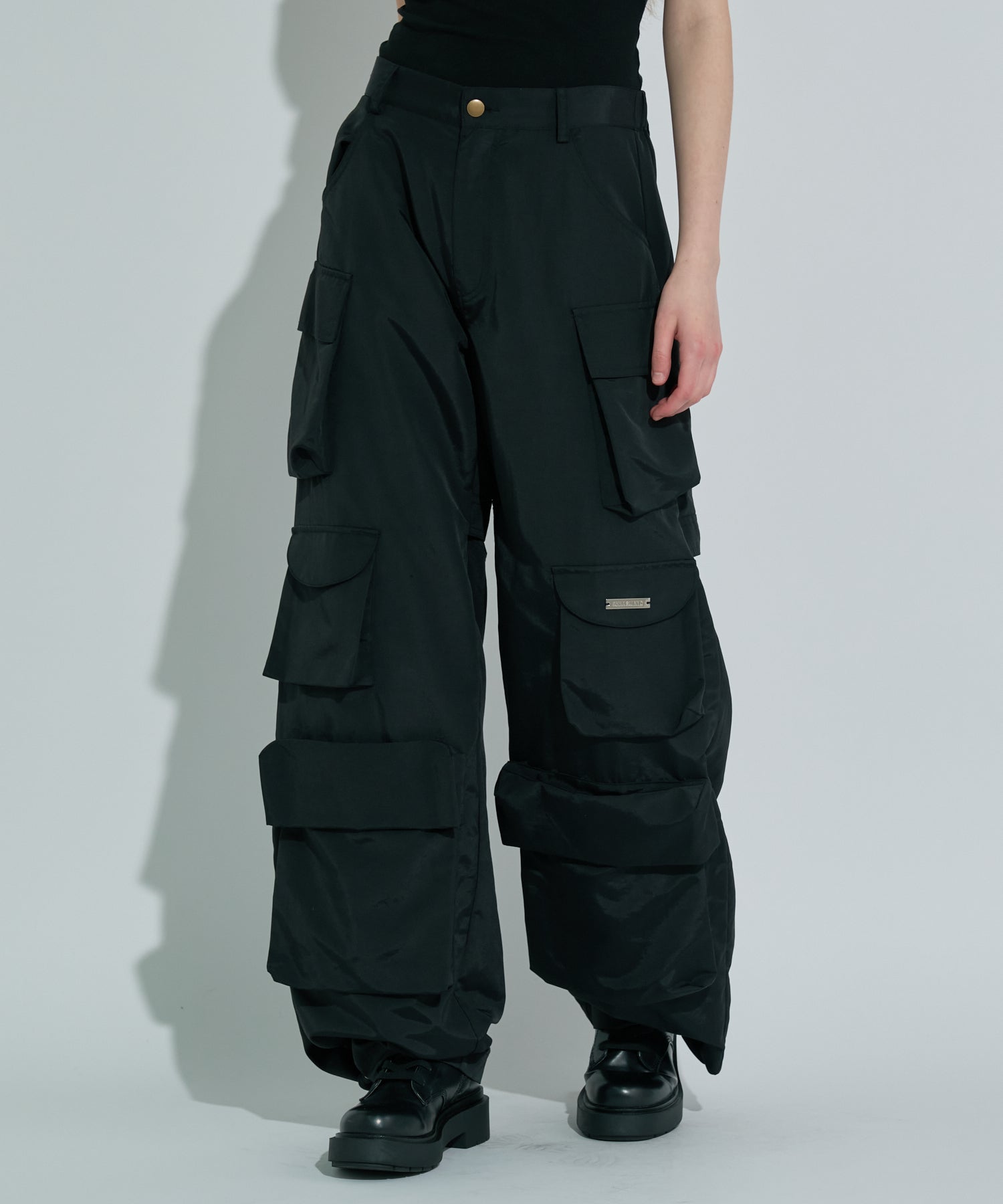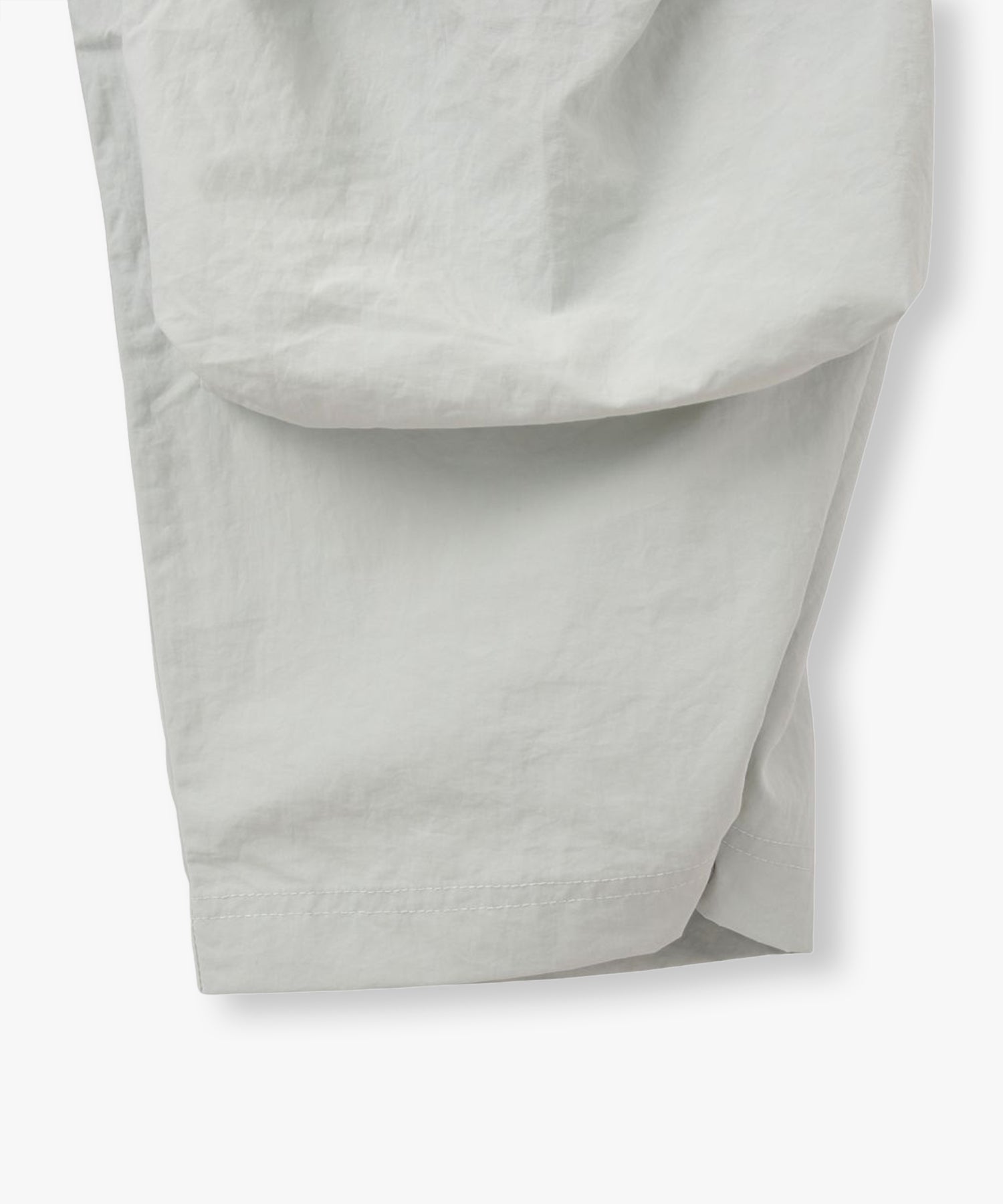 立体的なポケットワークが目を惹くカーゴパンツ。大胆に配された形の異なる3種類のポケットは、視覚的なボリュームを生み出しながらも、全体のラインをバランスよく構築。ミリタリー由来の無骨さを残しつつも、モードに落とし込んだ存在感のある一本です。程よいハリ感のある素材を使用することで、ワイドシルエットながら重たさを感じさせず、動くたびに立体的な陰影が際立ちます。裾にはボタンを配置し、シルエット変化も楽しめる仕様に。さらに膝裏にはスナップ開閉のディテールをプラス。留めればシルエットをキープ、開ければ大胆な肌見せスタイルに。気分やシーンによって、スタイリングに合わせたアレンジが可能です。セットアップで着用できる同素材の”マットオーバージャンパー”と合わせれば、都会的で洗練されたミリタリースタイルが完成。シンプルなトップスと合わせるだけでもインパクトのあるスタイルを完成させてくれる、主役級カーゴパンツです。
