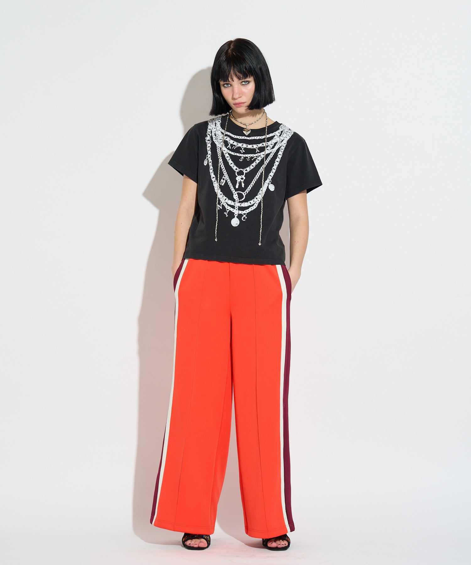 アクセ感覚で着られる、モードな存在感。シンプルなシルエットにエッジの効いたグラフィックが映え、1枚でコーディネートの主役になるアイテムです。