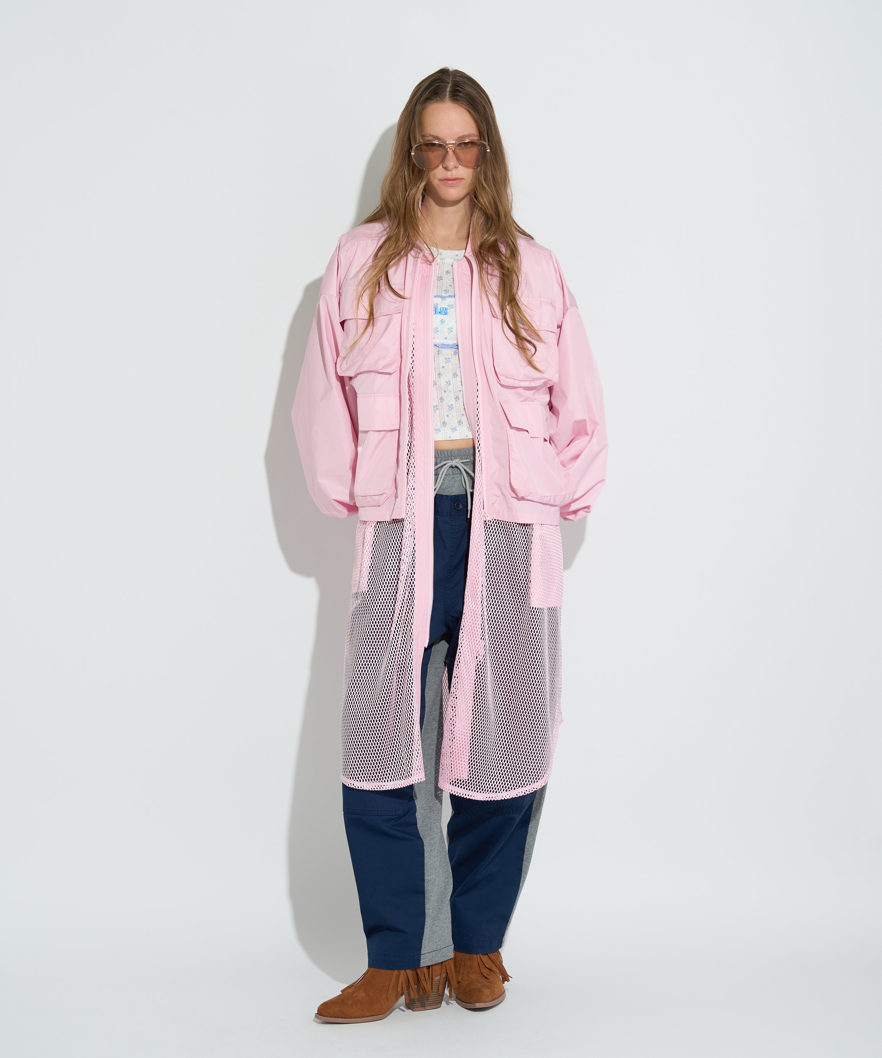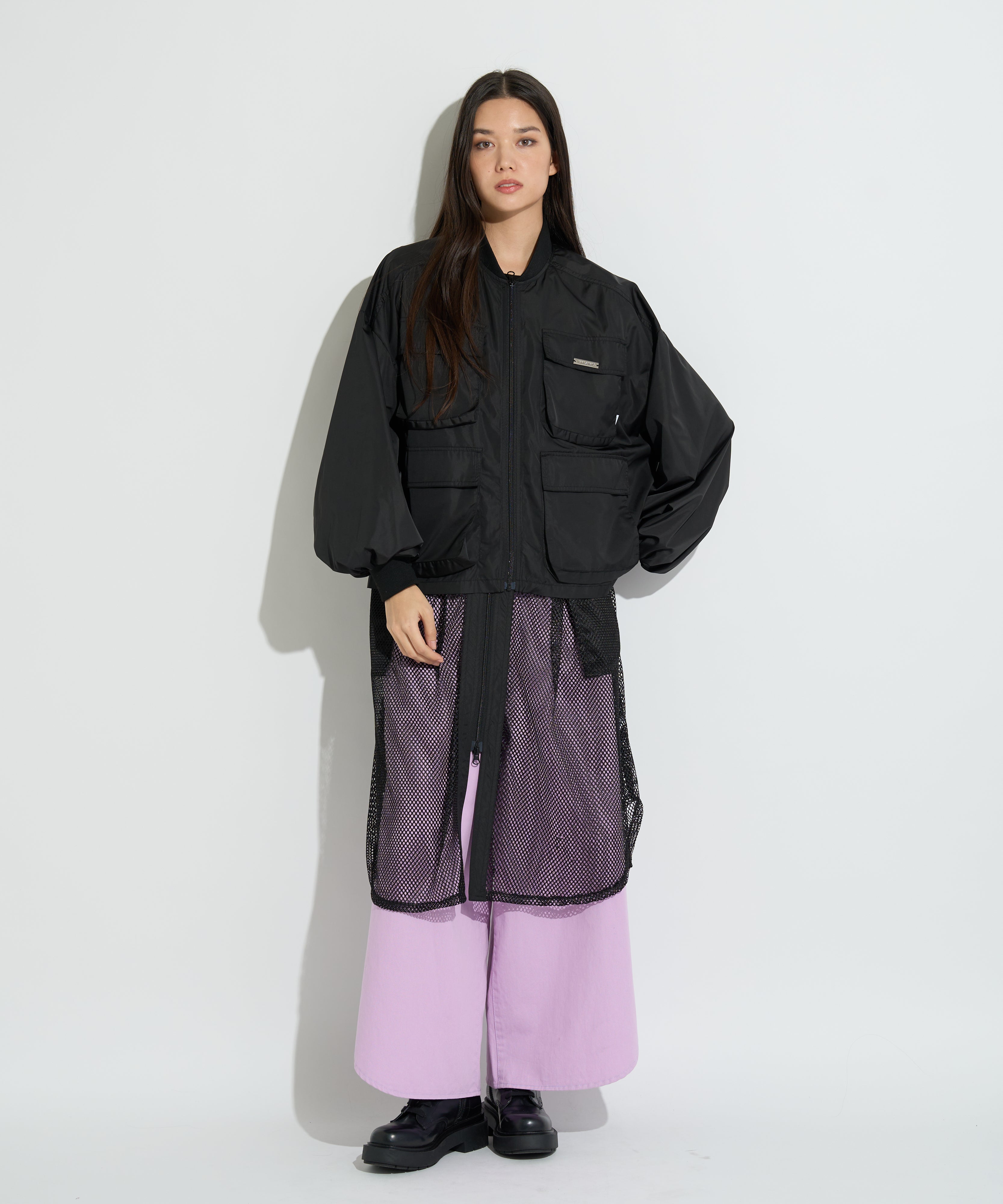 ミリタリーテイストのブルゾンに、ロング丈のメッシュベストを組み合わせた、トレンド感のある3WAYロングベストブルゾン。