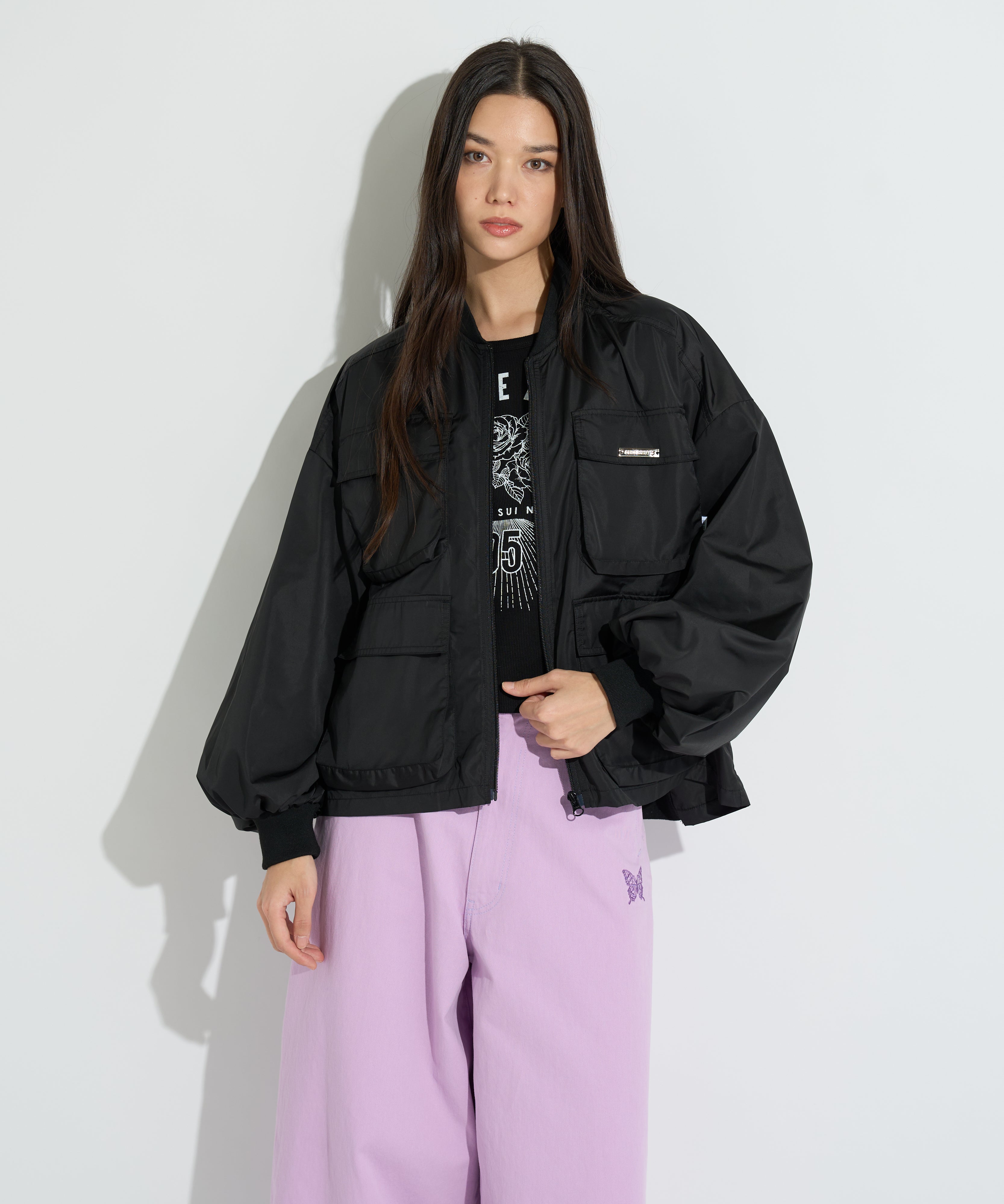 気温やスタイリングに合わせたアレンジを楽しめます。ブルゾンはボリューム感のある袖と、フロントに配置した4つのフラップポケットがポイント。
