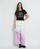 繊細な刺繍レース生地を贅沢に使用した、アシンメトリーデザインのレーススカート。