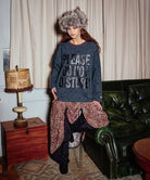 加工感のある生地を用いたロングスリーブTシャツ。リアルなヴィンテージウェアを思わせる風合いに仕上げ、着るだけでこなれた雰囲気を演出します。フロントにはオーロララメを織り交ぜたプリントを大胆に施し、角度によってさりげなく光を放つ表情豊かな一枚に。存在感のあるビックシルエットで、デニムやカーゴなどのカジュアルボトムはもちろん、モードなスタイルのハズしとしても活躍します。カラーごとに異なるニュアンスも魅力で、ワードローブに取り入れるだけでスタイリングの幅を広げてくれるアイテムです。
