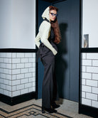 レトロなムード漂うチェック柄と、マニッシュなピンストライプの2種類をご用意。ベストは背中が大きく開いたバックシルエットがポイントで、ウエストのリボンがさらに華やかさをプラス。裾のペプラム部分の内側にはチュールを仕込み、さりげなく立体感のあるシルエットに。同シリーズのパンツと合わせれば、よりスタイリッシュなセットアップスタイルが完成します。インナー次第で季節を問わず着回せる万能アイテムです。