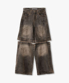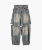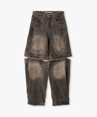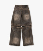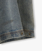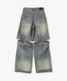 構築的な切り替えデザインで、唯一無二の存在感を放つデニムパンツ。膝裏の開きが立体感を生み、ユニークなシルエットを創り出します。さらに、裾部分にはアジャストボタンを配置。気分やシューズに合わせて自在にシルエットを変化させることができます。様々な加工を組み合わせて表現した リアルなヴィンテージ感は、ワードローブに新鮮なアクセントを加えてくれます。存在感のあるデザインながら、デイリースタイルにも自然と馴染む絶妙なバランス感が魅力。シンプルなトップスを合わせるだけで、スタイリングが一気にこなれた印象に。他にはないシルエットと加工感で、ジェンダーレスに楽しめる感度の高い一本です。