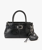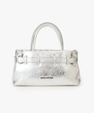メタリックな質感とシルバーバックル付きのベルトデザインが印象的な、横長フォルムのスタイリッシュなバッグで、モダンな存在感を放ちながらも幅広いスタイリングにマッチします。ラフなクラッキング加工が施されたフェイクレザーはストリート感を演出しつつ、軽量で扱いやすく、ショルダーストラップを取り外せば手持ちでも使える2way仕様。スポーティーなコーディネートのアクセントとしてはもちろん、シンプルなスタイルに取り入れてエッジを効かせるのもおすすめです。