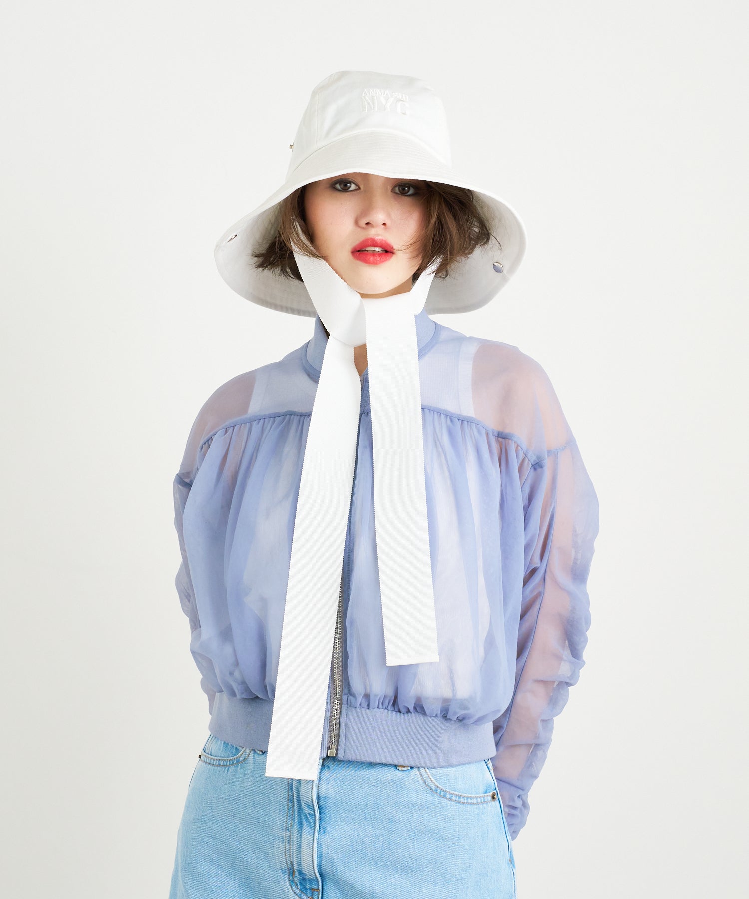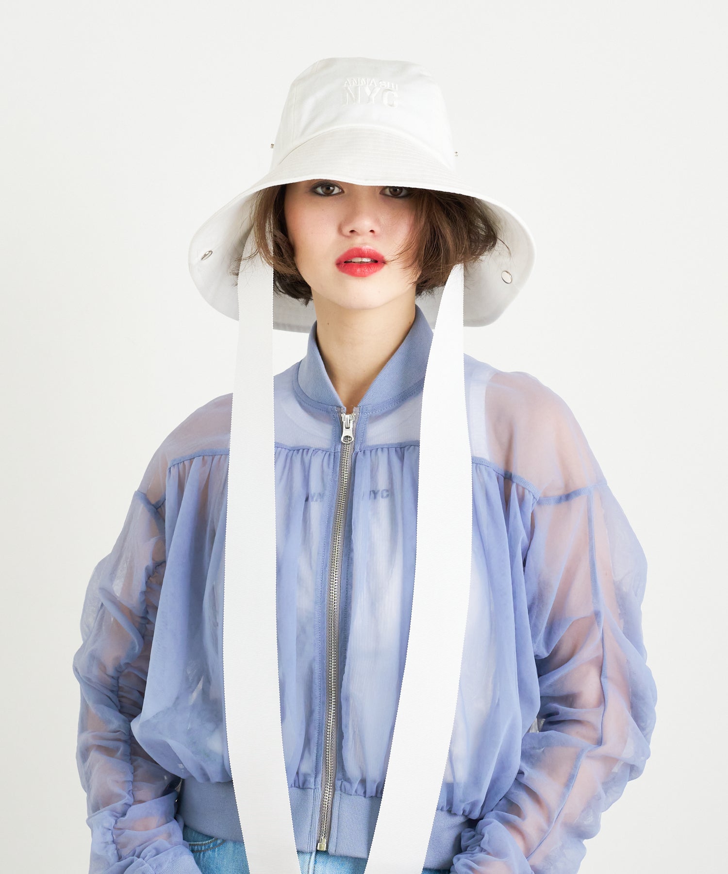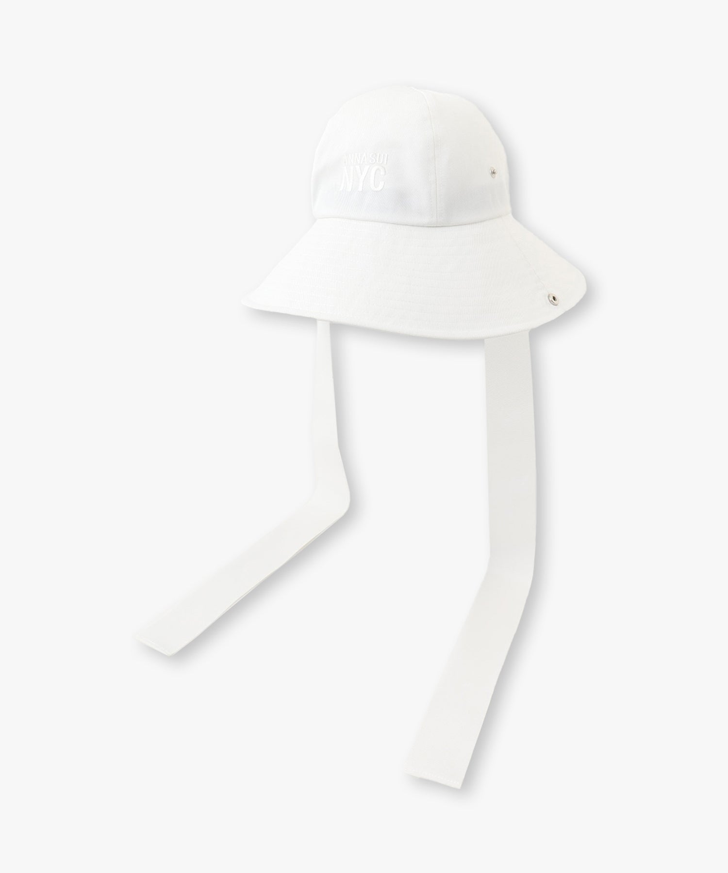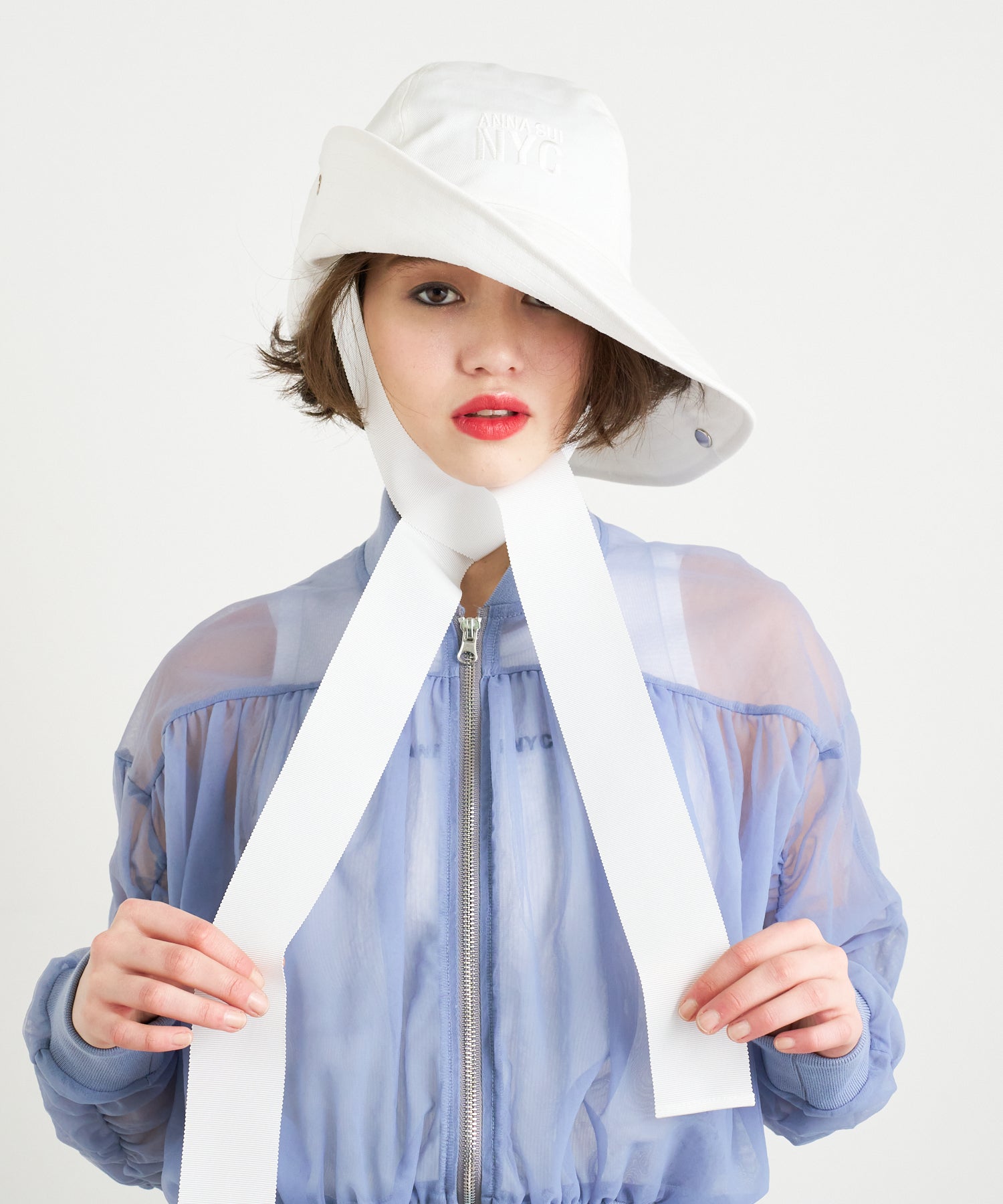 ツバ広で日よけに最適なツイル生地のサハラハット。サイドに付いているドットボタンでツバをたたんで着用することも可能!サイドに垂れる太いテープが存在感溢れる他にない可愛いデザインハットです。カジュアルからフェミニンなスタイリングまで幅広く着用できます。