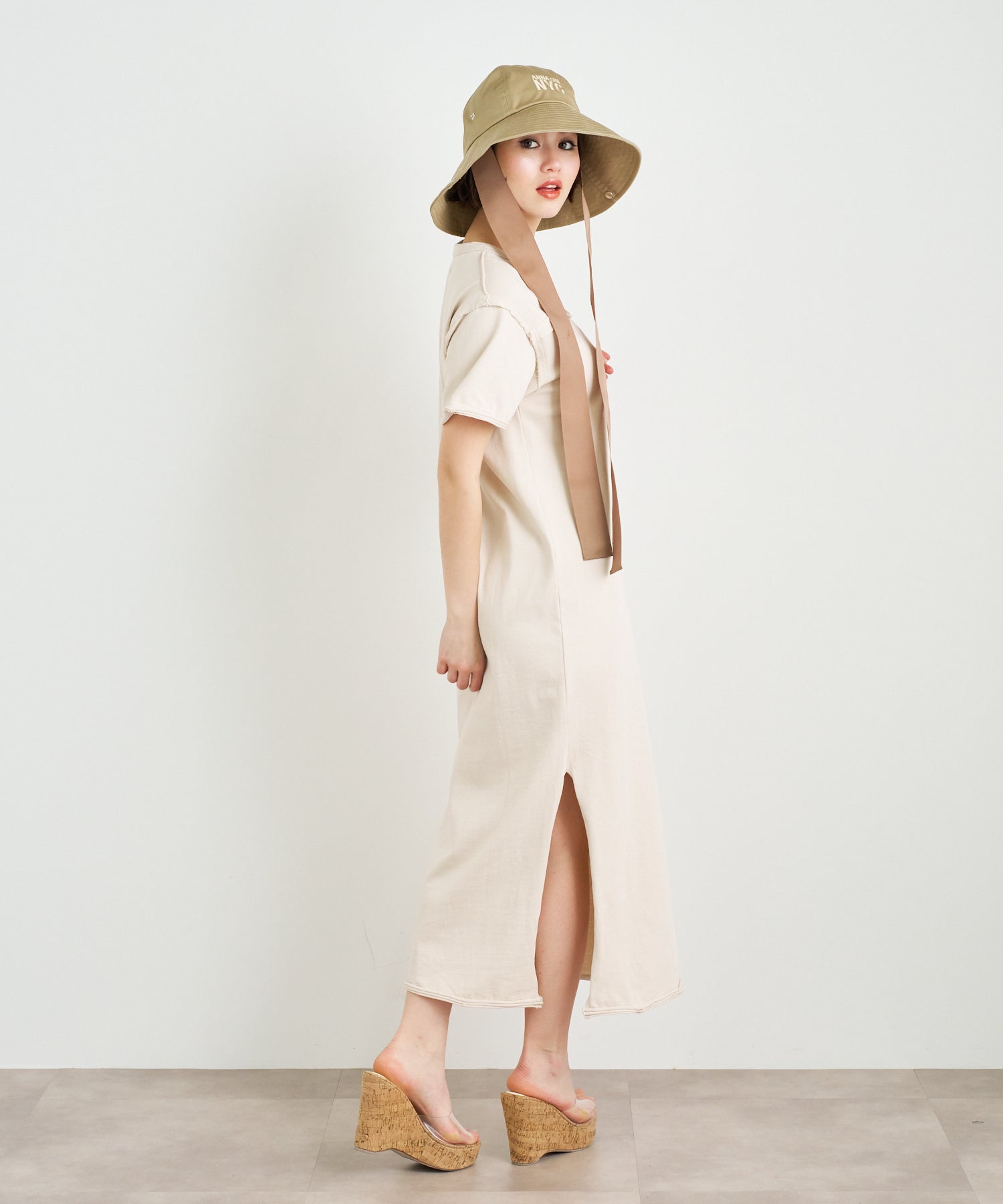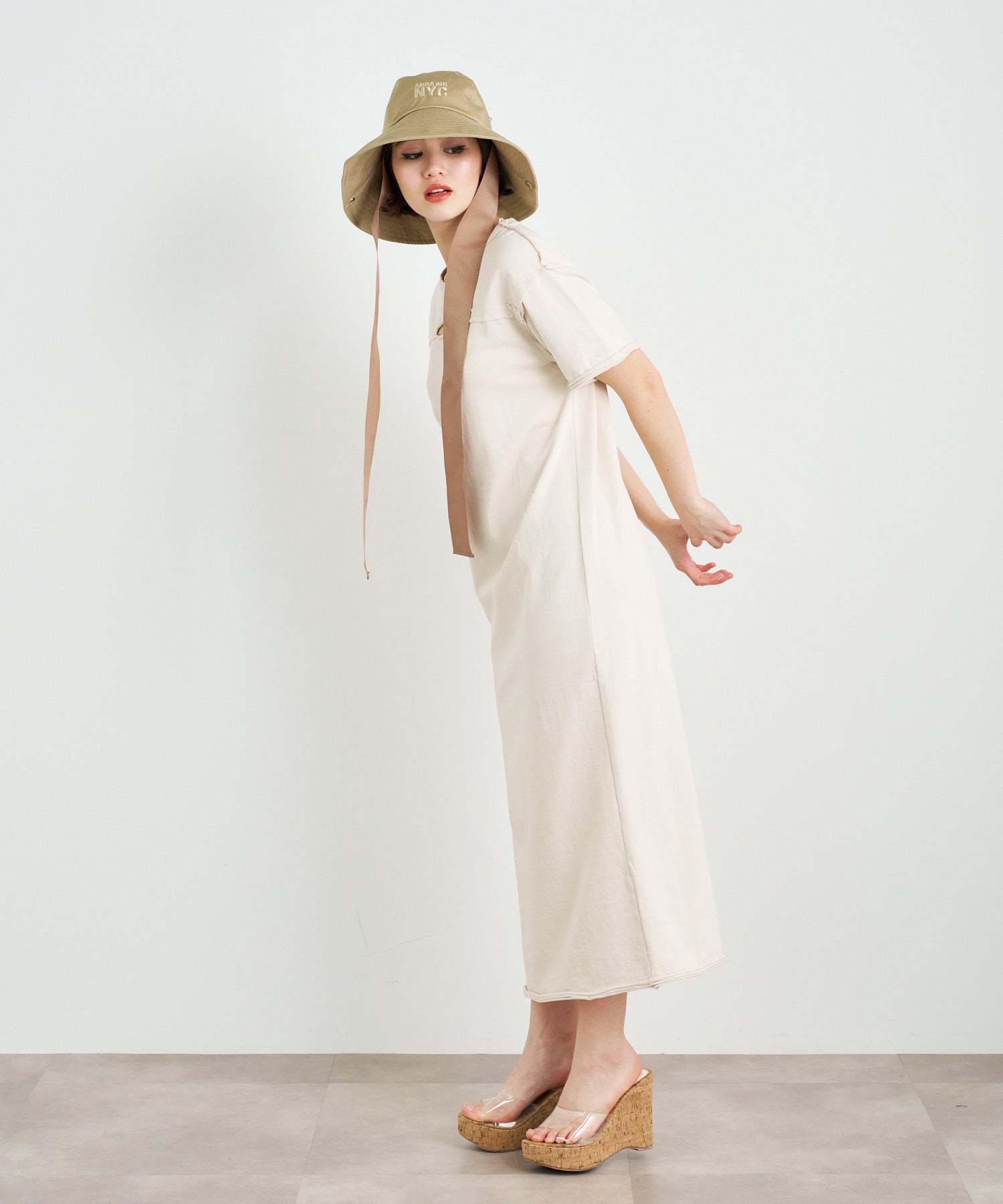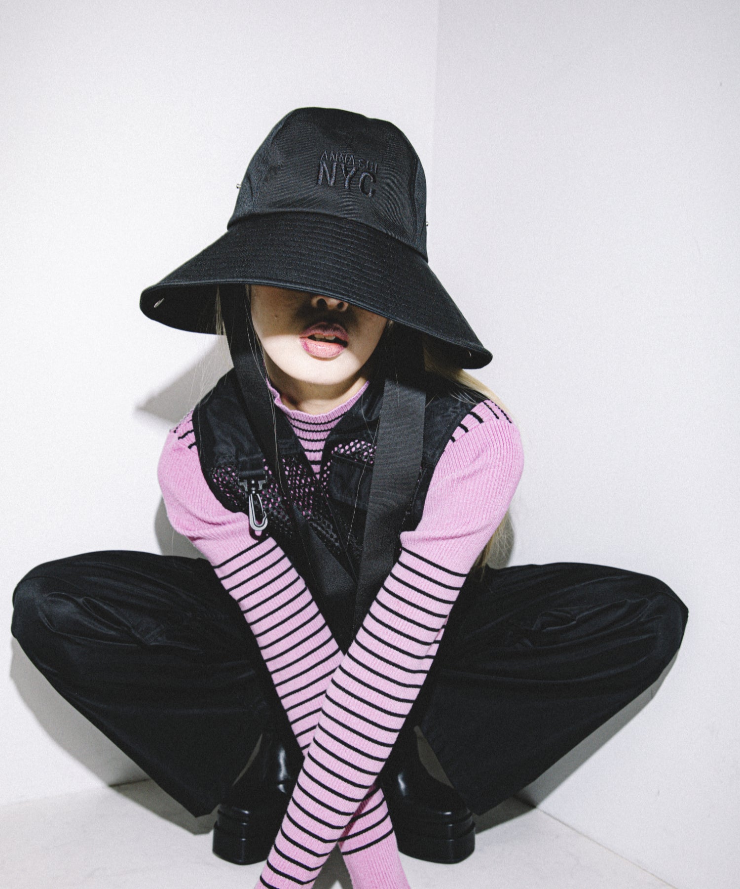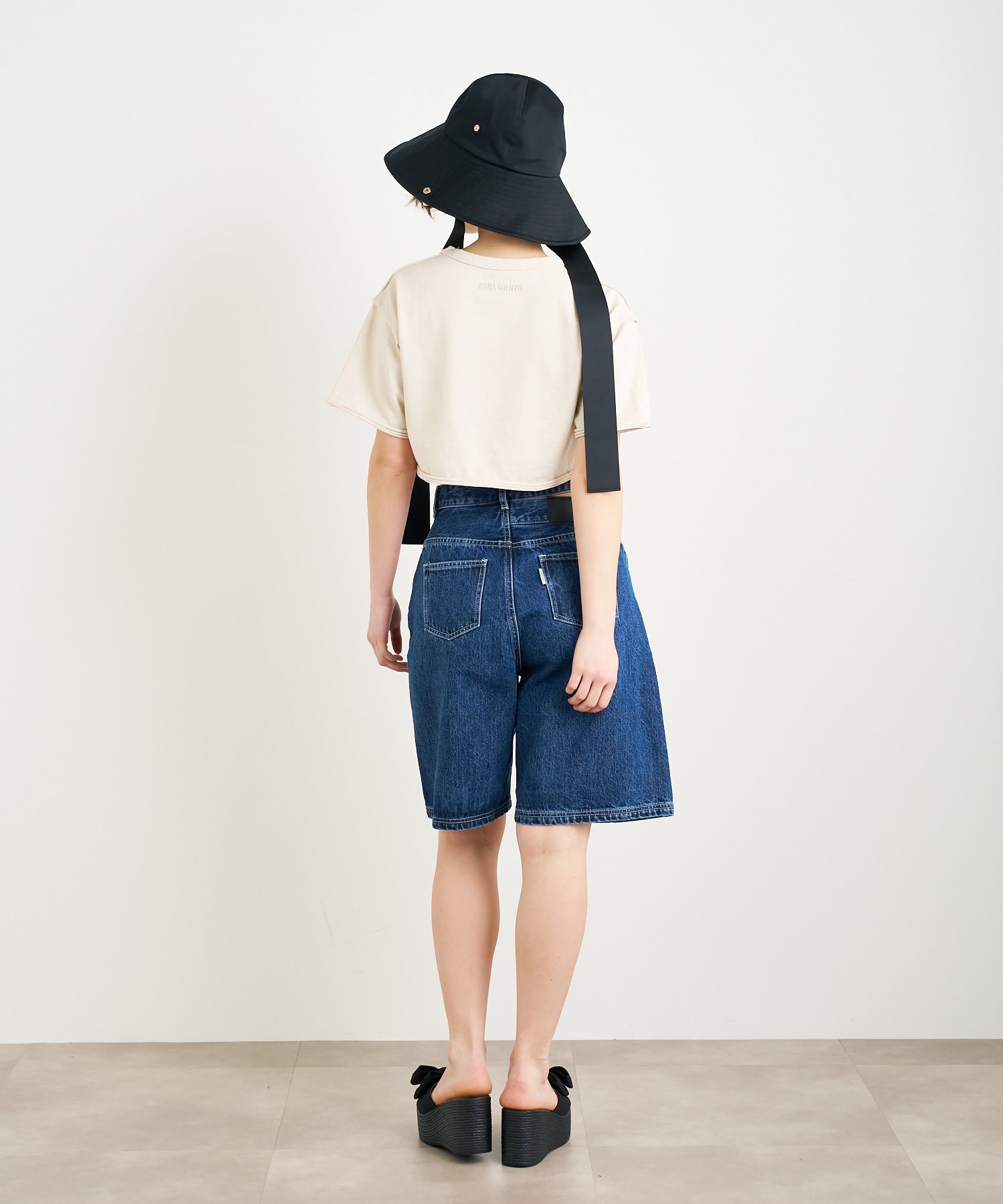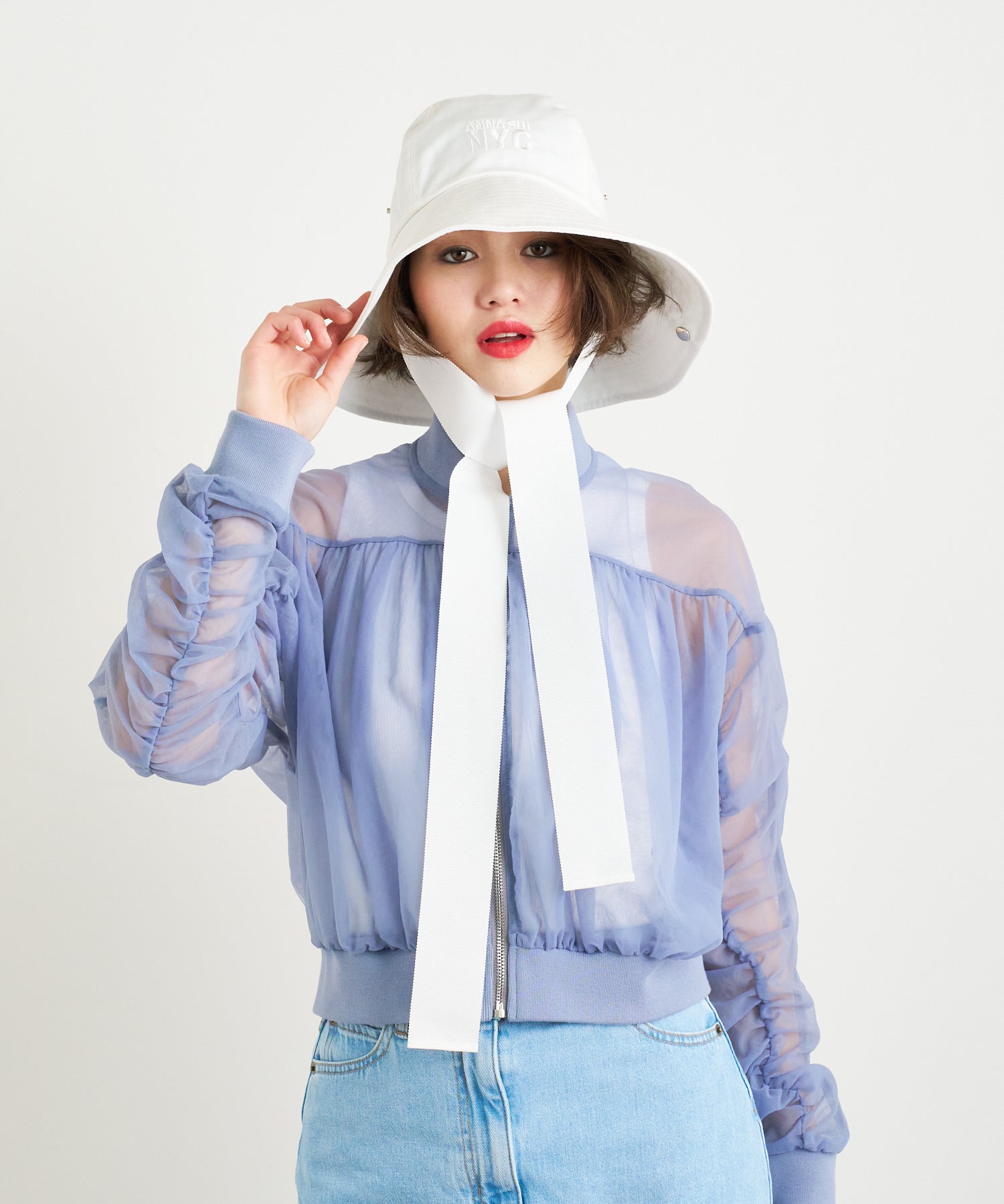 ツバ広で日よけに最適なツイル生地のサハラハット。サイドに付いているドットボタンでツバをたたんで着用することも可能!サイドに垂れる太いテープが存在感溢れる他にない可愛いデザインハットです。カジュアルからフェミニンなスタイリングまで幅広く着用できます。