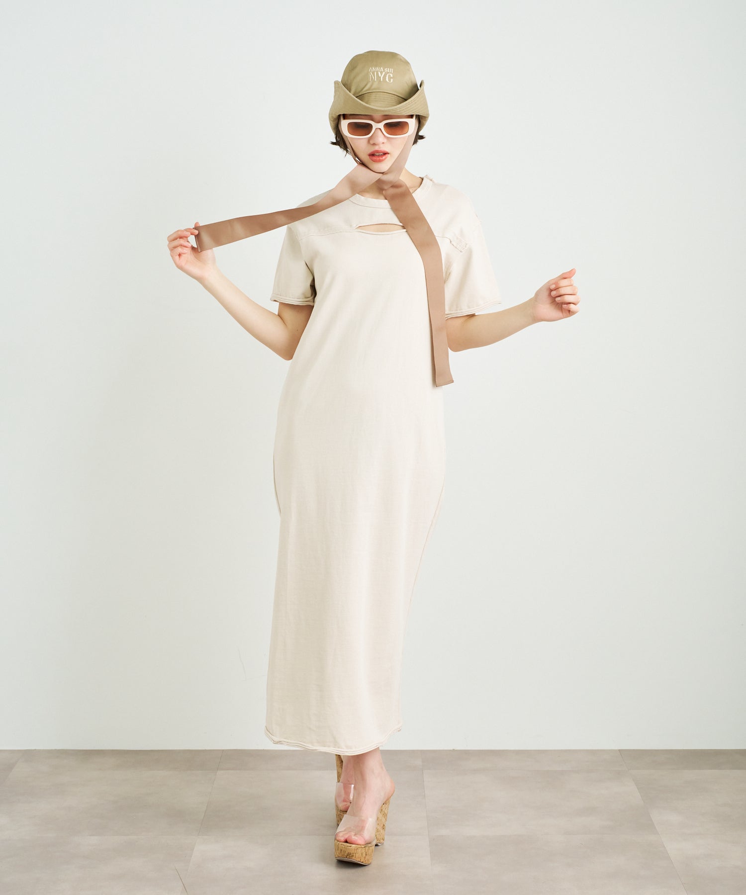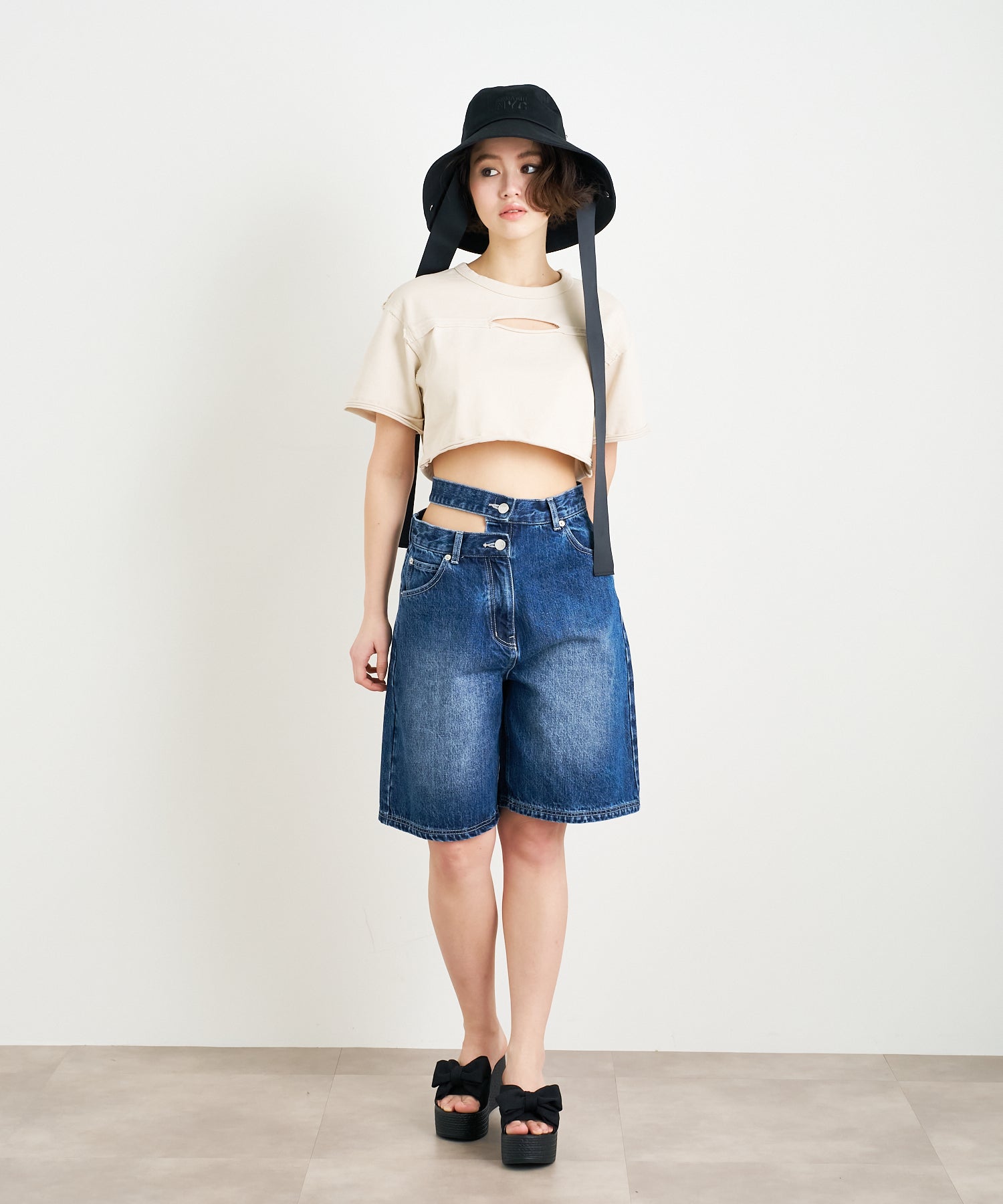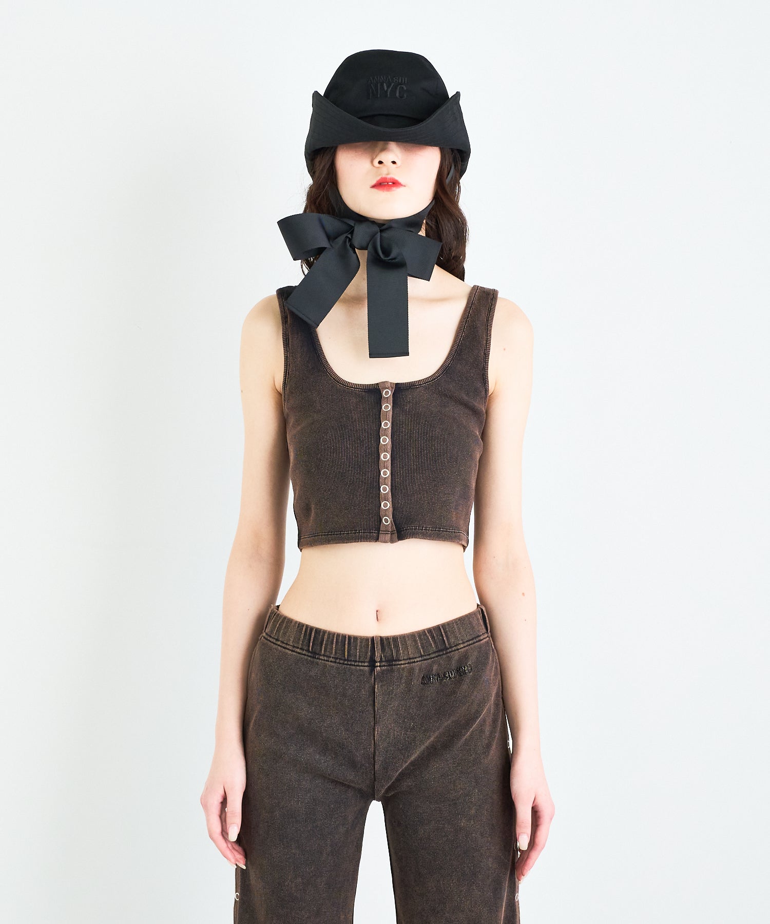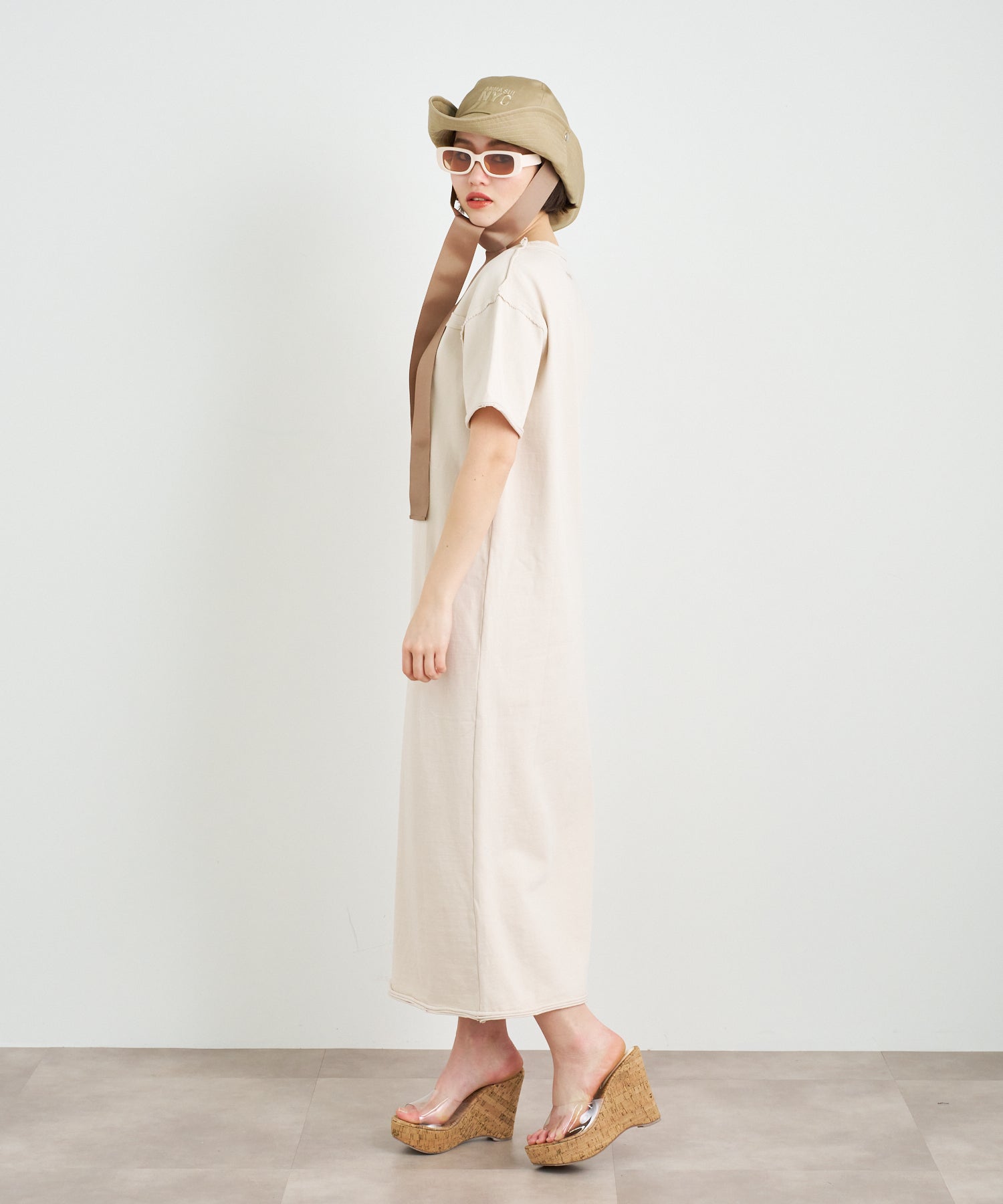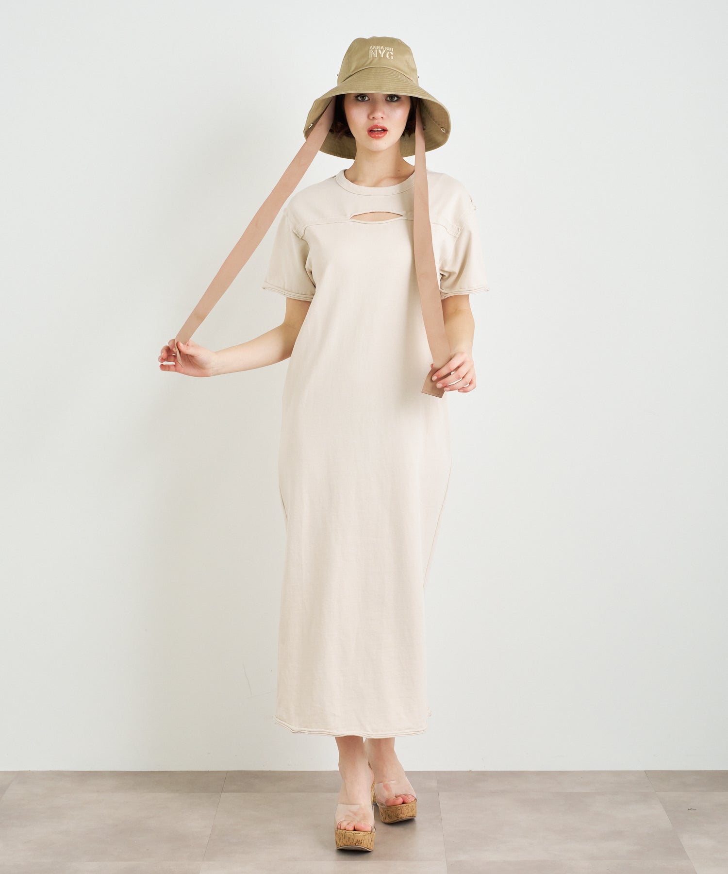 ツバ広で日よけに最適なツイル生地のサハラハット。サイドに付いているドットボタンでツバをたたんで着用することも可能!サイドに垂れる太いテープが存在感溢れる他にない可愛いデザインハットです。カジュアルからフェミニンなスタイリングまで幅広く着用できます。