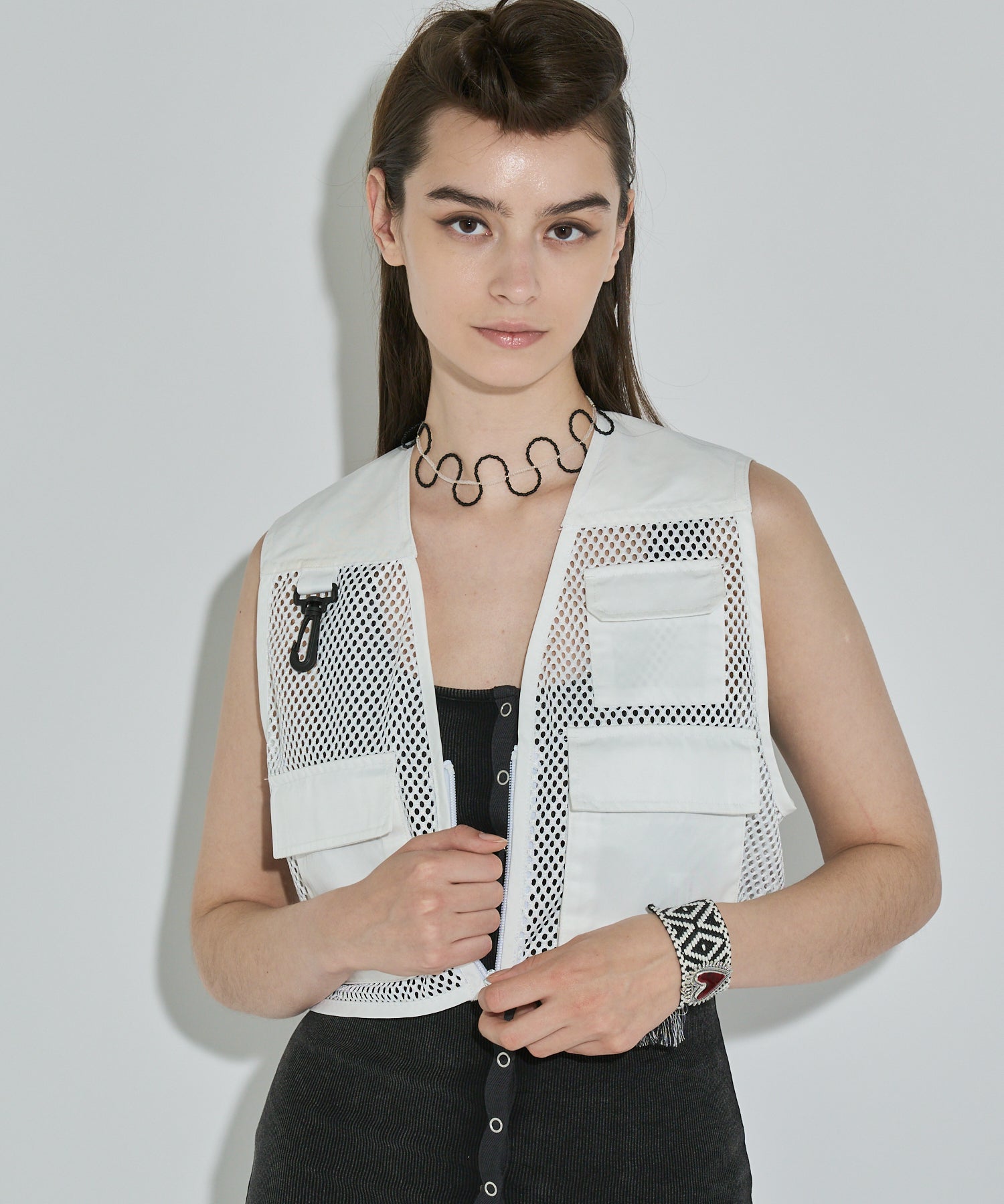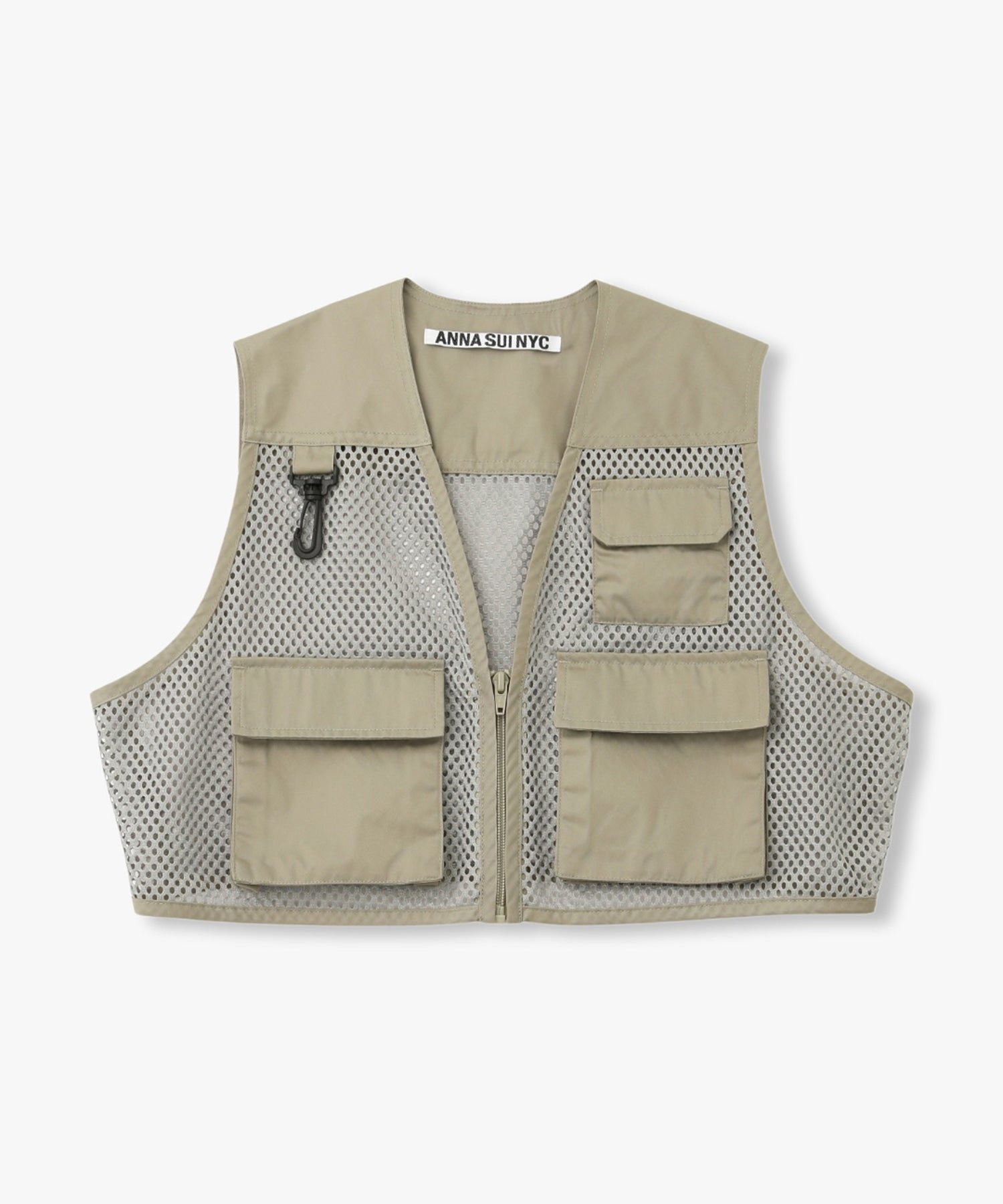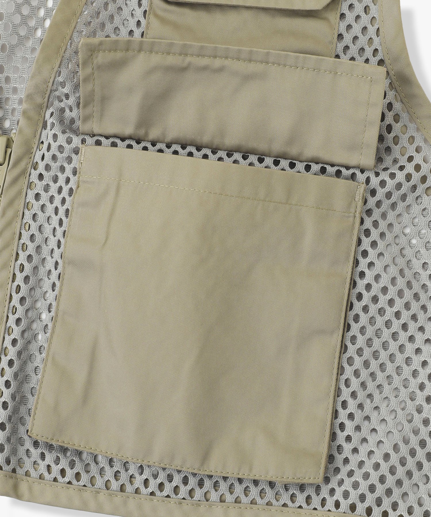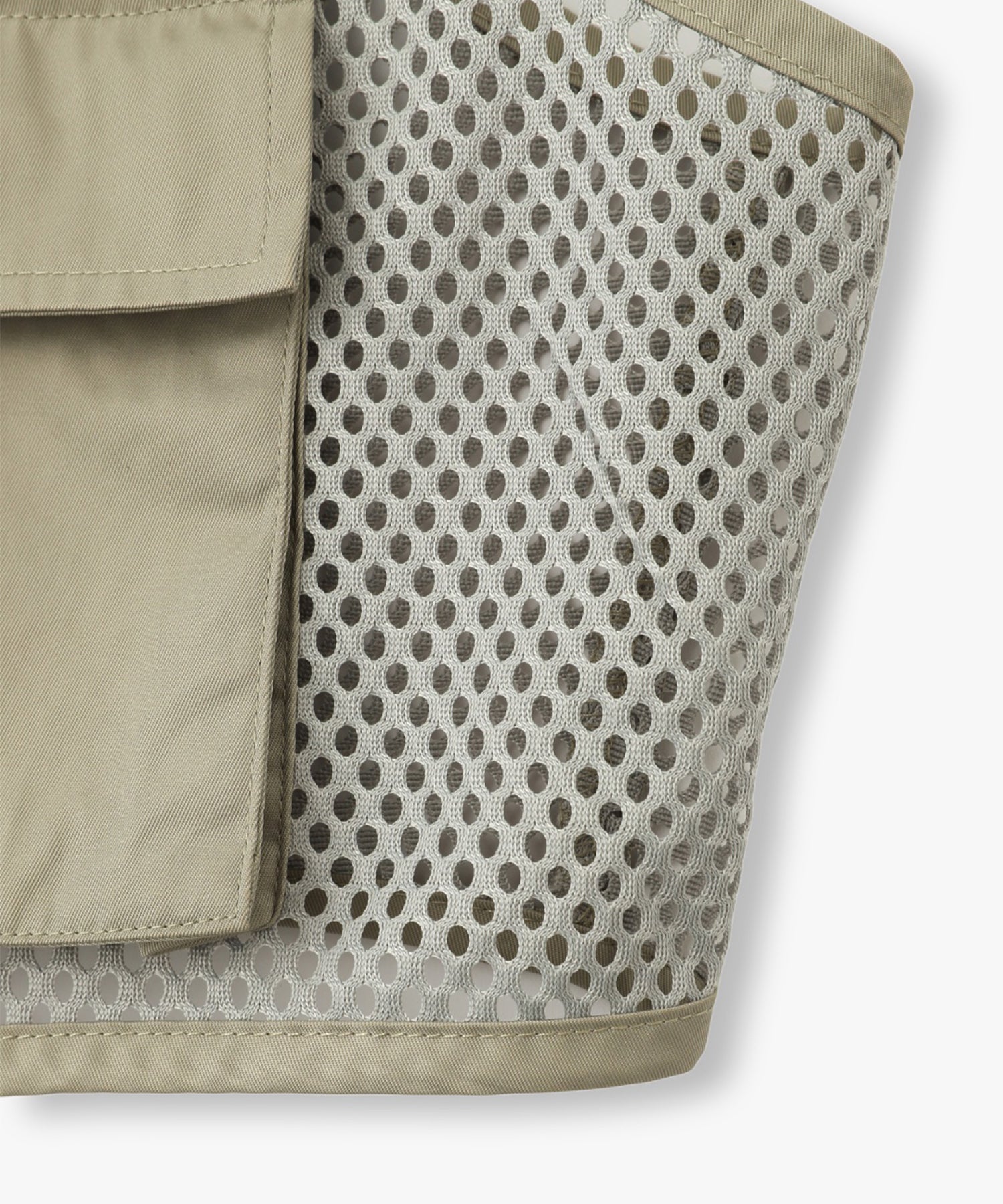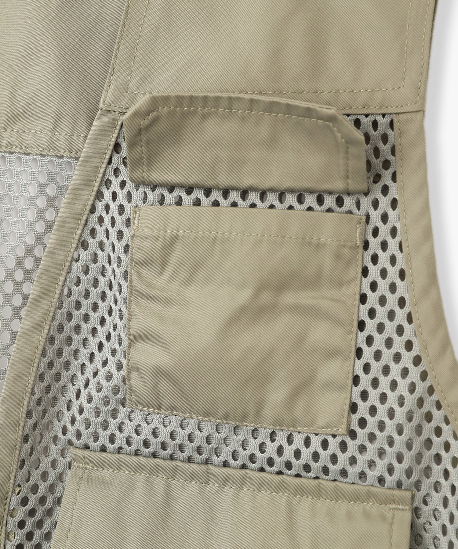 短めの丈感でトレンドライクなシルエットに仕上げたフィッシングベスト。メッシュ生地がどんなアイテムとも馴染みが良く、ストリートな着こなしはもちろん、ニットワンピースなどタイトなシルエットのアイテムとも相性抜群!スタイリングにこなれ感を与えてくれる、ワードローブに1枚持っておきたいアイテムです。