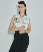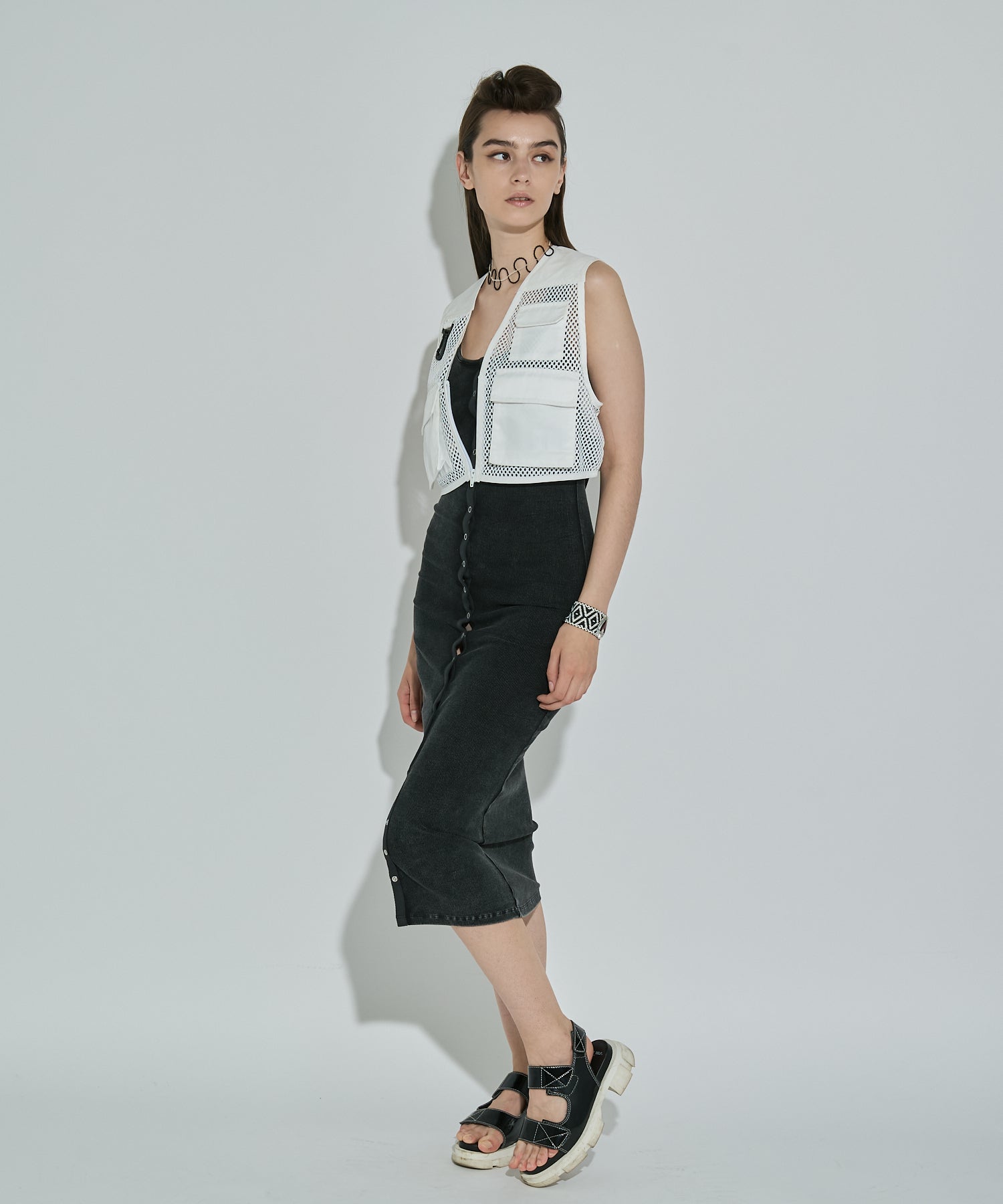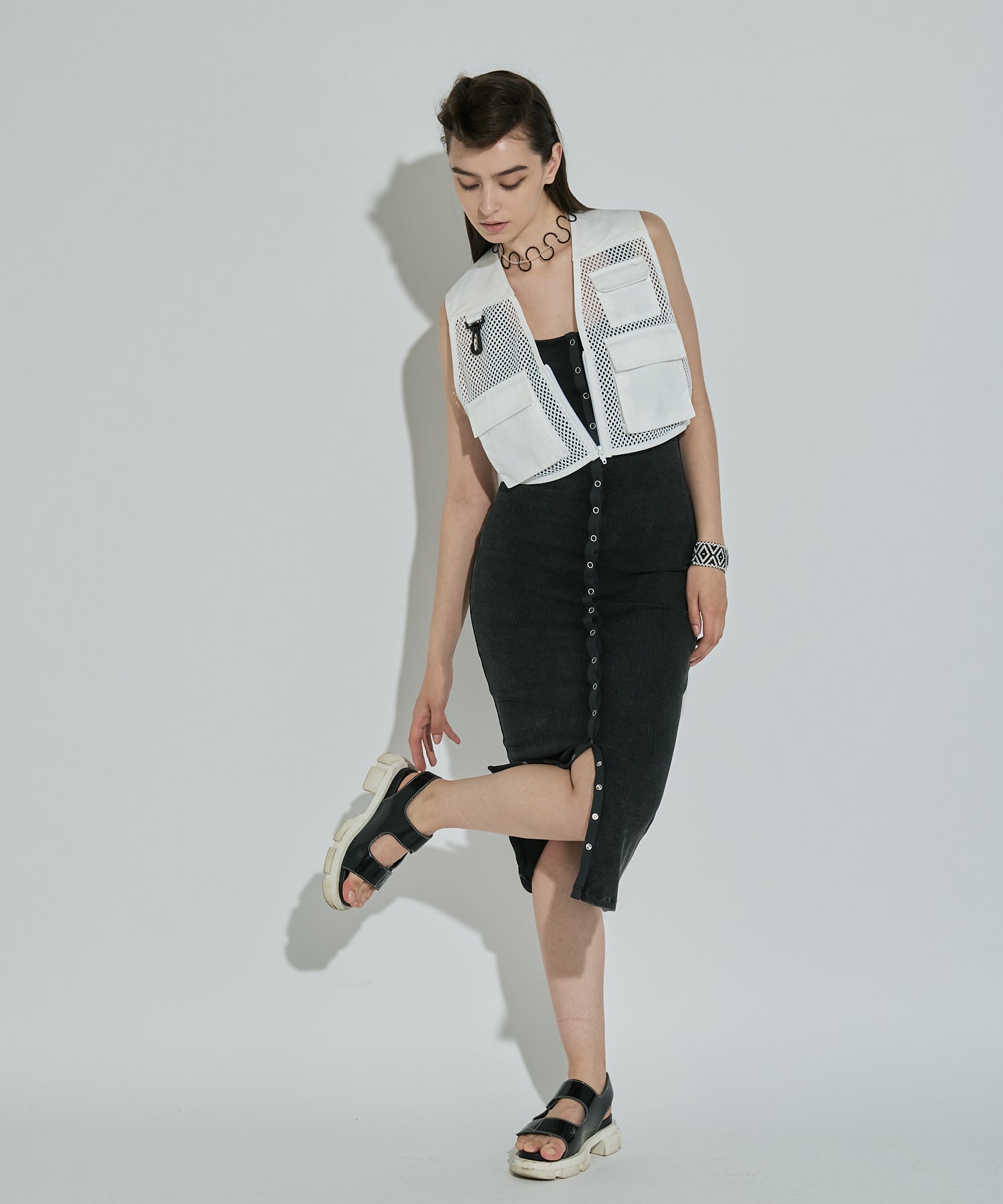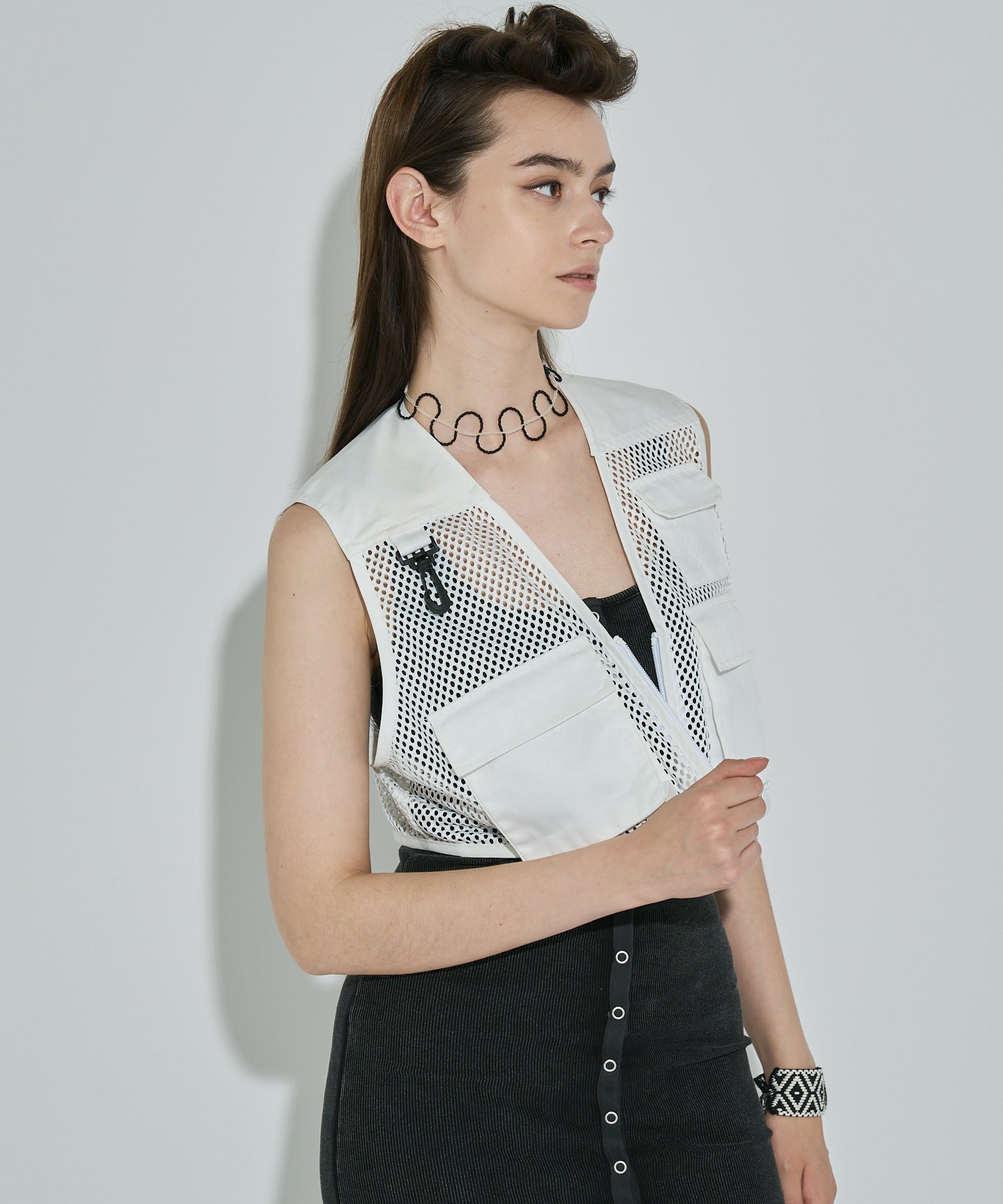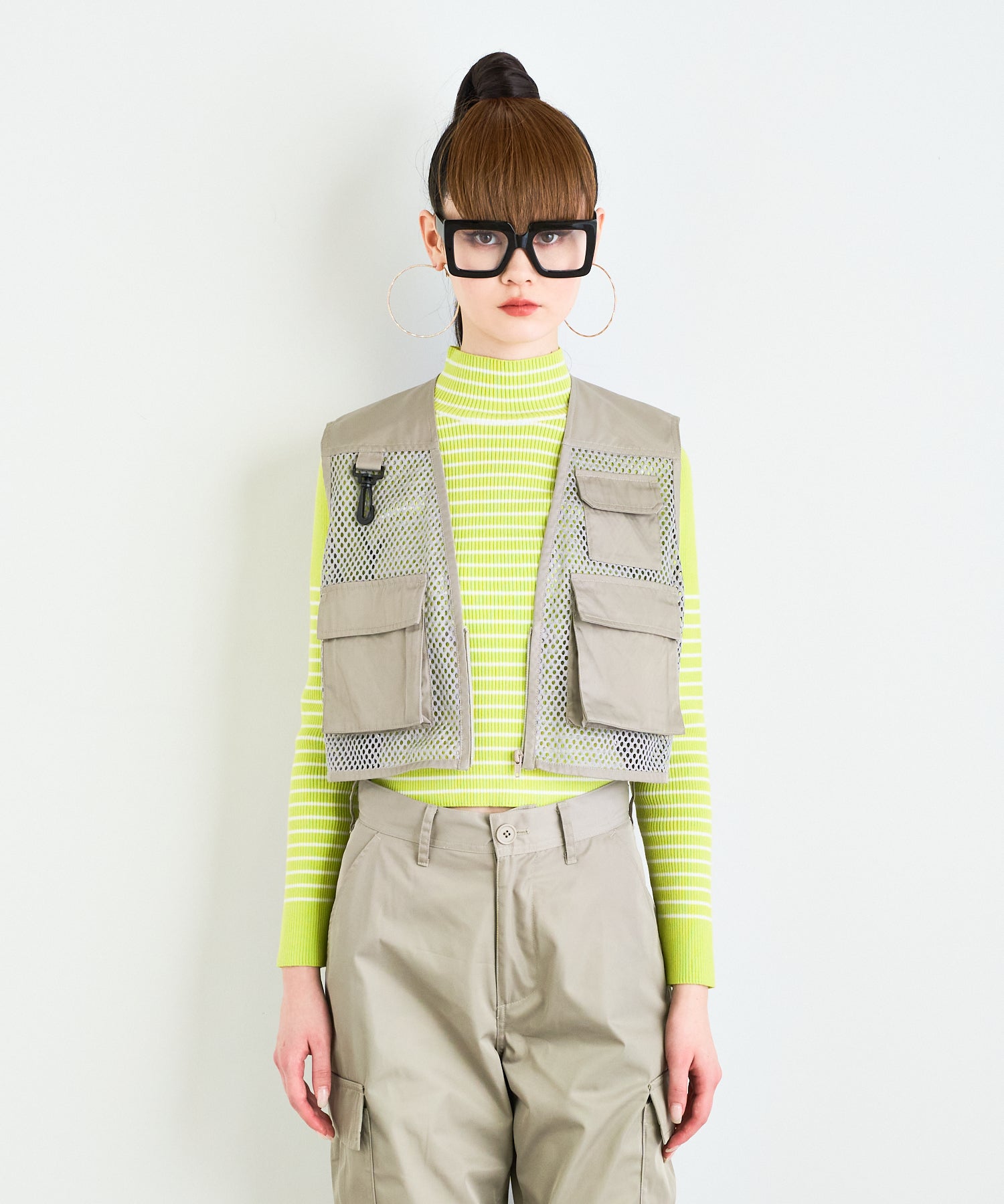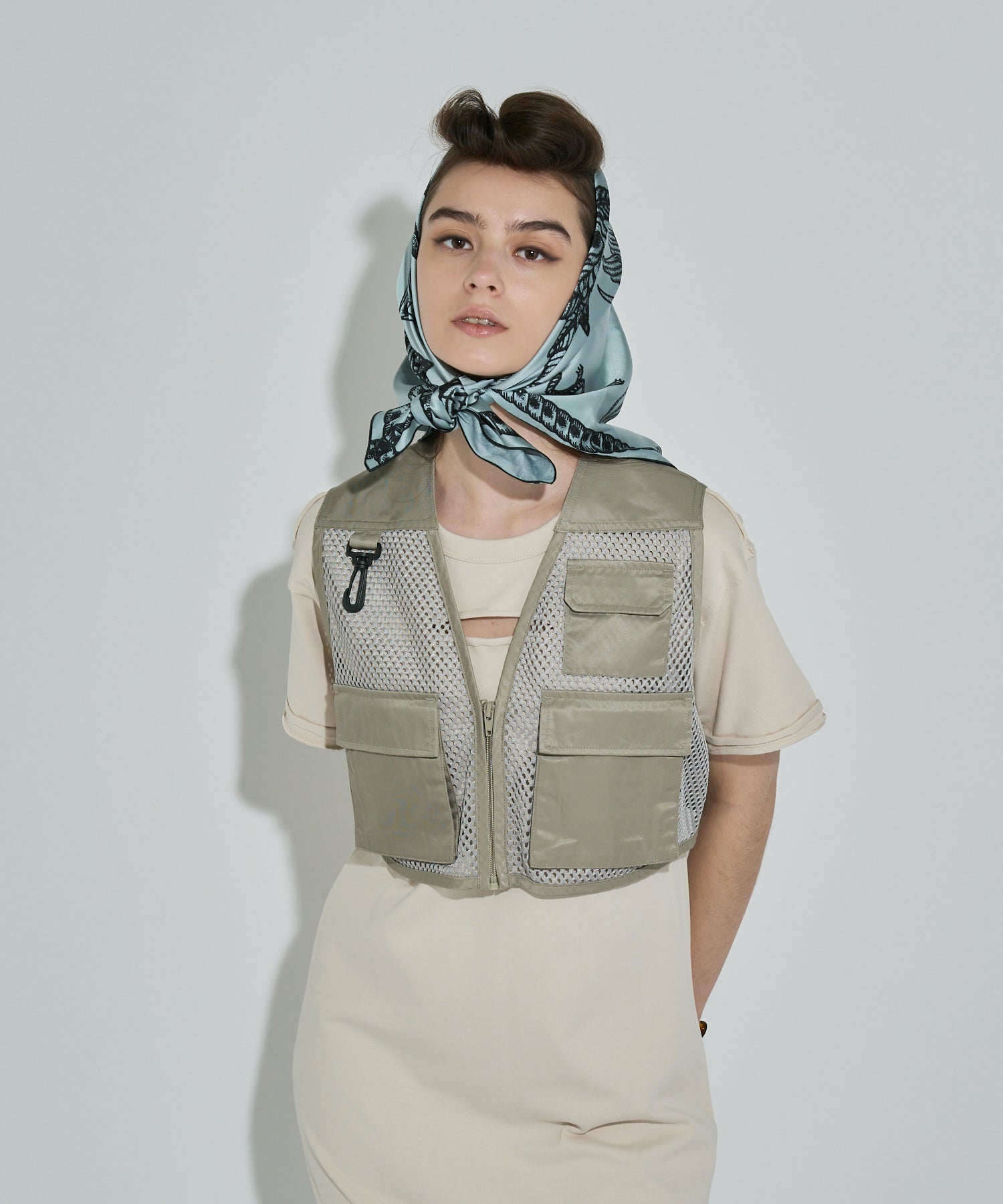 短めの丈感でトレンドライクなシルエットに仕上げたフィッシングベスト。メッシュ生地がどんなアイテムとも馴染みが良く、ストリートな着こなしはもちろん、ニットワンピースなどタイトなシルエットのアイテムとも相性抜群!スタイリングにこなれ感を与えてくれる、ワードローブに1枚持っておきたいアイテムです。