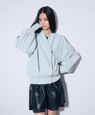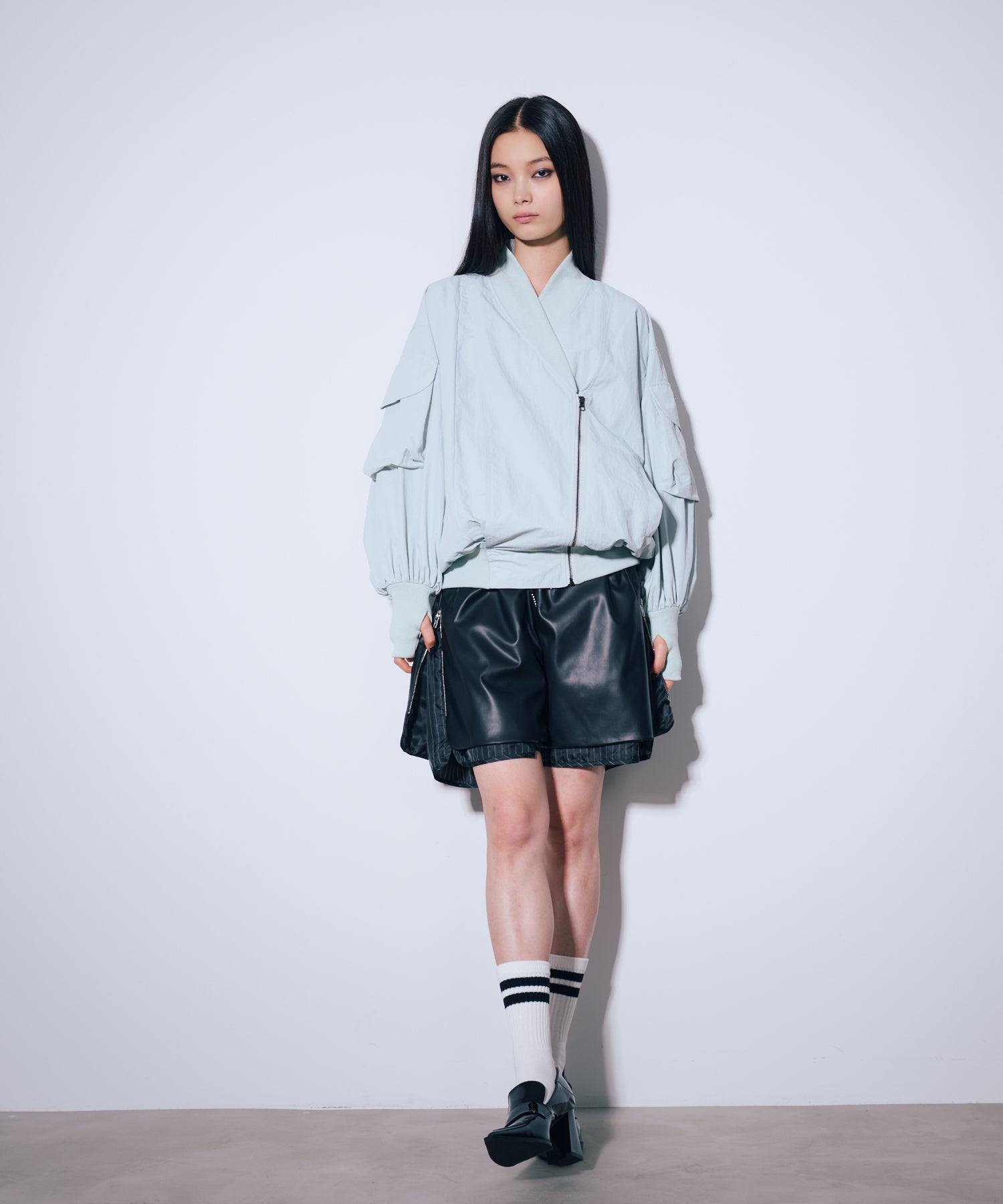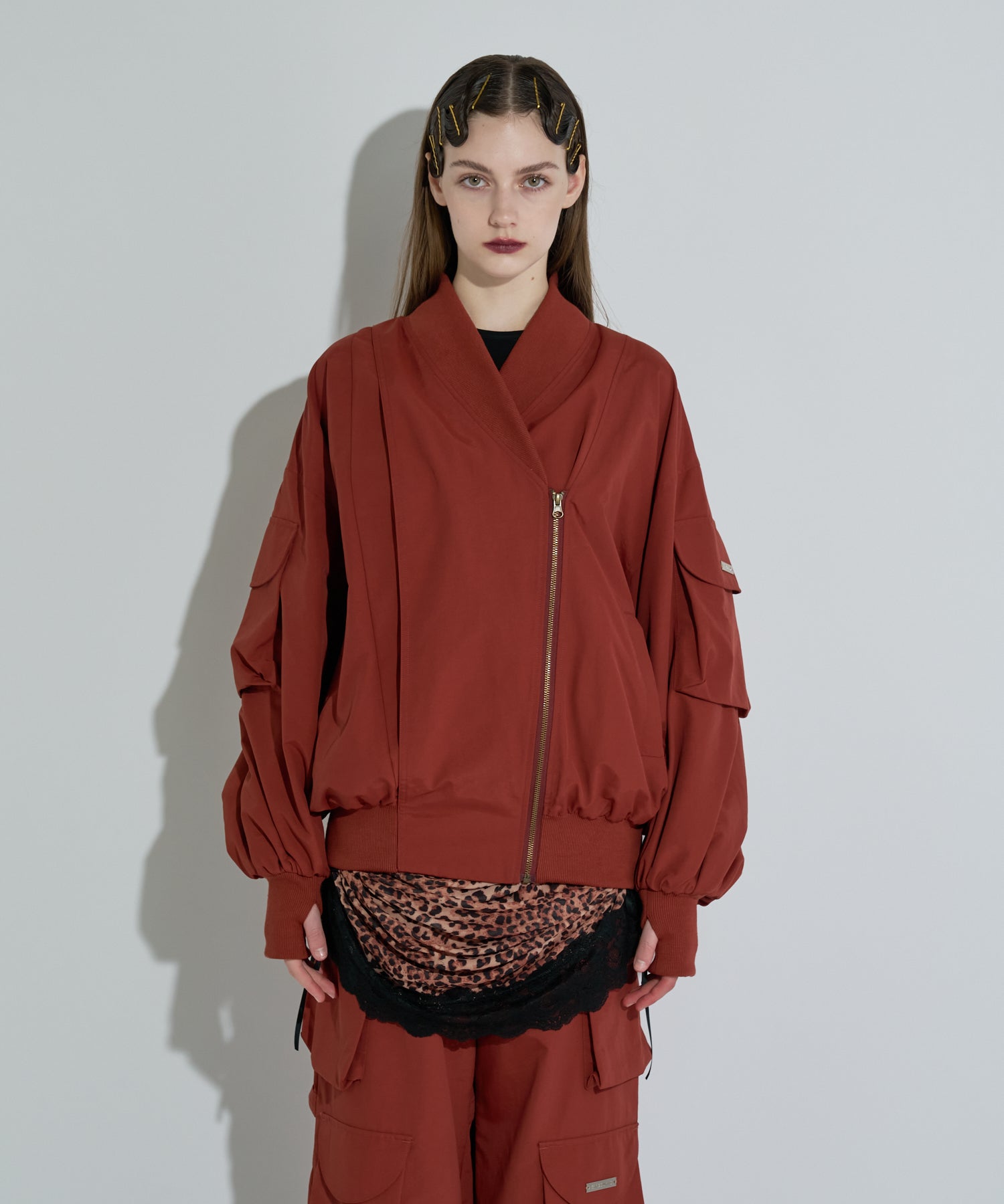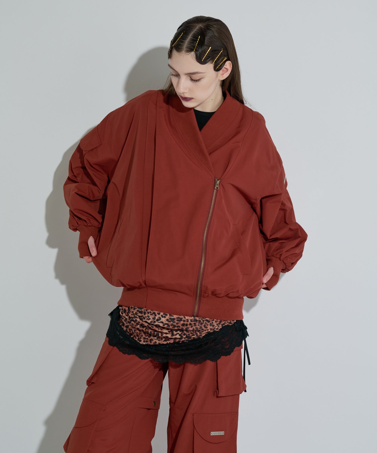 トレンド感のあるボリュームスリーブと、シャープなアシンメトリージップが印象的なナイロンブルゾン。軽やかでありながら程よいハリ感のある素材が、丸みを持たせたシルエットの立体感をより一層引き立ててくれます。襟元と袖口、裾にはリブを効かせて、スポーティさをプラス。ラフに着られるのに、どこかモード感も漂う絶妙なバランスが魅力です。