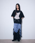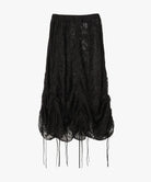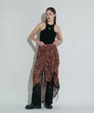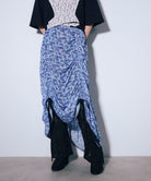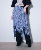 人気のシャーリングスカートが素材をアップデートして再登場!前後左右6箇所にあしらわれたリボンを絞ることで、くしゅっとギャザーを寄せたり、アシンメトリーにアレンジしたりと、シルエットを自分好みにクリエイトすることができる360度どこから見ても可愛い1着。裾には繊細なレースを施し、フェミニンさをさらにプラス。3色すべて異なる素材を使用した贅沢なラインナップ。SAXは透け感のあるシフォンに花柄モチーフを散りばめ、爽やかで軽やかな印象に。同じくシフォン素材したCAMELは、レオパード柄でヴィンテージライクな雰囲気に。ブラックは繊細なレースを使用し、センシュアルでモードな佇まいに仕上げています。ウエストは総ゴム仕様で着心地も快適。カジュアルなTシャツやスウェット、ニットとの相性も良く、シーズンレスに活躍する一枚です。