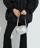 コロンとしたキューブ型のフォルムが愛らしいショルダーバッグ。 フロントに大きく施された「anna sui nyc」のエンボスロゴがポイントで、同色でまとめながらもブランドらしさを存分にアピールするデザイン。シボ感のある上質な合成皮革を使用しており、柔らかく手に馴染む質感と、軽量で扱いやすい実用性を両立。 しっかりとマチがあるため、コンパクトな見た目以上の収納力を発揮し、デイリーユースにぴったりです。 存在感がありながらもどんなスタイルにも馴染みやすく、シンプルになりがちなコーディネートのアクセントとして活躍します。