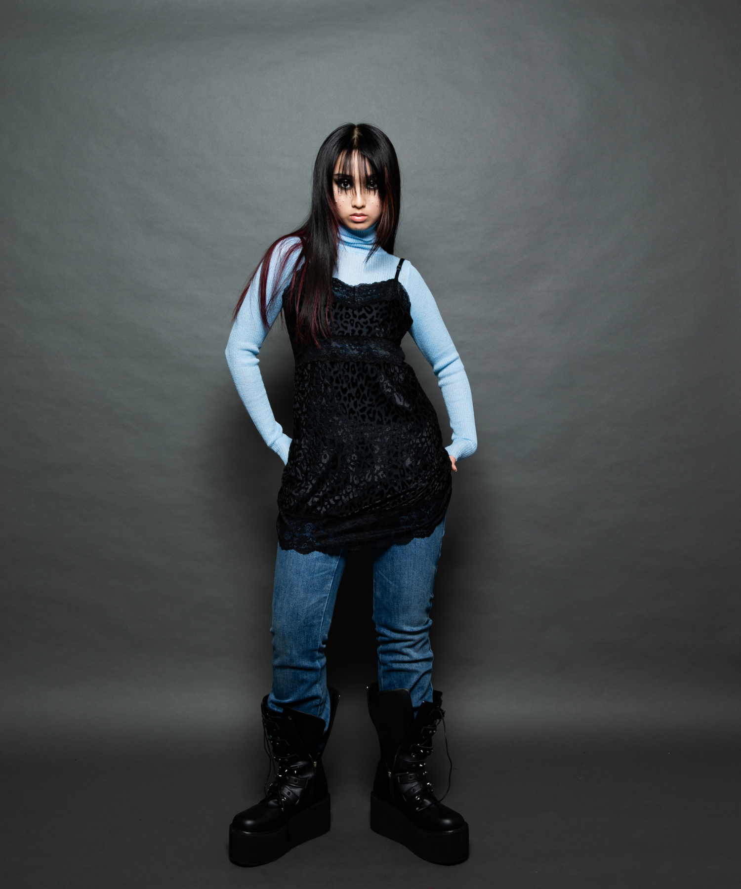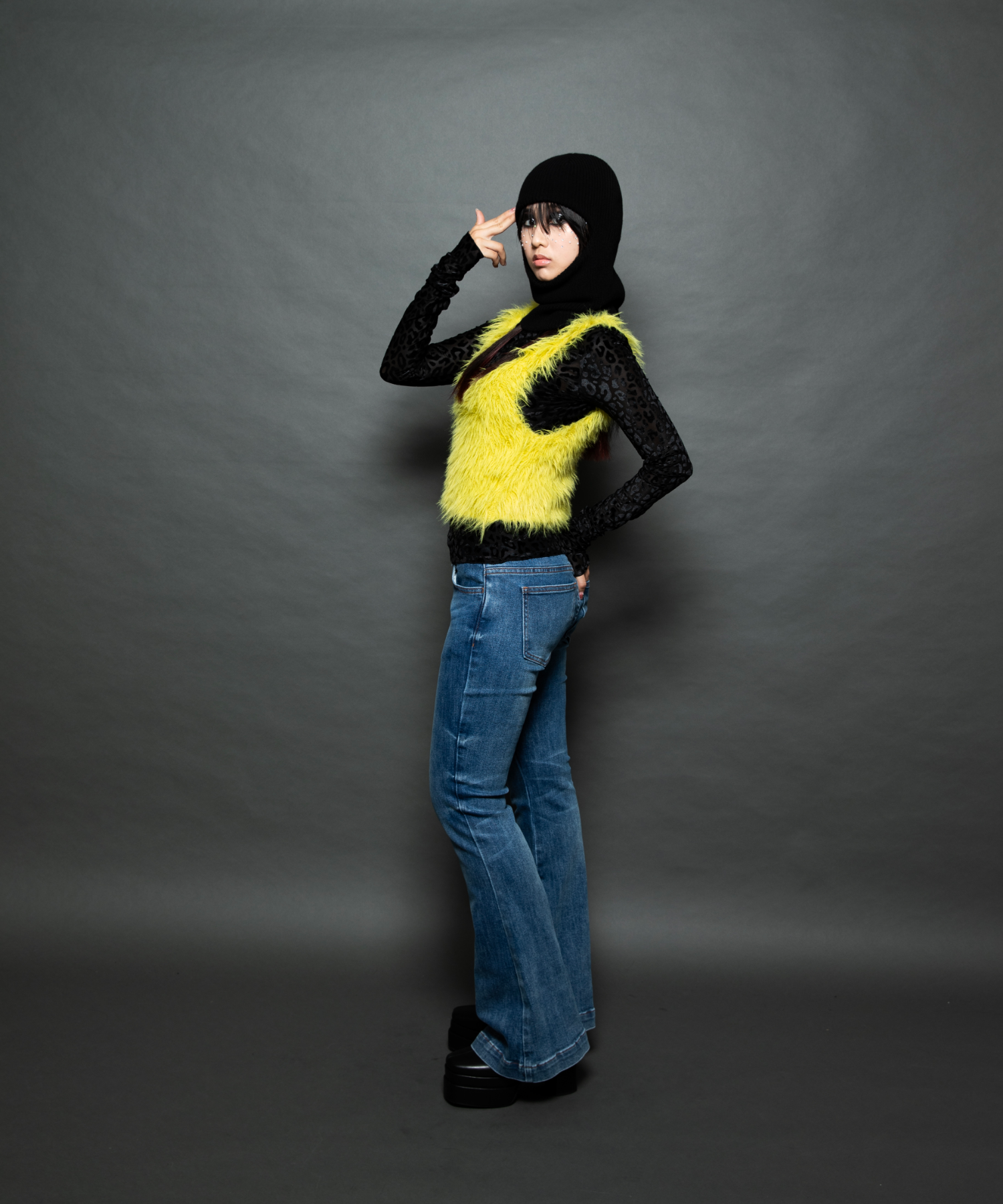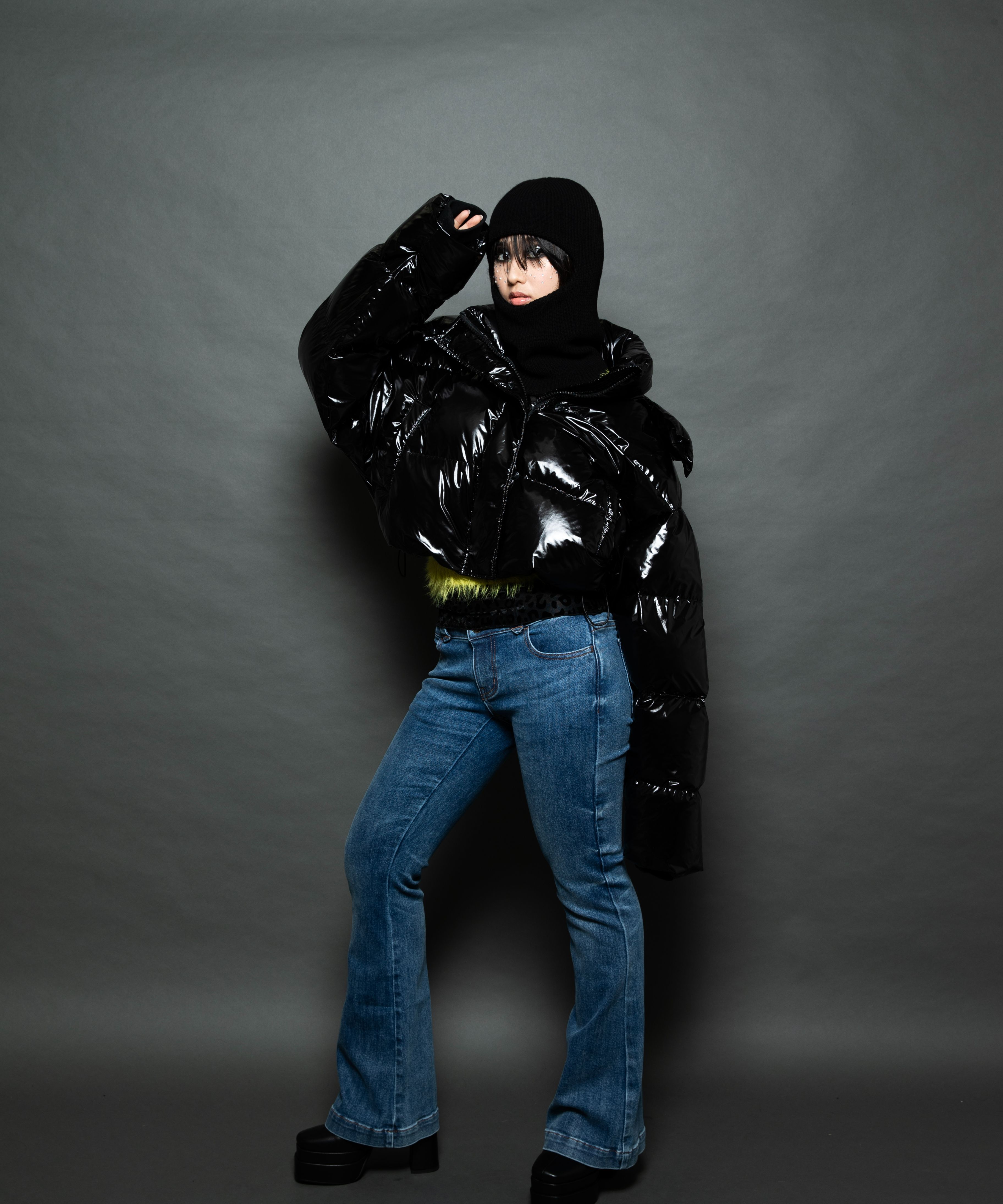 両サイドにスラッシュが入った、個性的なバギーデニムパンツです。中にレギンスやタイツを合わせてレイヤードにしたり、一枚で履いて、肌見せも出来ます。
