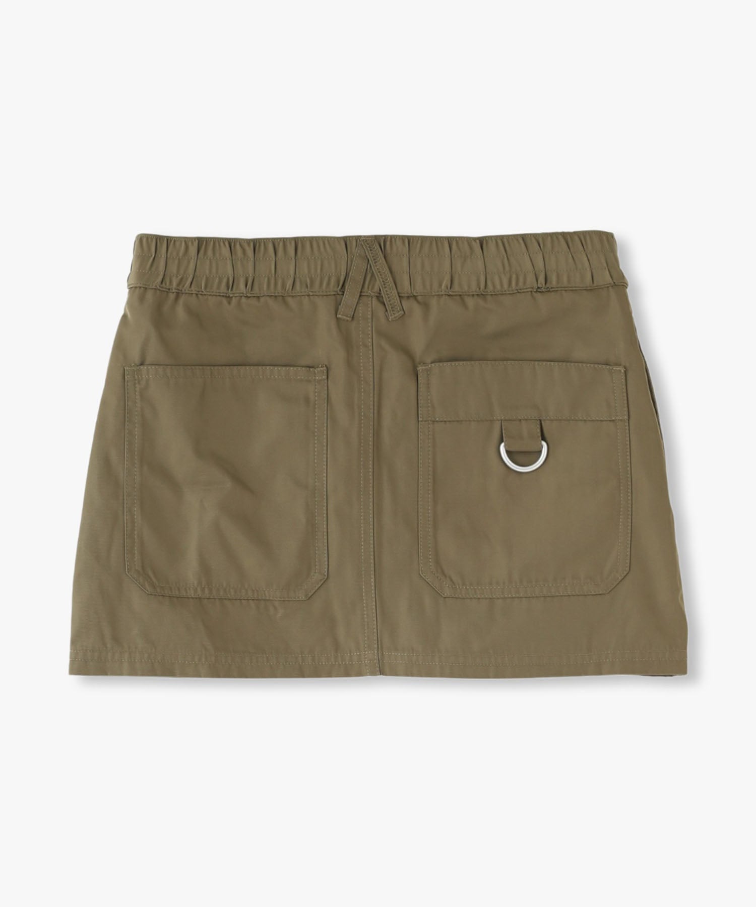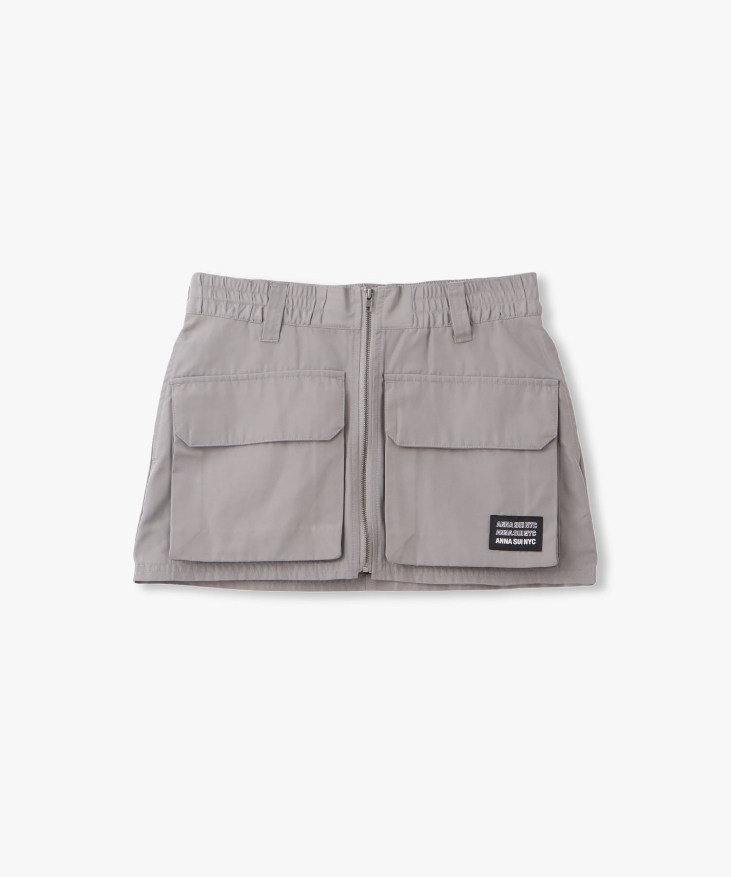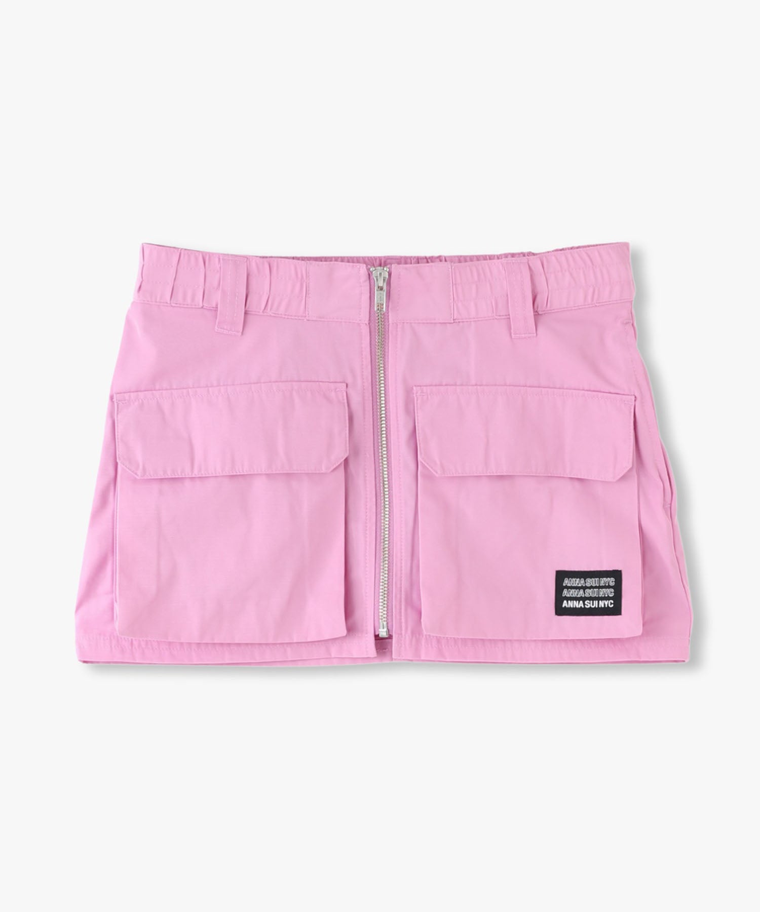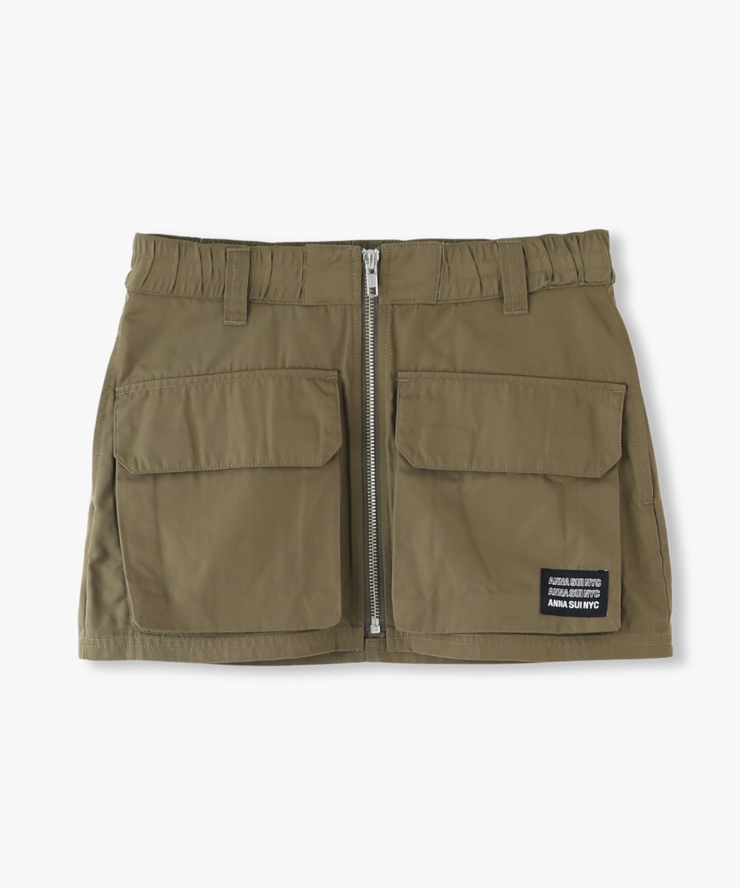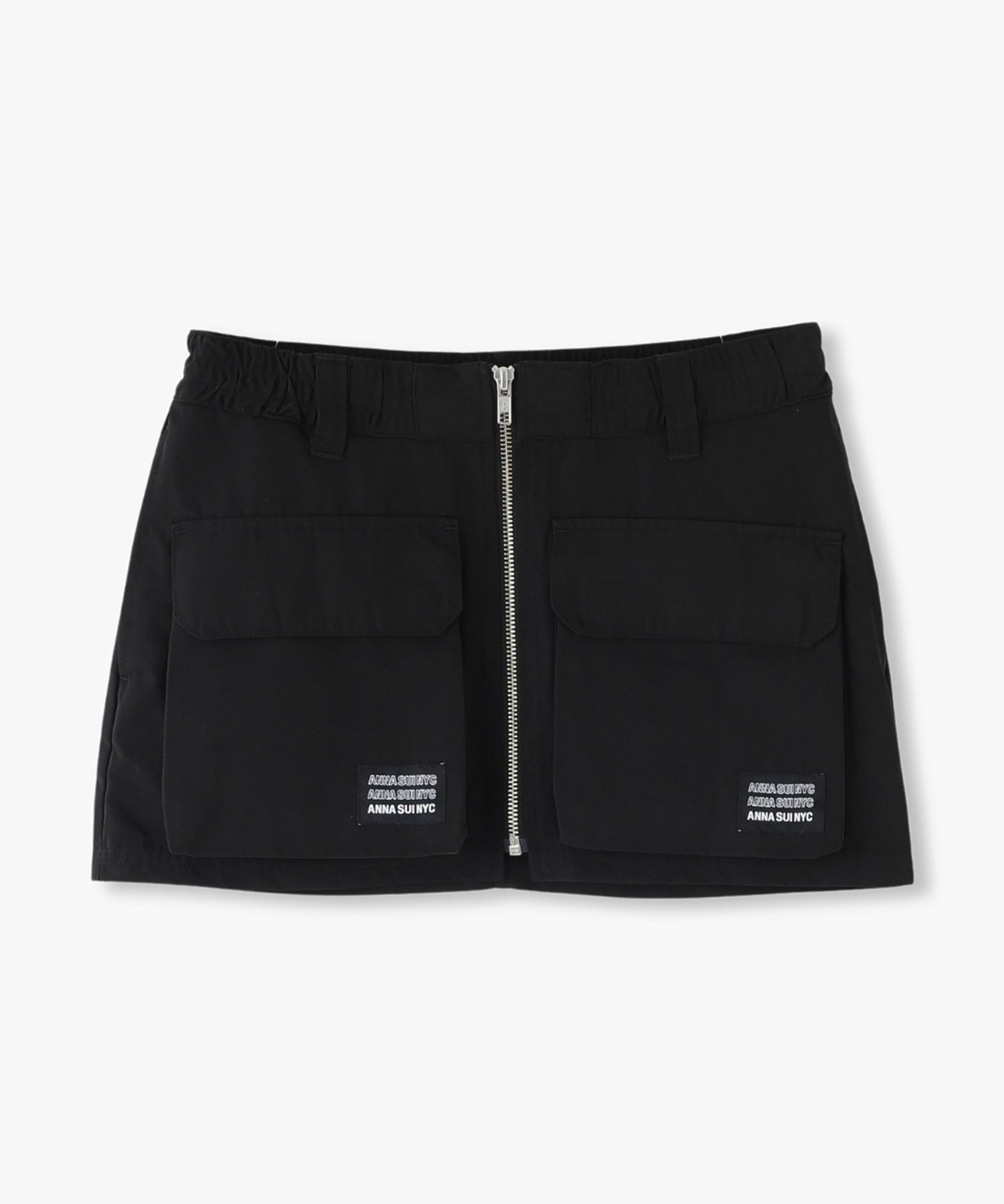 Y2Kな気分のショートスカート。前の大きなポケットがアクセントのスカートは、スニーカーやロングブーツなどと合わせると、カッコ良いですね。今年はパンツの上から重ね着もありです!