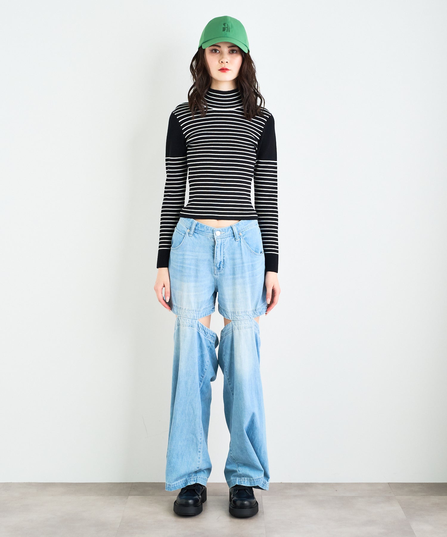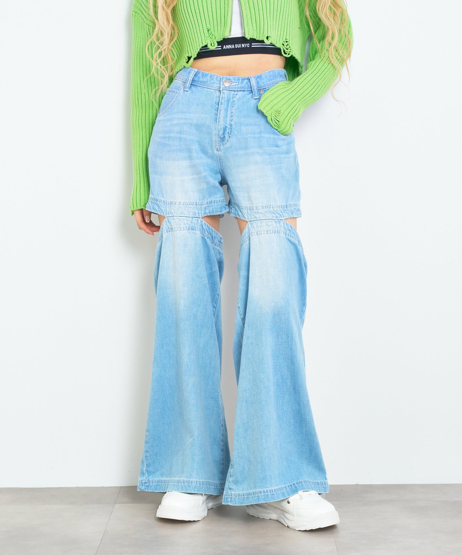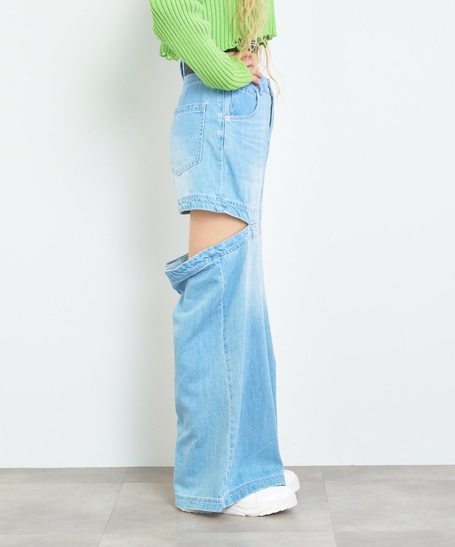肌見せが目を引くカットアウトデザインデニム。落ち感がきれいに見えるようこだわった程よい厚みのデニムがこなれ感を演出してくれます。シンプルにTシャツと合わせたり、レースタイツとあわせてガーリーに着こなしたりとどんなスタイルにも馴染むアイテムです◎