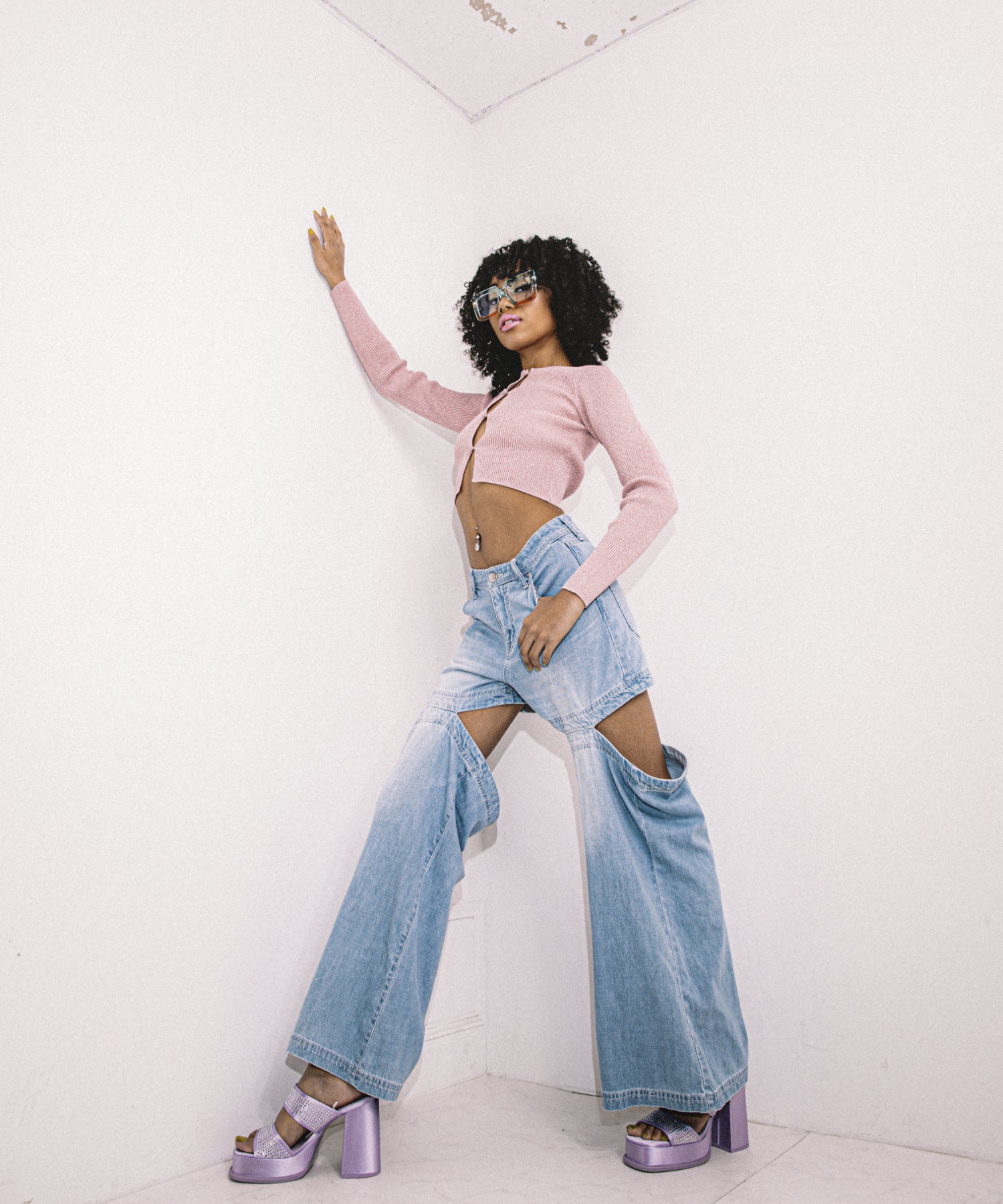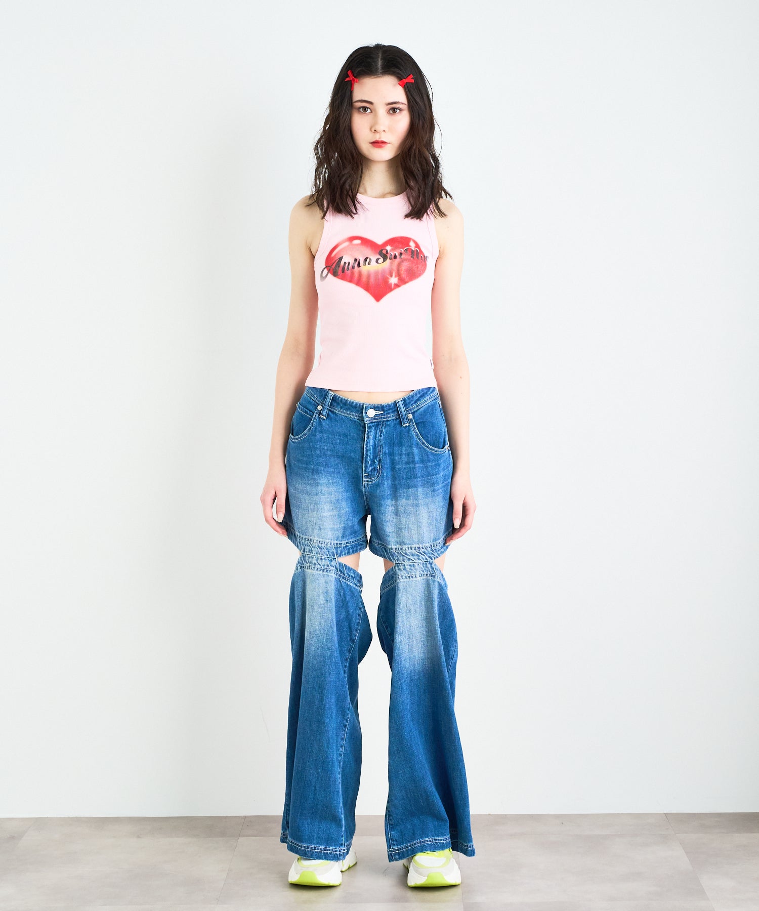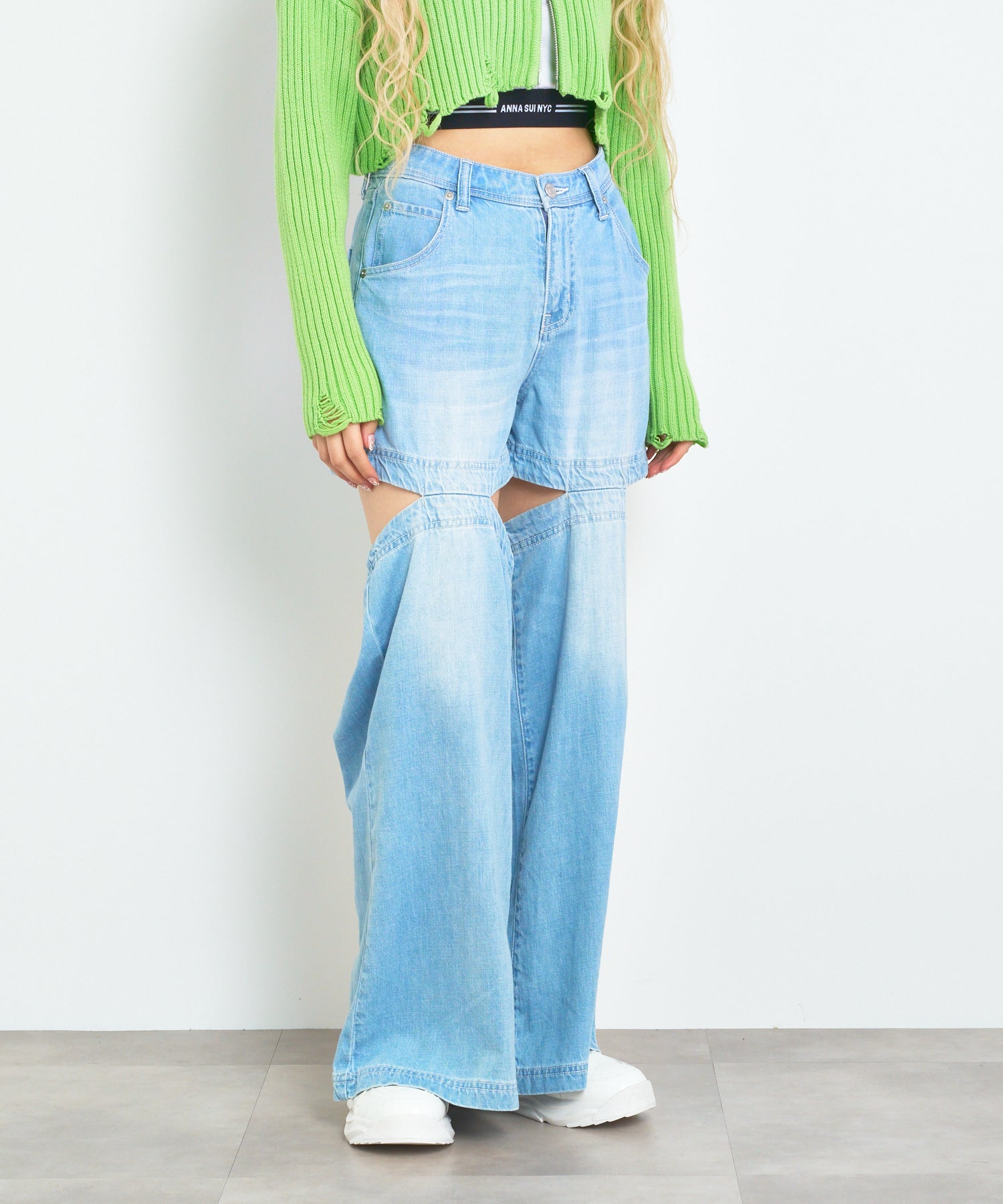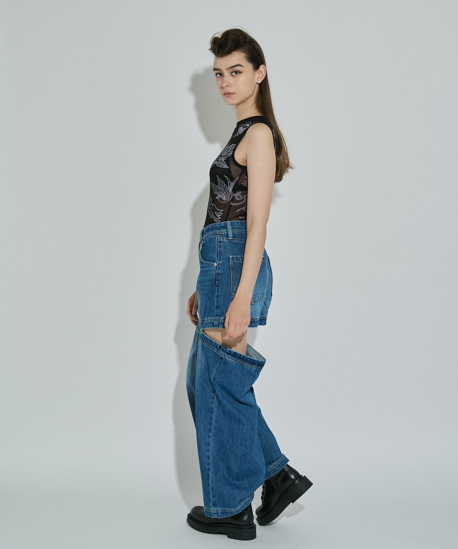 肌見せが目を引くカットアウトデザインデニム。落ち感がきれいに見えるようこだわった程よい厚みのデニムがこなれ感を演出してくれます。シンプルにTシャツと合わせたり、レースタイツとあわせてガーリーに着こなしたりとどんなスタイルにも馴染むアイテムです◎