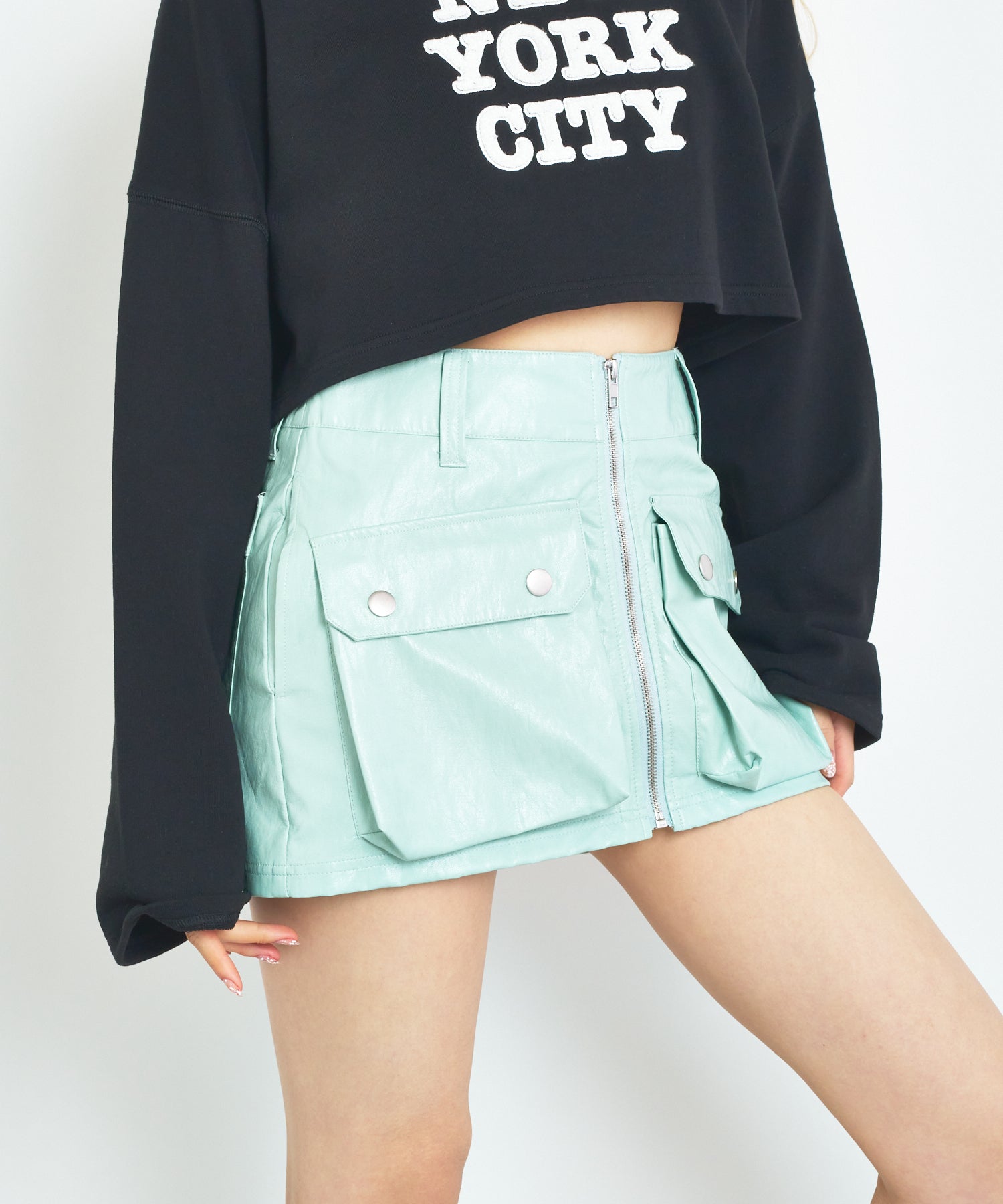 RETROフェイクレザーショートスカート