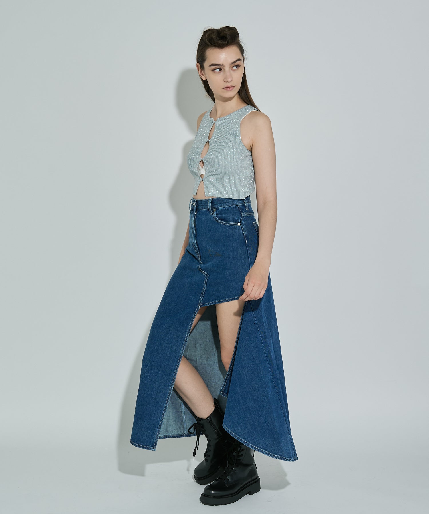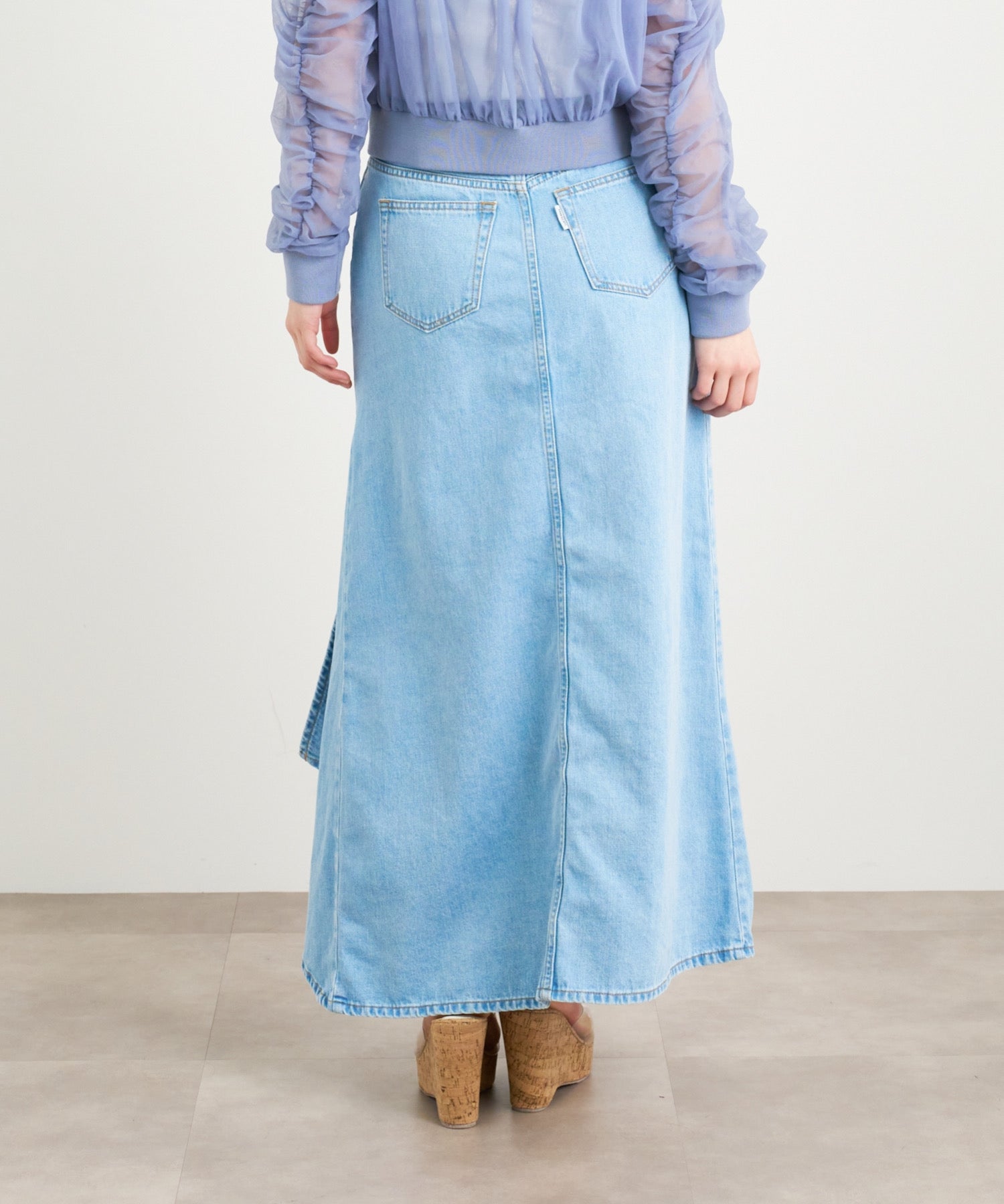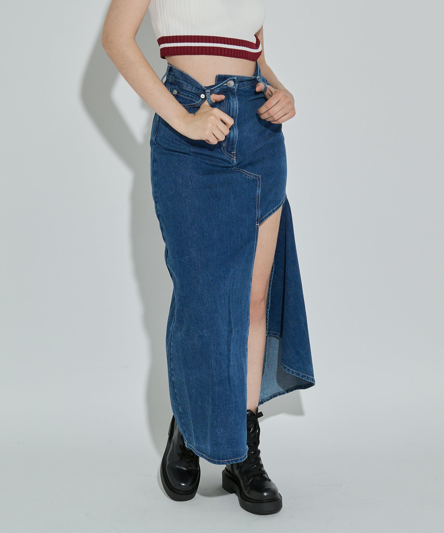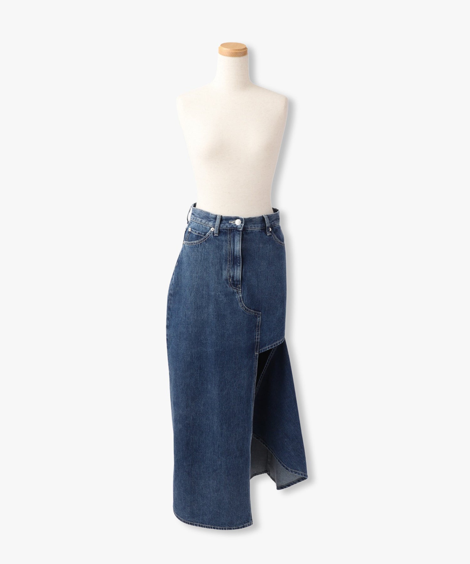 アシンメトリーカッティングヘムデニムロングスカート