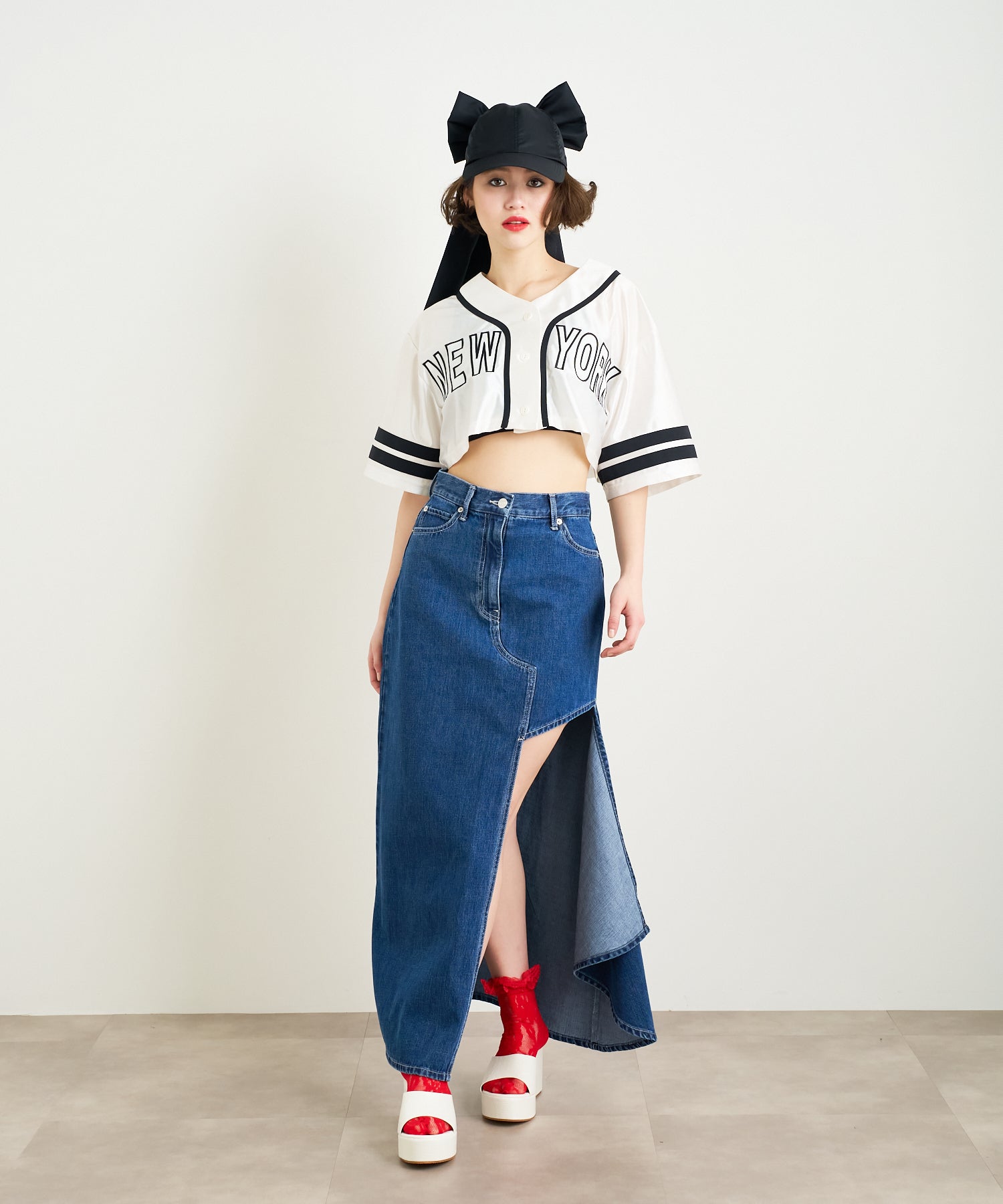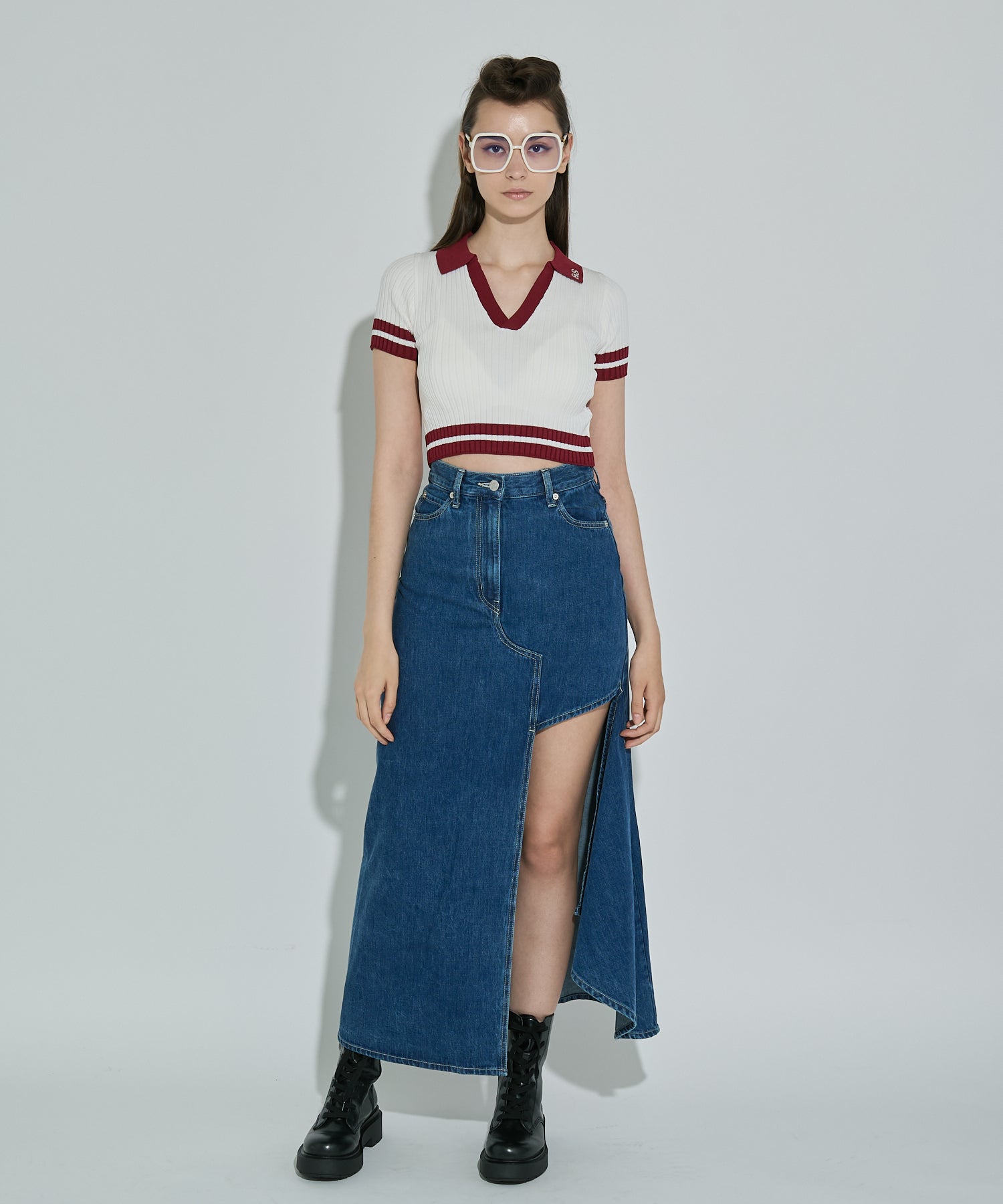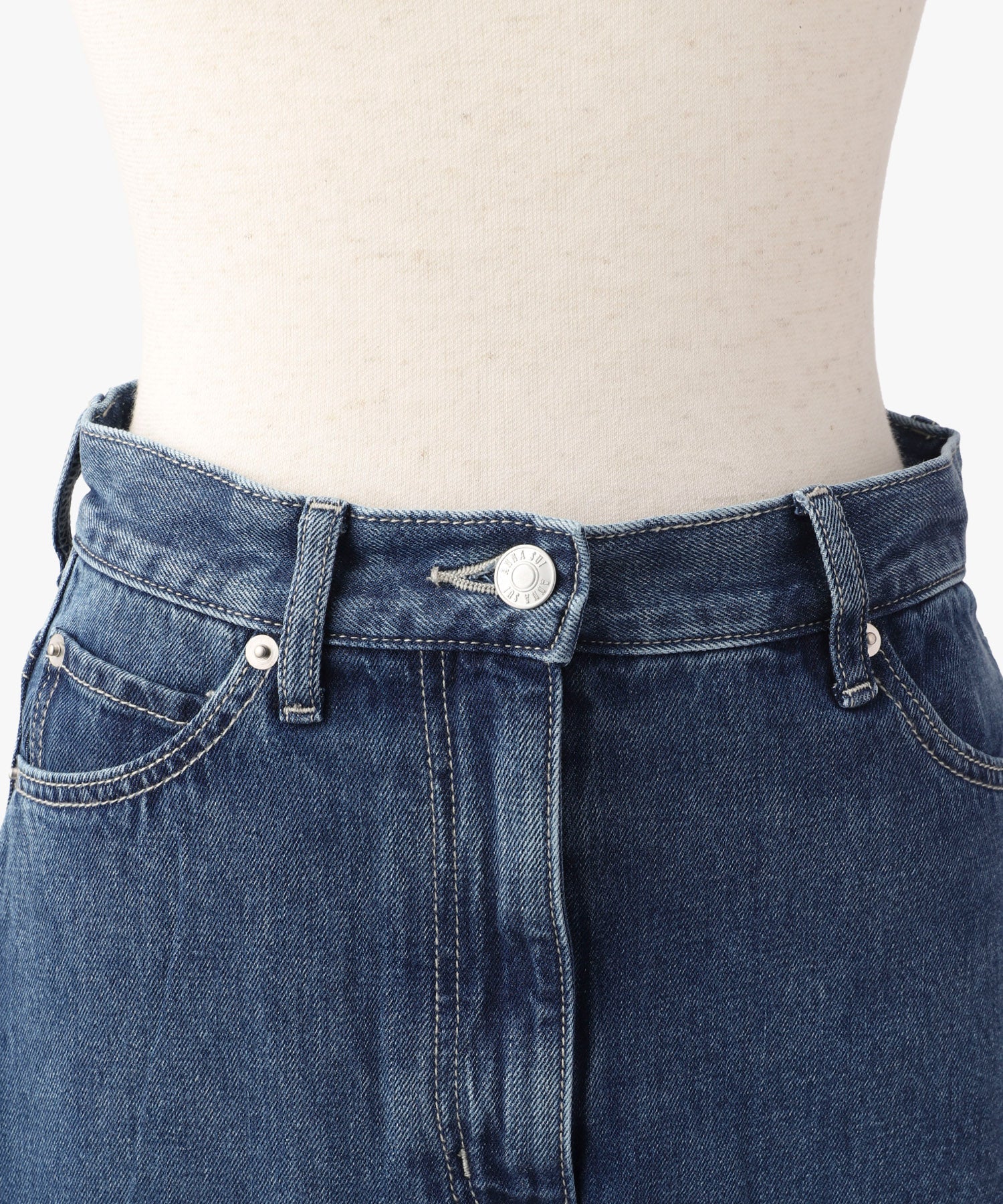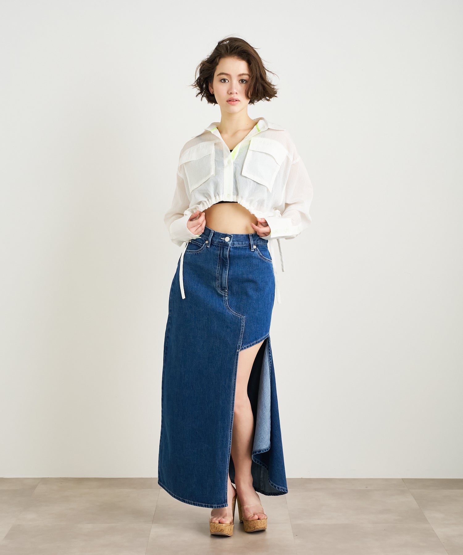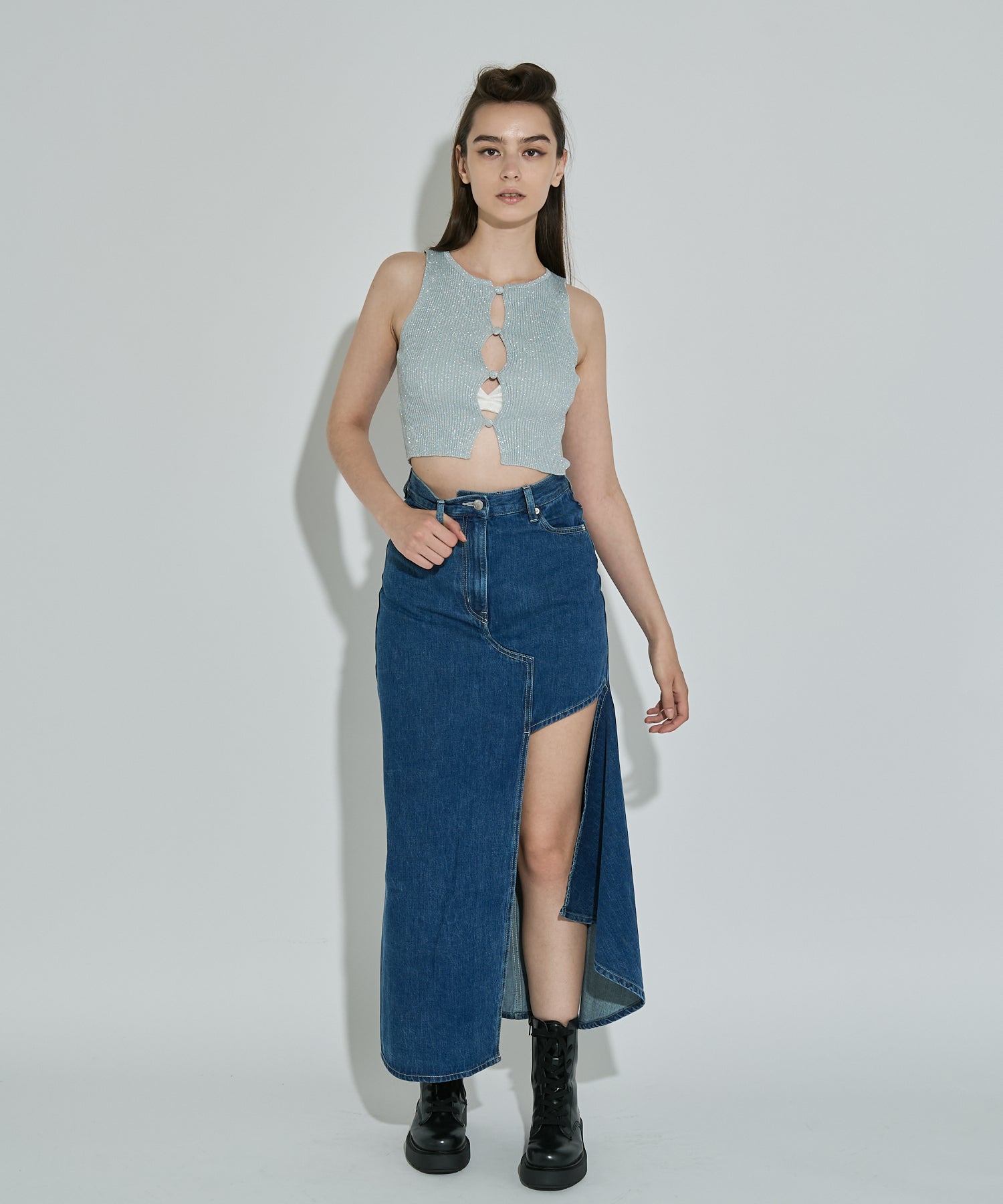 アシンメトリーカッティングヘムデニムロングスカート