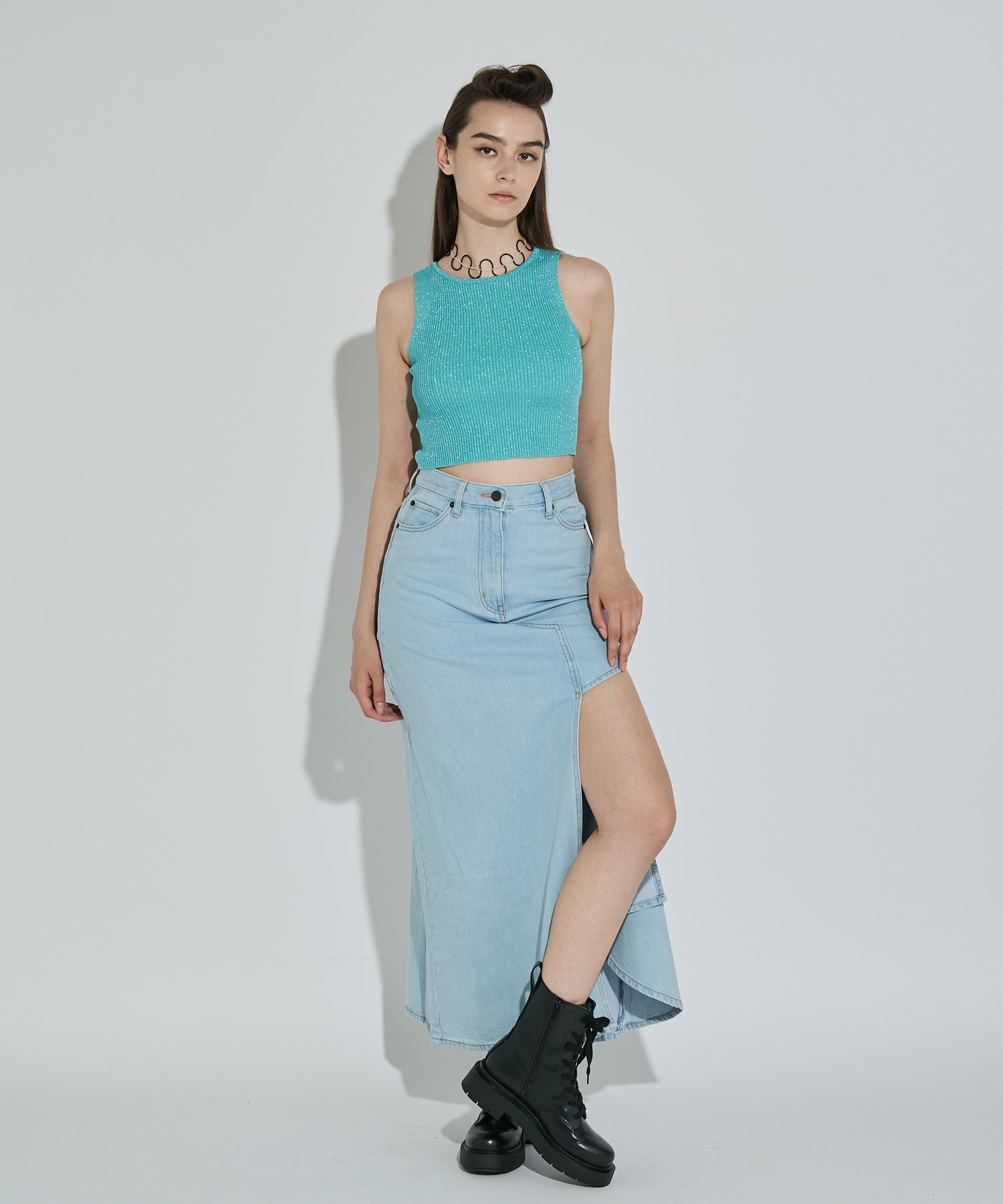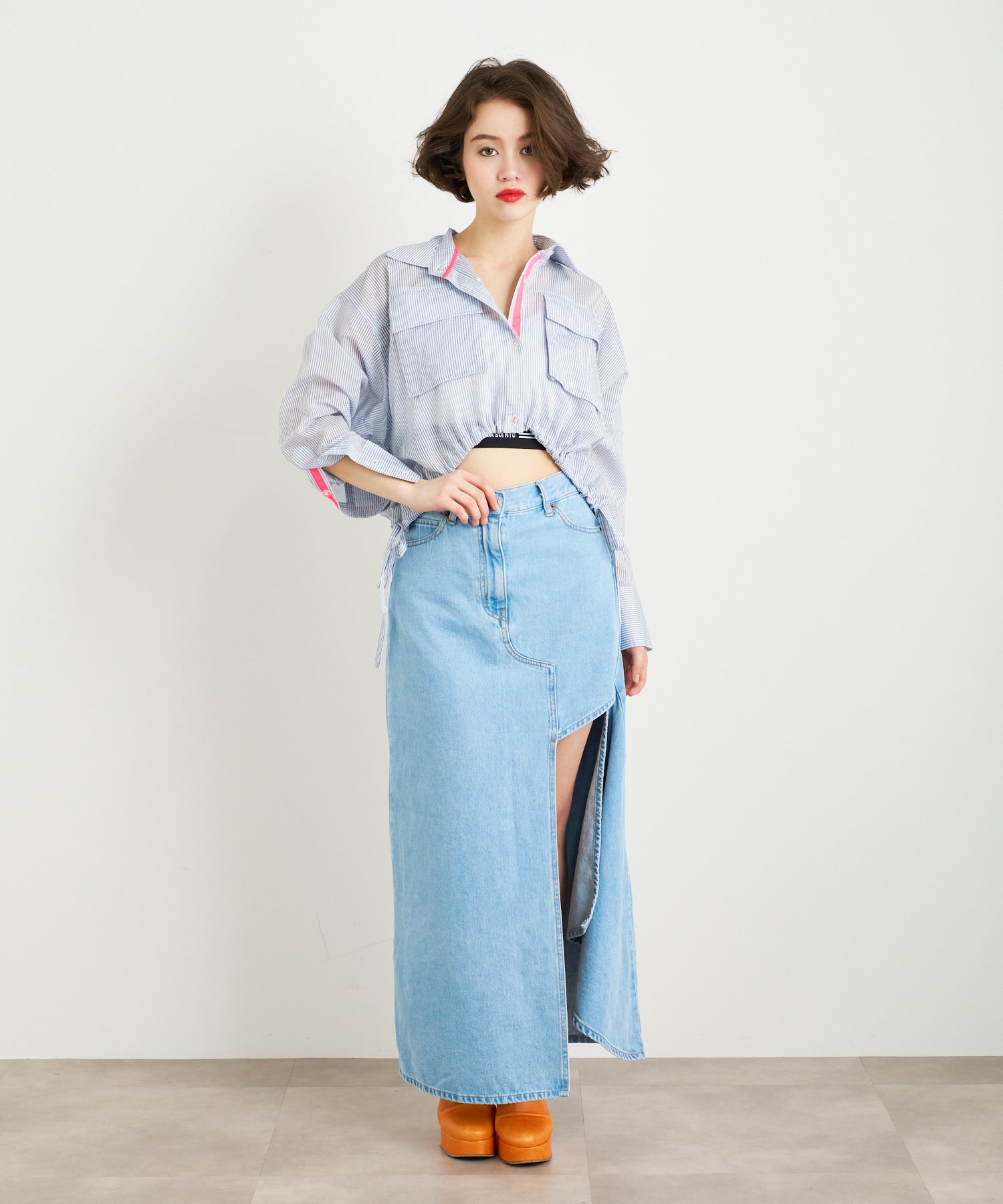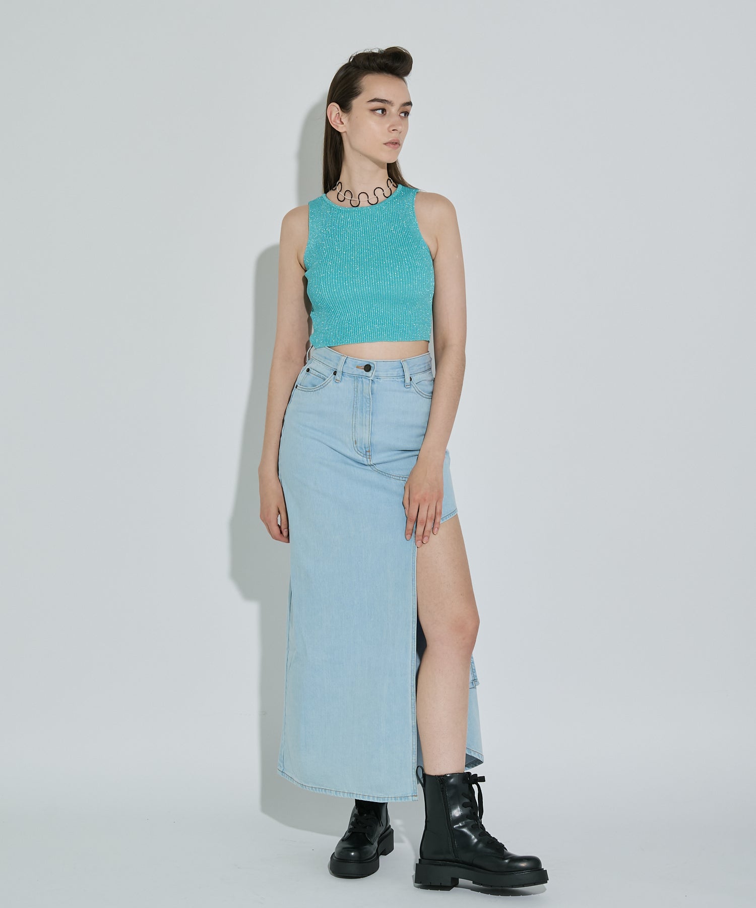 大胆に入ったサイドのスリットが特徴なデニムロングスカート。スリットが入っていることによって重たい印象になりやすいデニムアイテムも軽やかな印象に仕上げてくれます。どんなトップスにも合わせやすいマルチなアイテムです◎