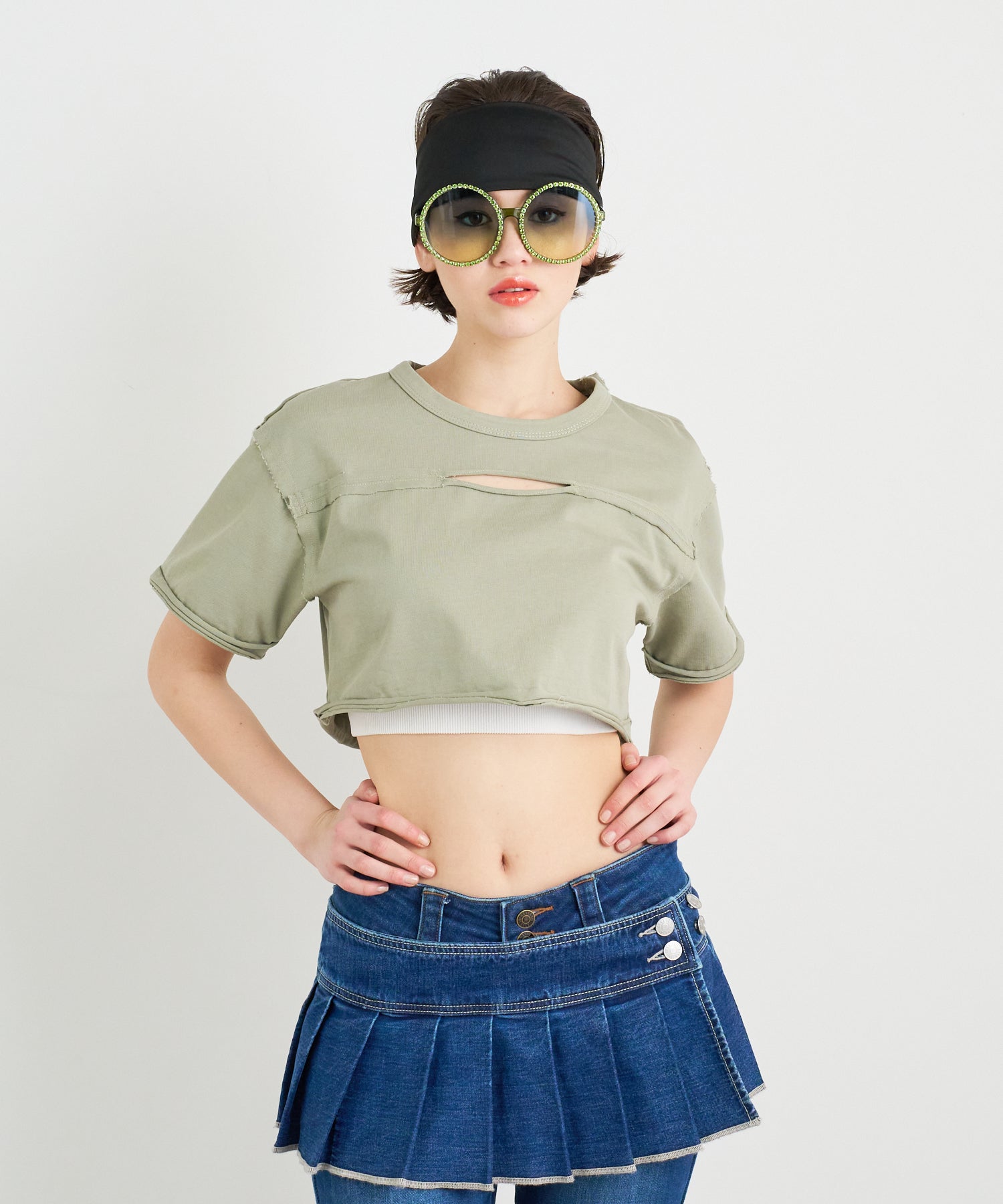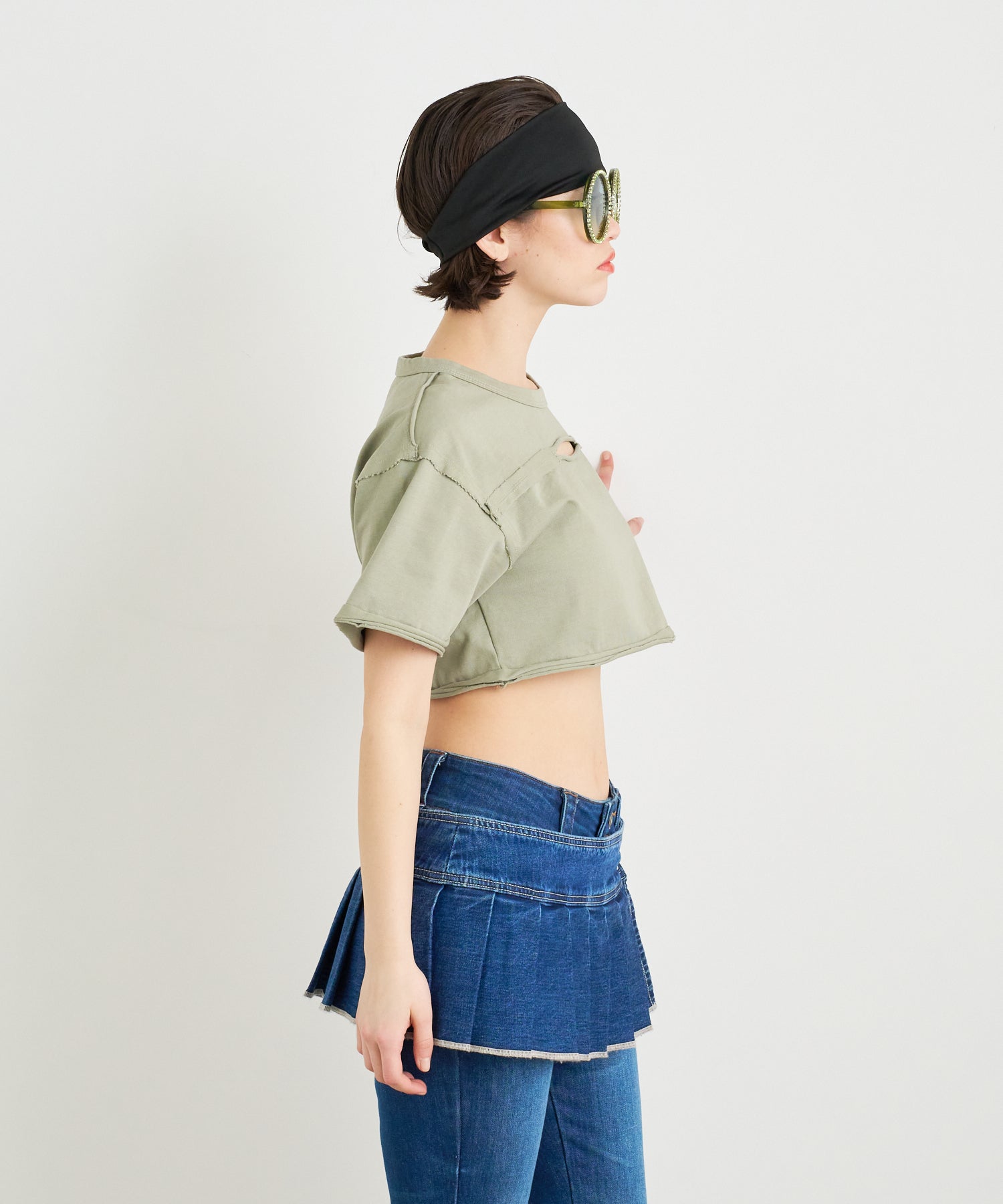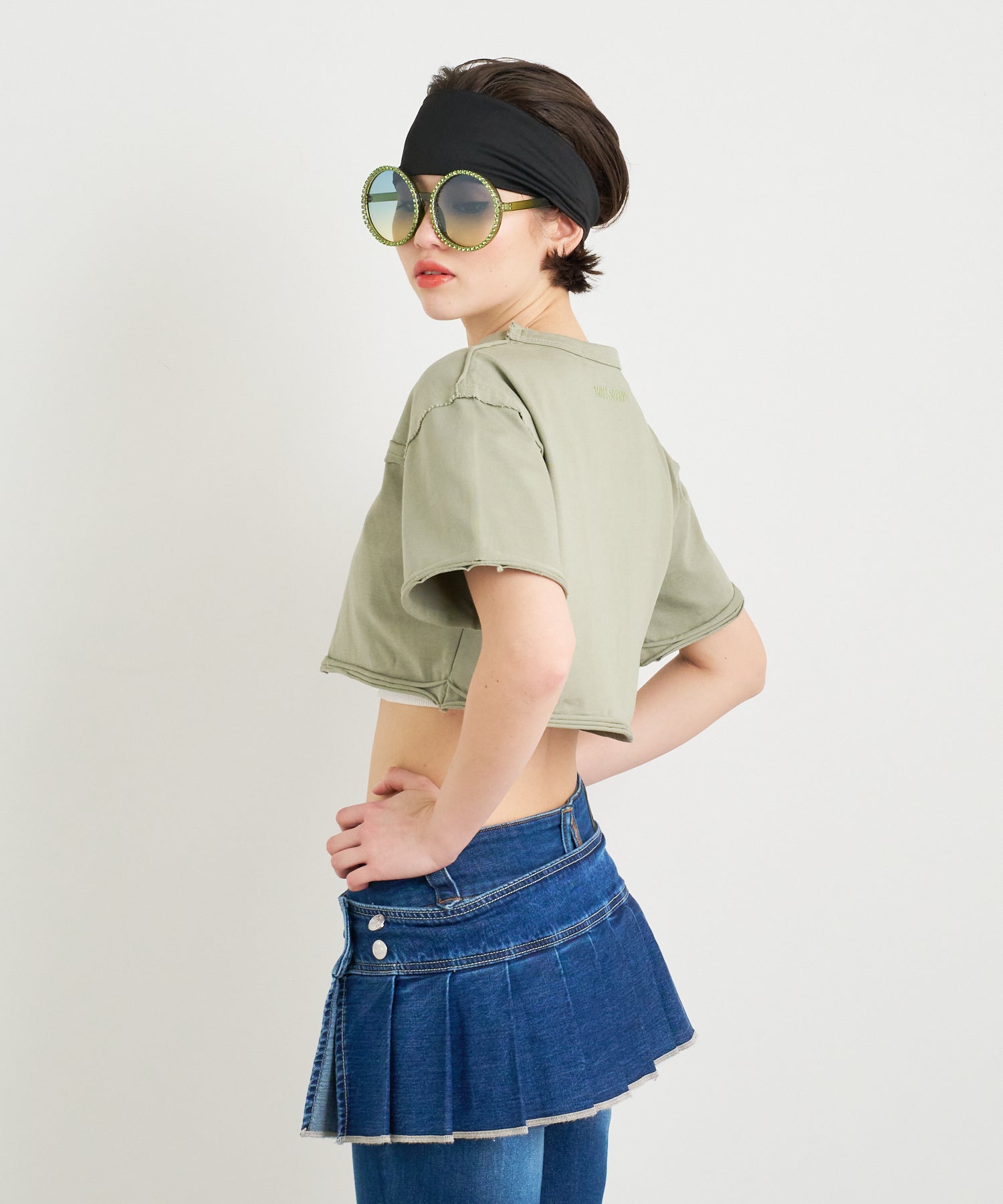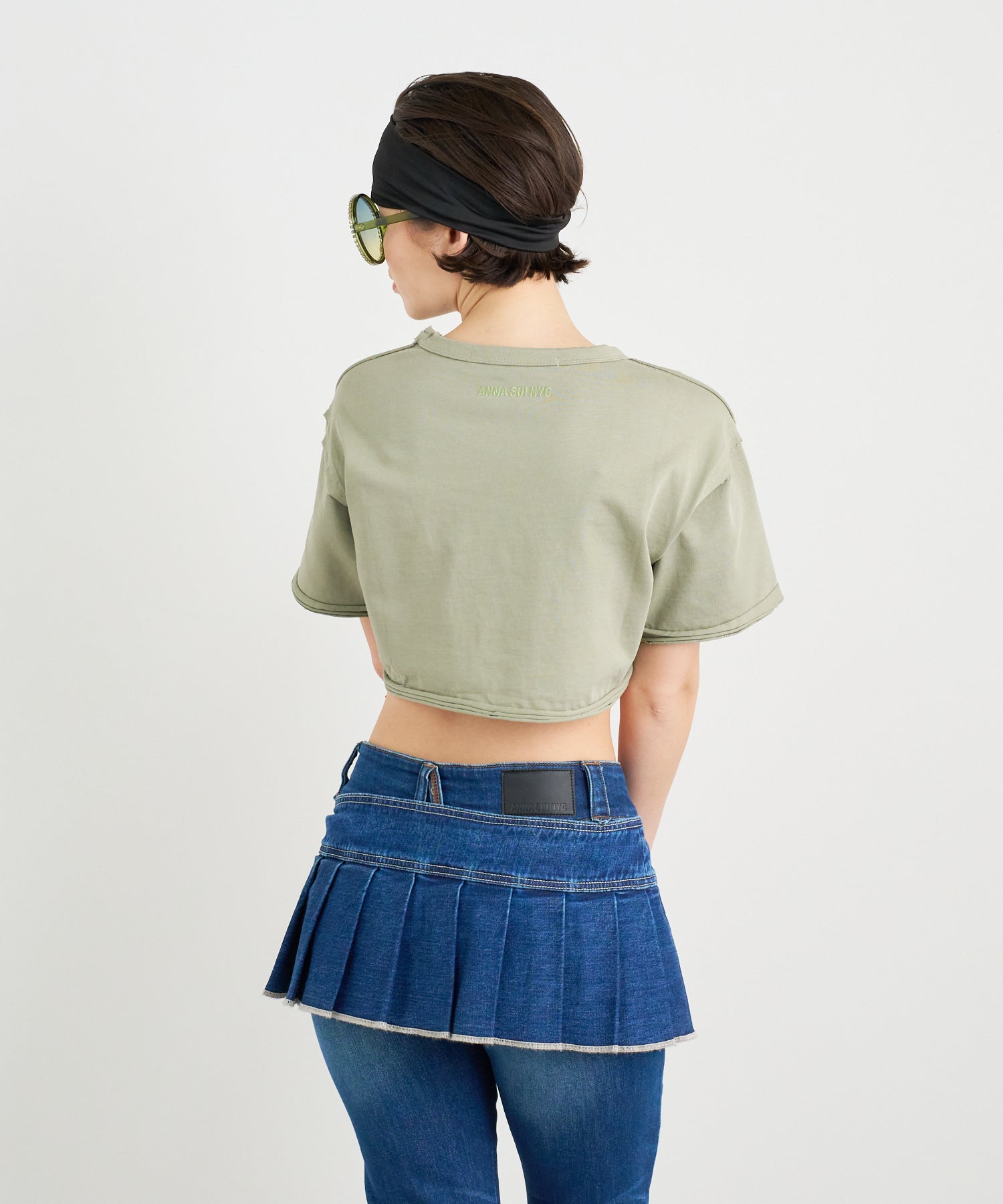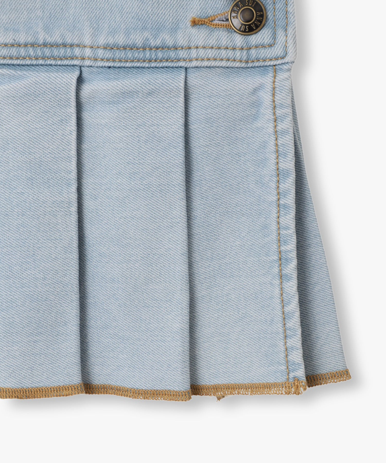 厚みがしっかりしたデニム素材のレイヤードスカート。裾のステッチの色味がデザインポイントになってかわいいアイテムです。ウエストの大きさを調整できるようにボタンが2列付いています。ローライズの位置で履き、ロングパンツなどお好みのボトムスに合わせてスタイリングを楽しめるとっておきのアイテムです!