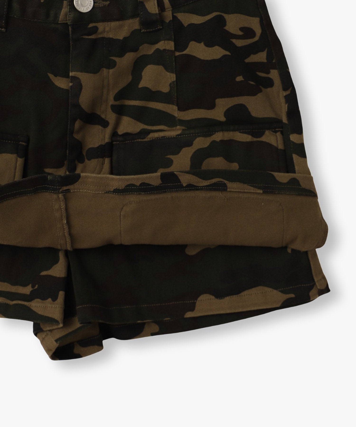 ミリタリー感かつ機能的な大きなポケットが配置された、ヴィンテージライクインナーショートパンツ。中には表地と同素材のインナーパンツが付いているため、安心して着用いただけます。セットアップで、"ヴィンテージライクミリタリージャケット"と一緒にスタイリングするのもオススメです。