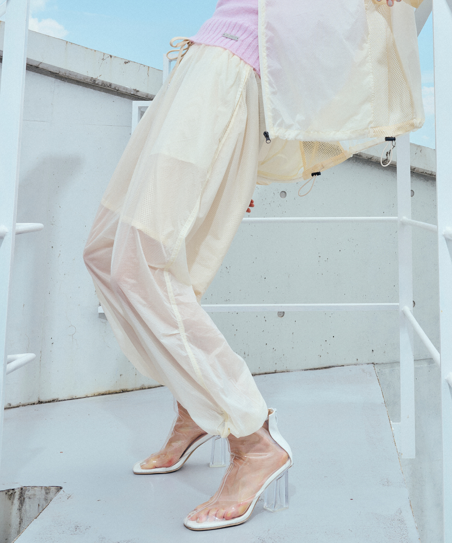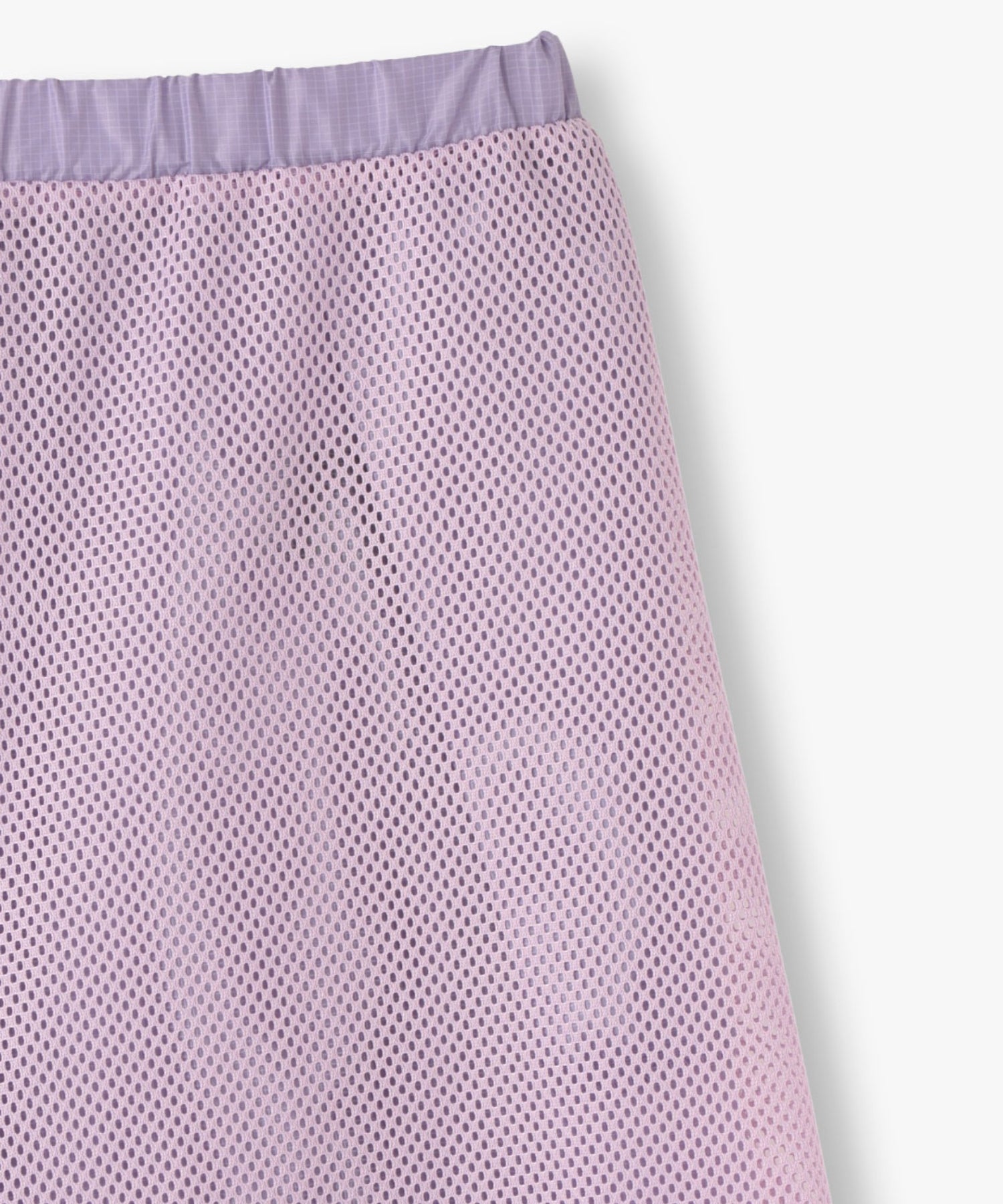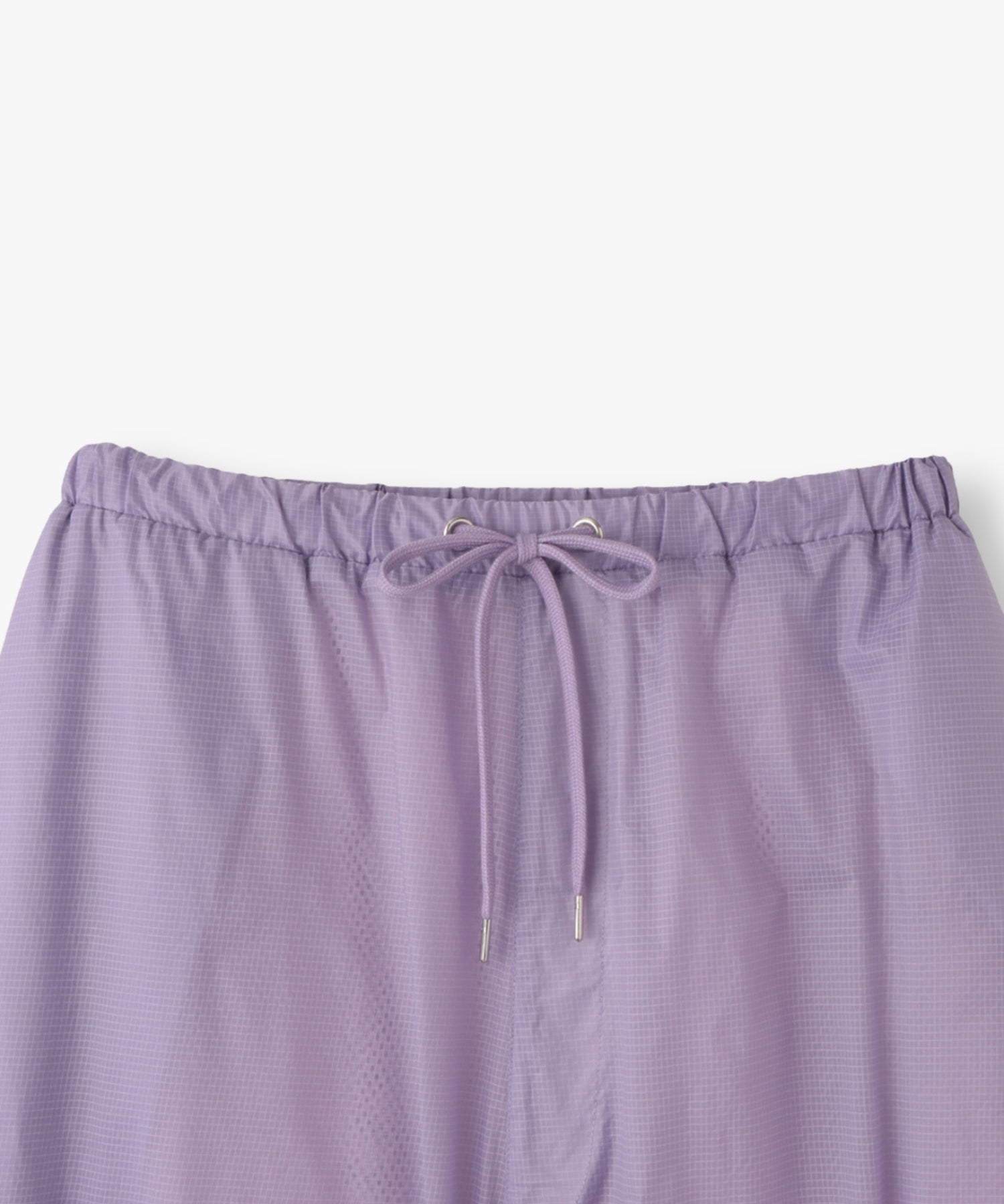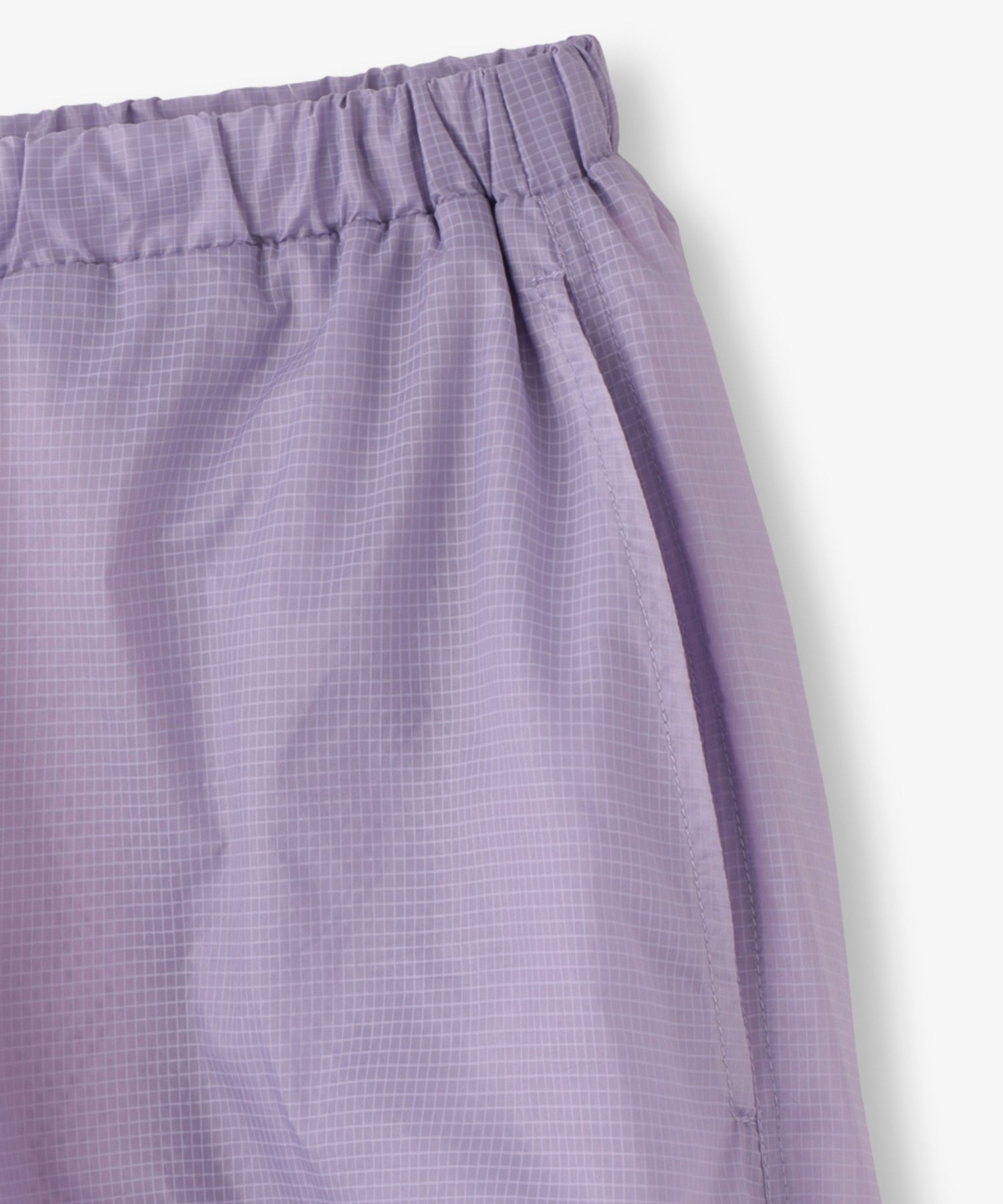 軽量で適度なハリ感と柔らかさを兼ね揃えたシアーリップストップ素材に、裏地は通気性の高いメッシュを採用。淡色は少し透けますが、ワイドなシルエットのおかげで中にぺチパンツなどを仕込む余裕も。アクティブな素材感ながら、シアーならではのエアリーな表情が、ヘルシーで女性らしいバランスを演出します。