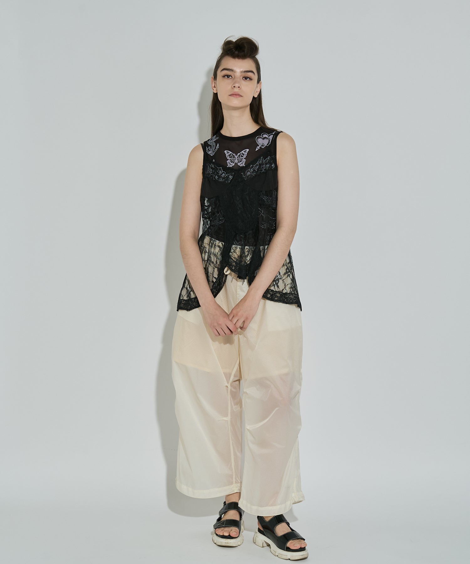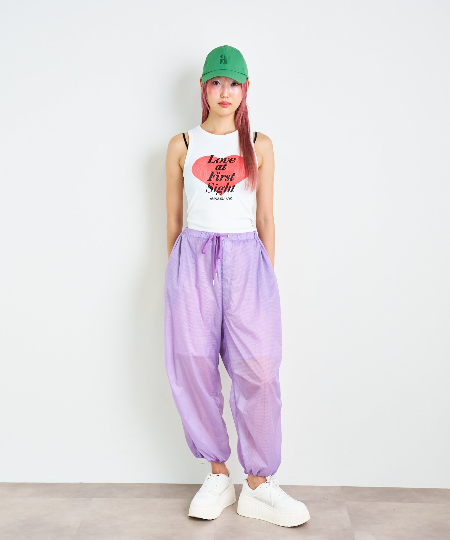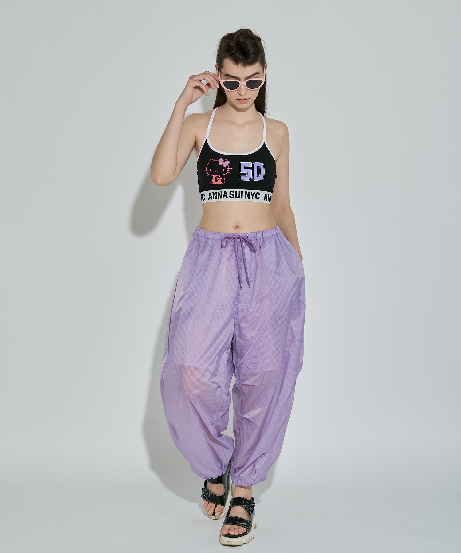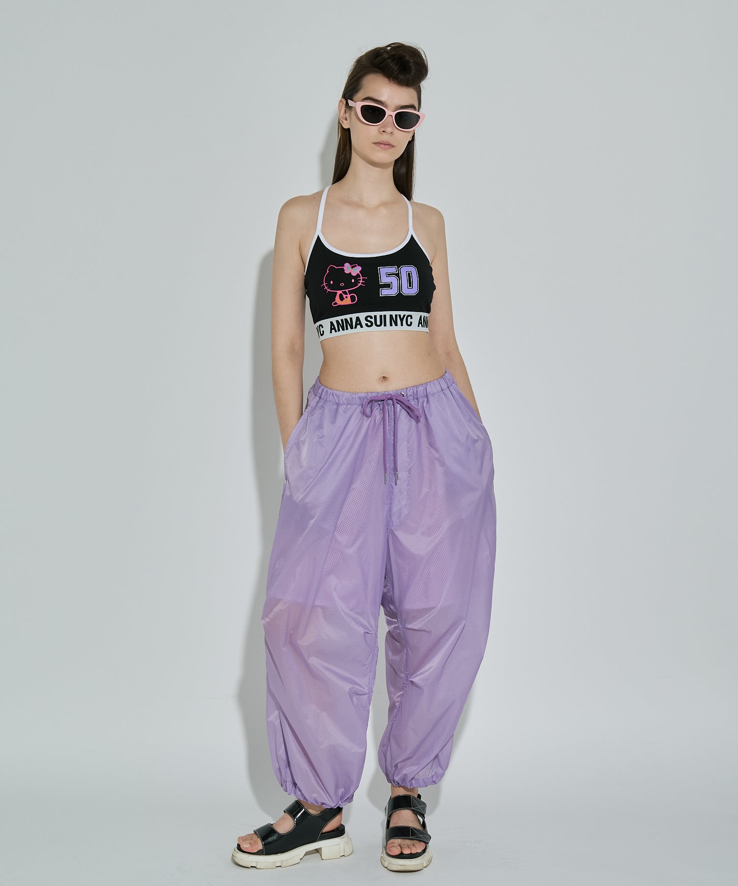 軽量で適度なハリ感と柔らかさを兼ね揃えたシアーリップストップ素材に、裏地は通気性の高いメッシュを採用。淡色は少し透けますが、ワイドなシルエットのおかげで中にぺチパンツなどを仕込む余裕も。アクティブな素材感ながら、シアーならではのエアリーな表情が、ヘルシーで女性らしいバランスを演出します。