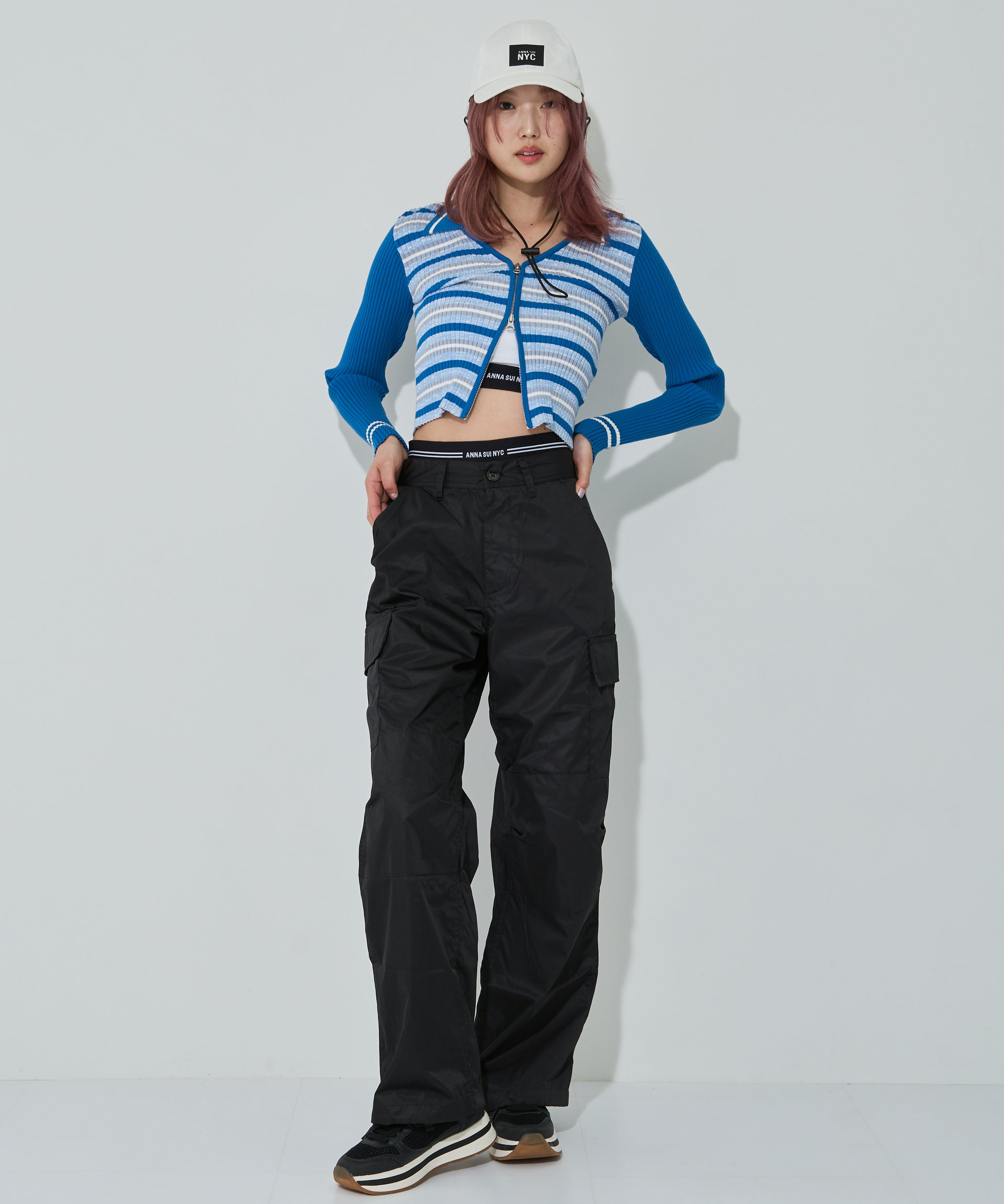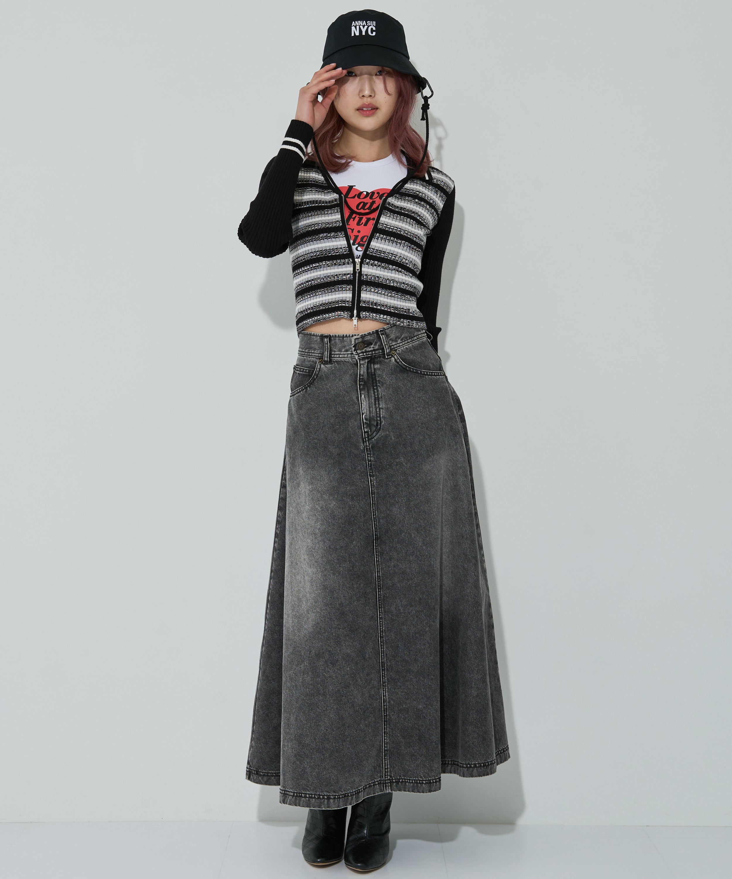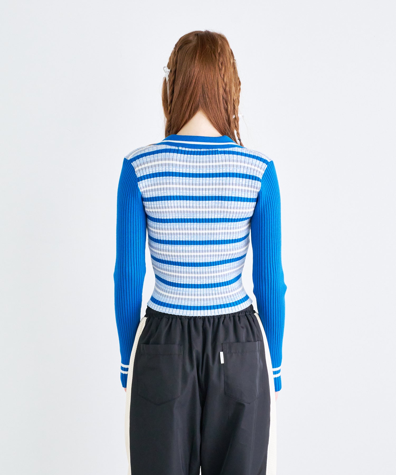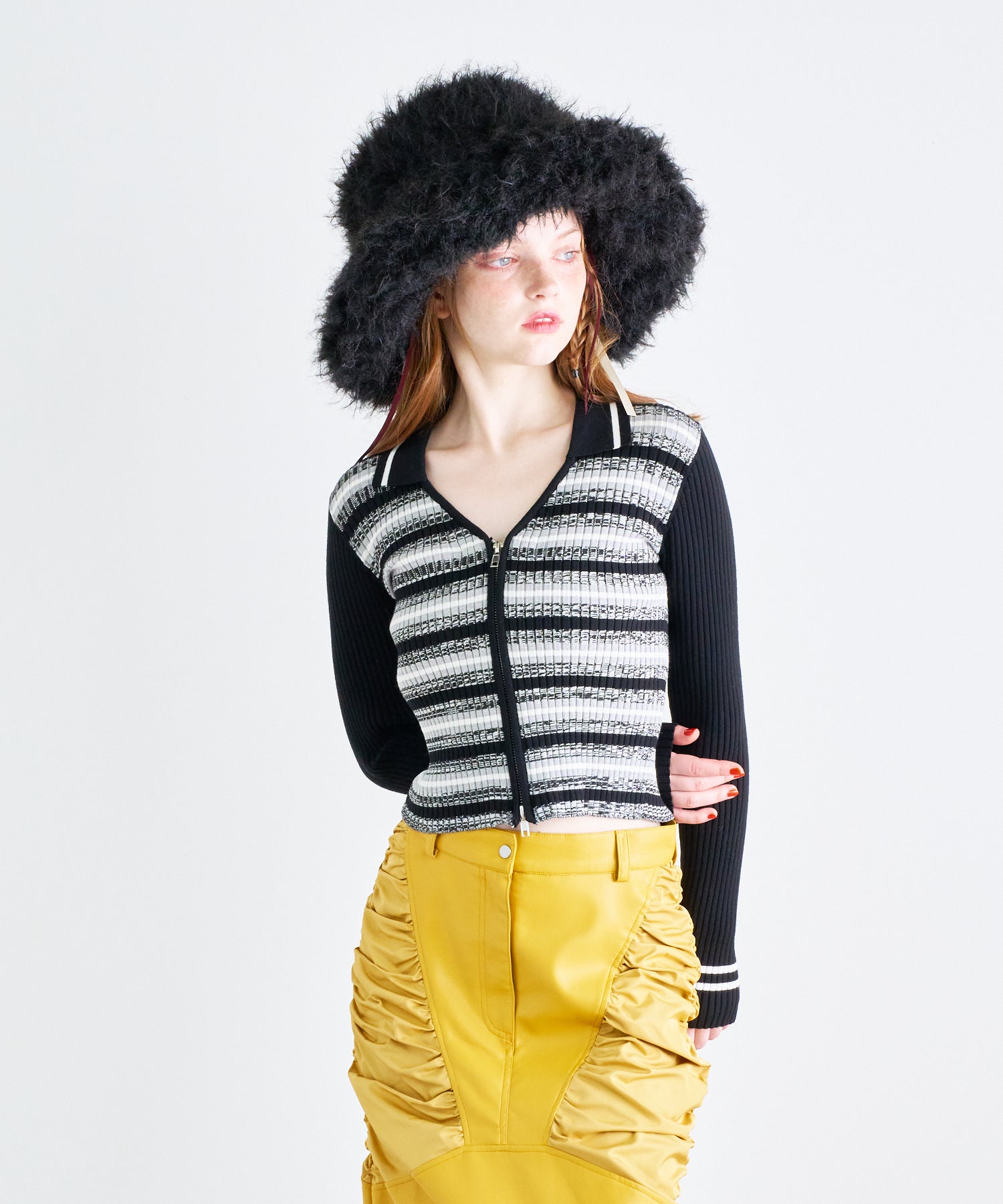 ANNA SUI NYCらしいPOPな配色ボーダーのフロントジップニットカーディガン。Y2Kライクなタイトなサイジングで全体のバランスが取りやすく、ほどよい厚みがこれからの季節に大活躍間違いなしの1枚です◎ファスナーはダブルジップで、スタイリングに合わせて開けたり閉めたり、自由自在に開きのバランスを調節していただけます。