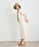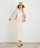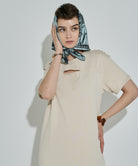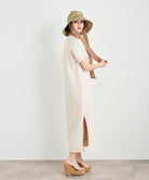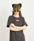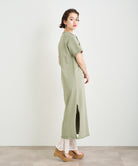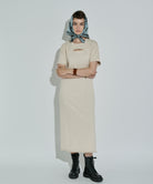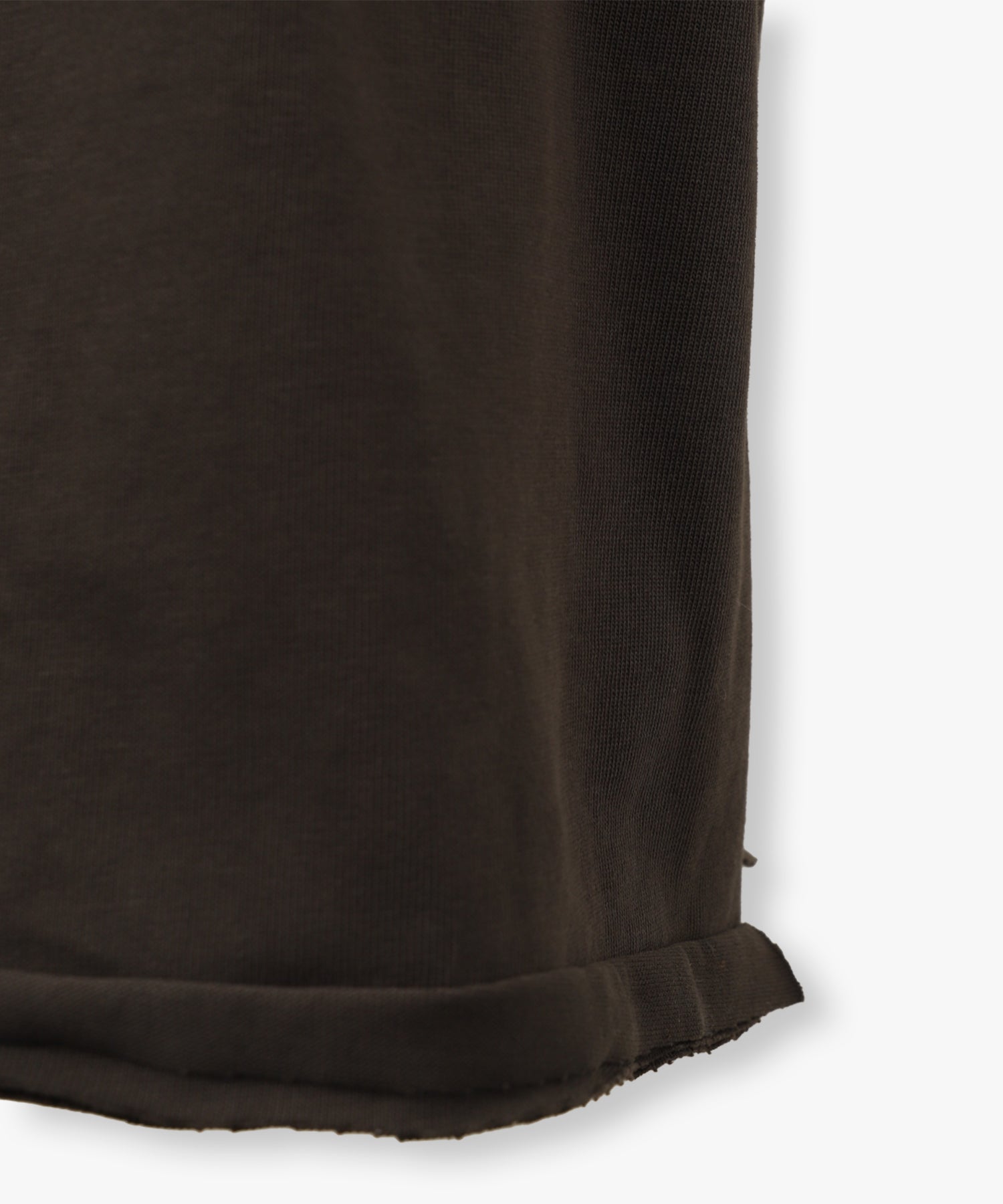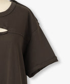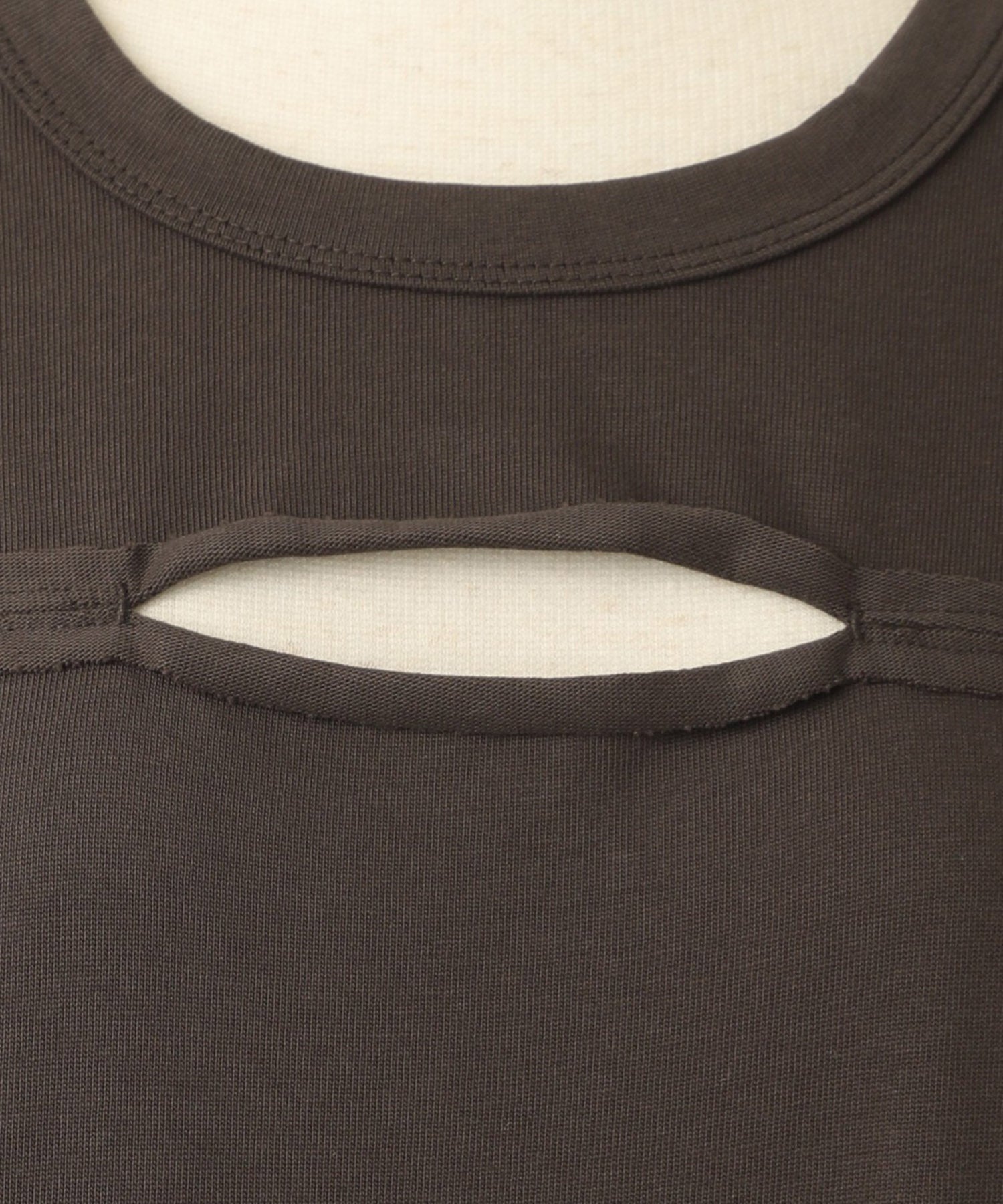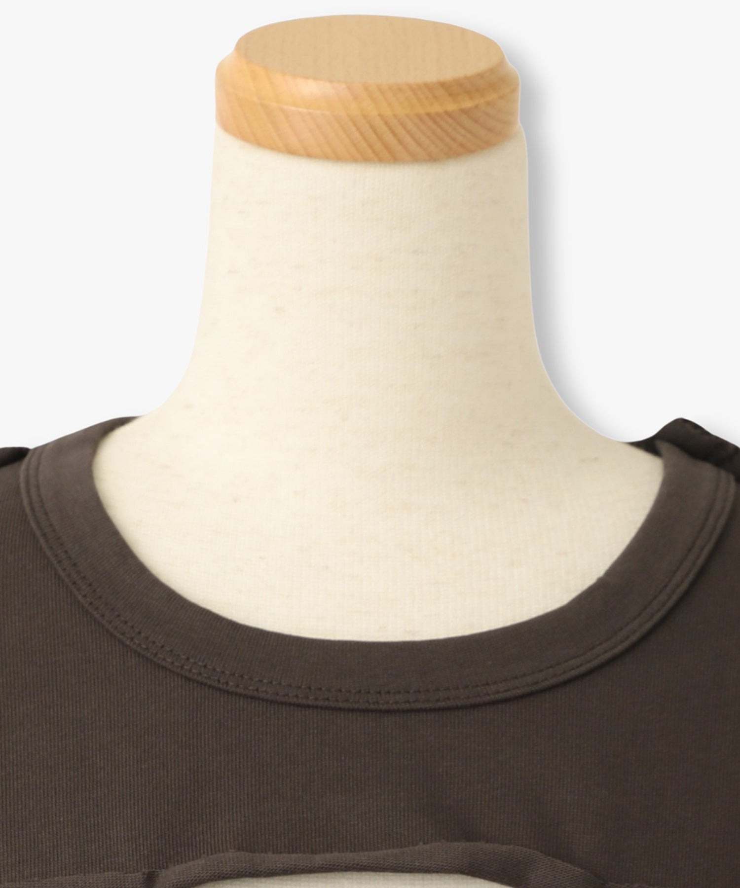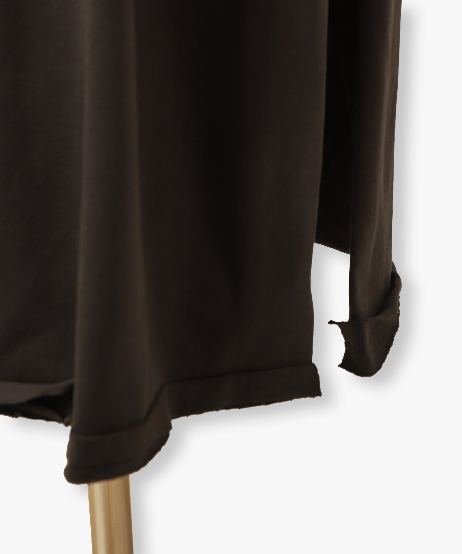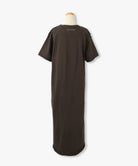 加工感が今っぽいTシャツワンピ。胸元のヘルシーな肌見せやドロップショルダーシルエットが程よい抜け感を演出してくれます◎アイテム自体に表情感がある為、1枚で着ても様になるアイテムです。