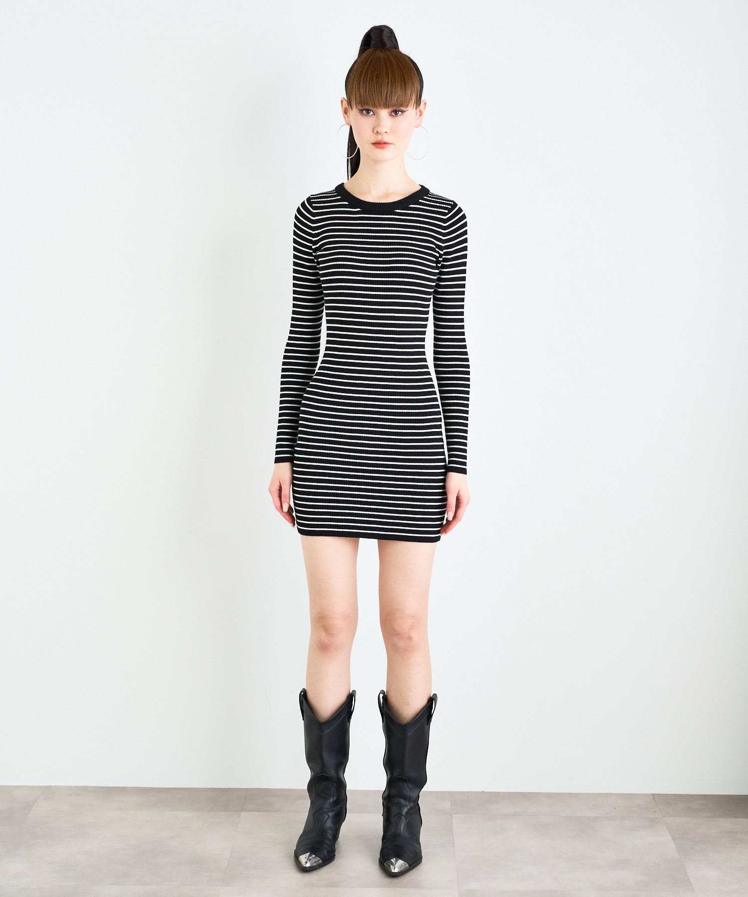 ボーダーニットショートワンピース